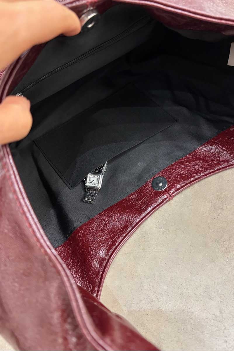 Cartera 100%PU texturizado, con boton interno y correa continua sin terminaciones.