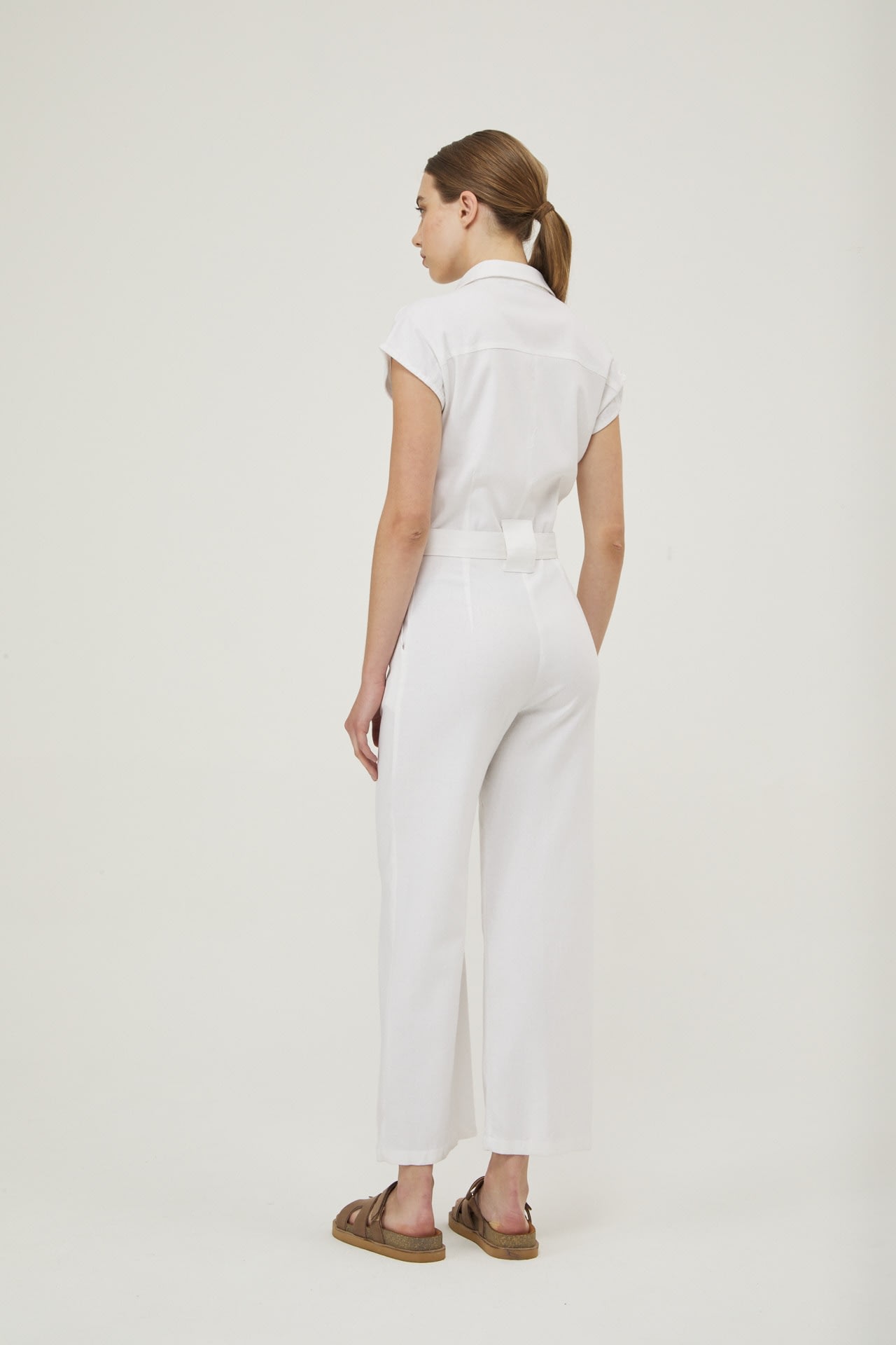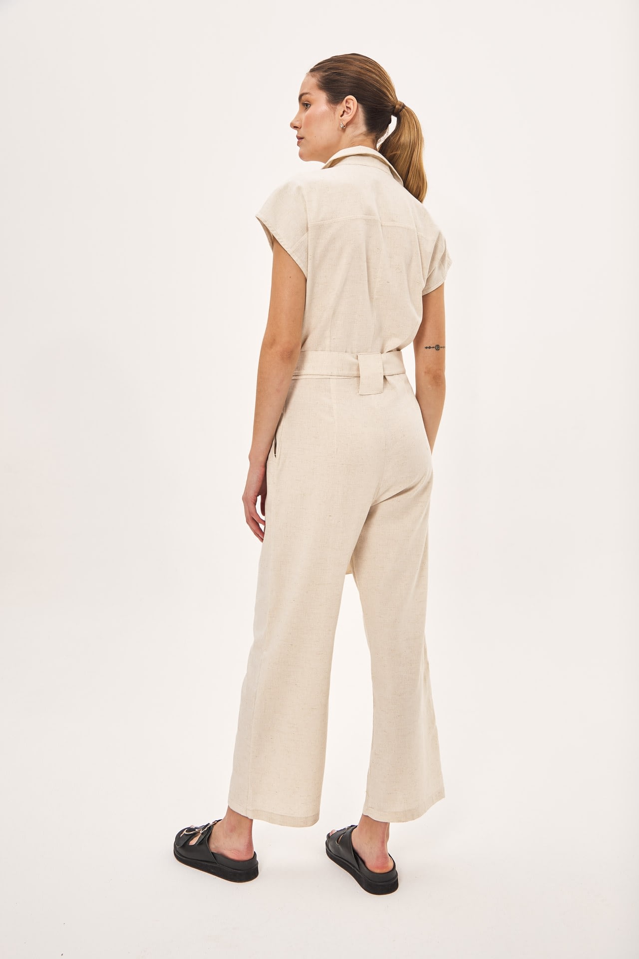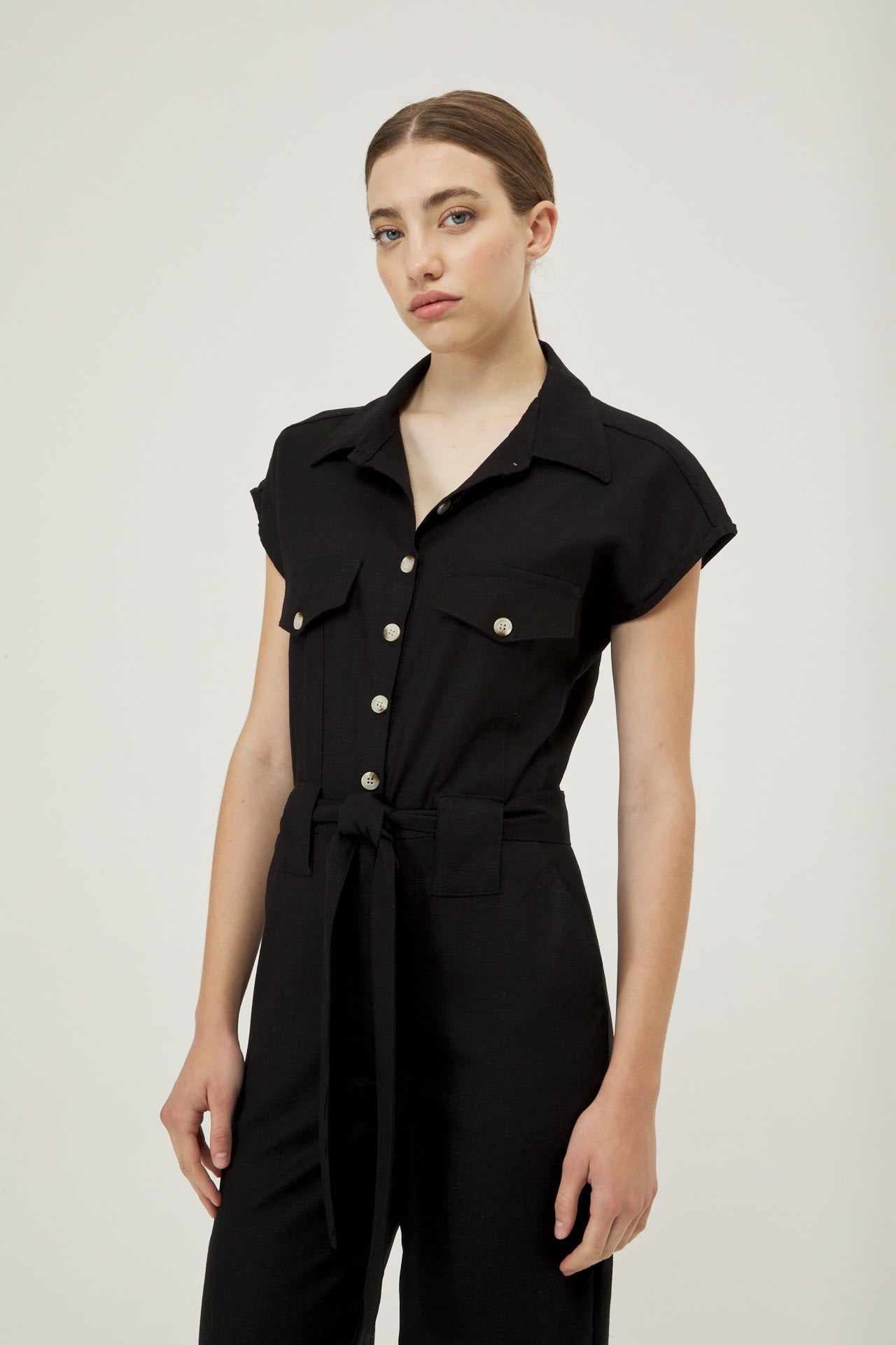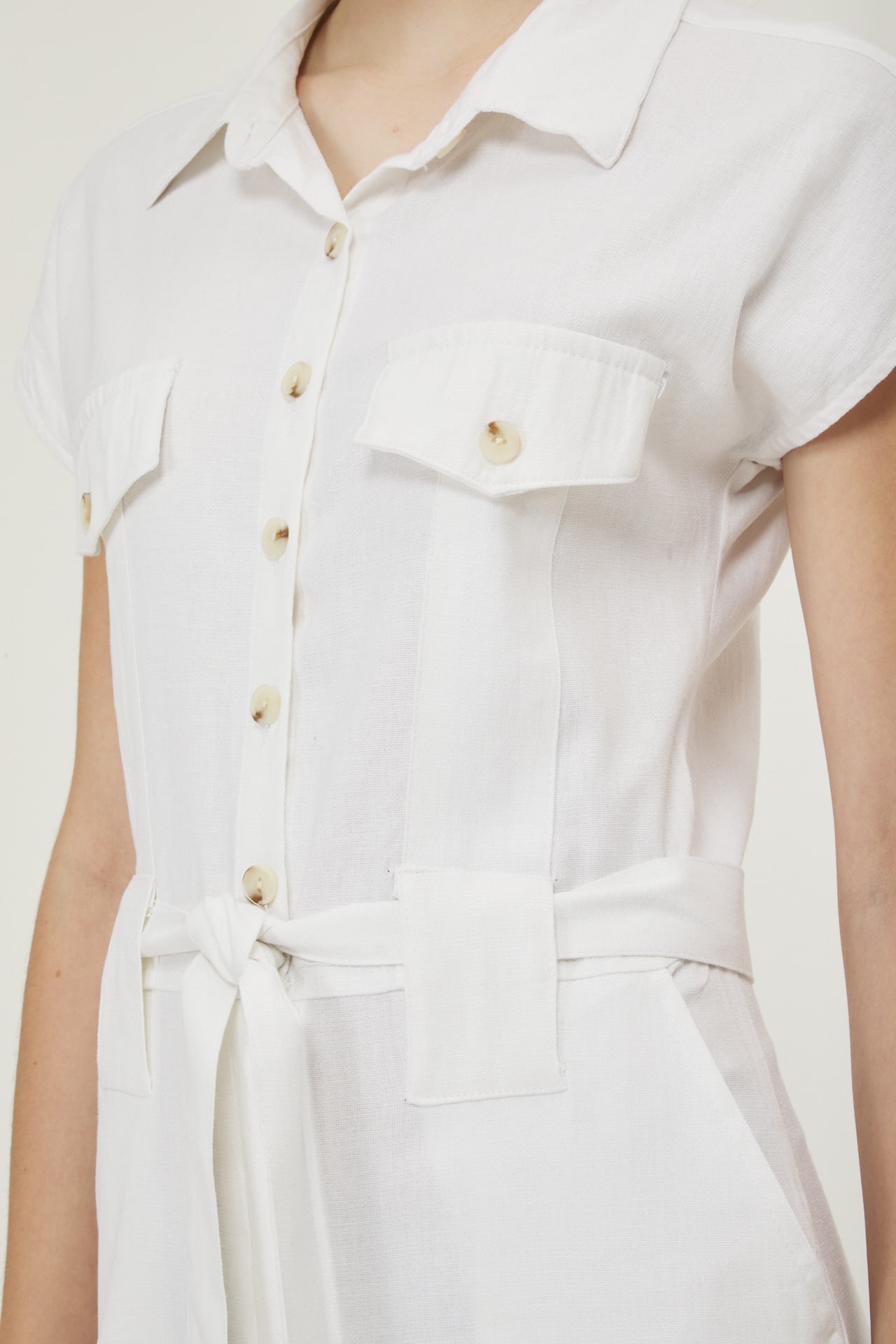 Mono largo de lino sastrero con botones, cierre y lazo.