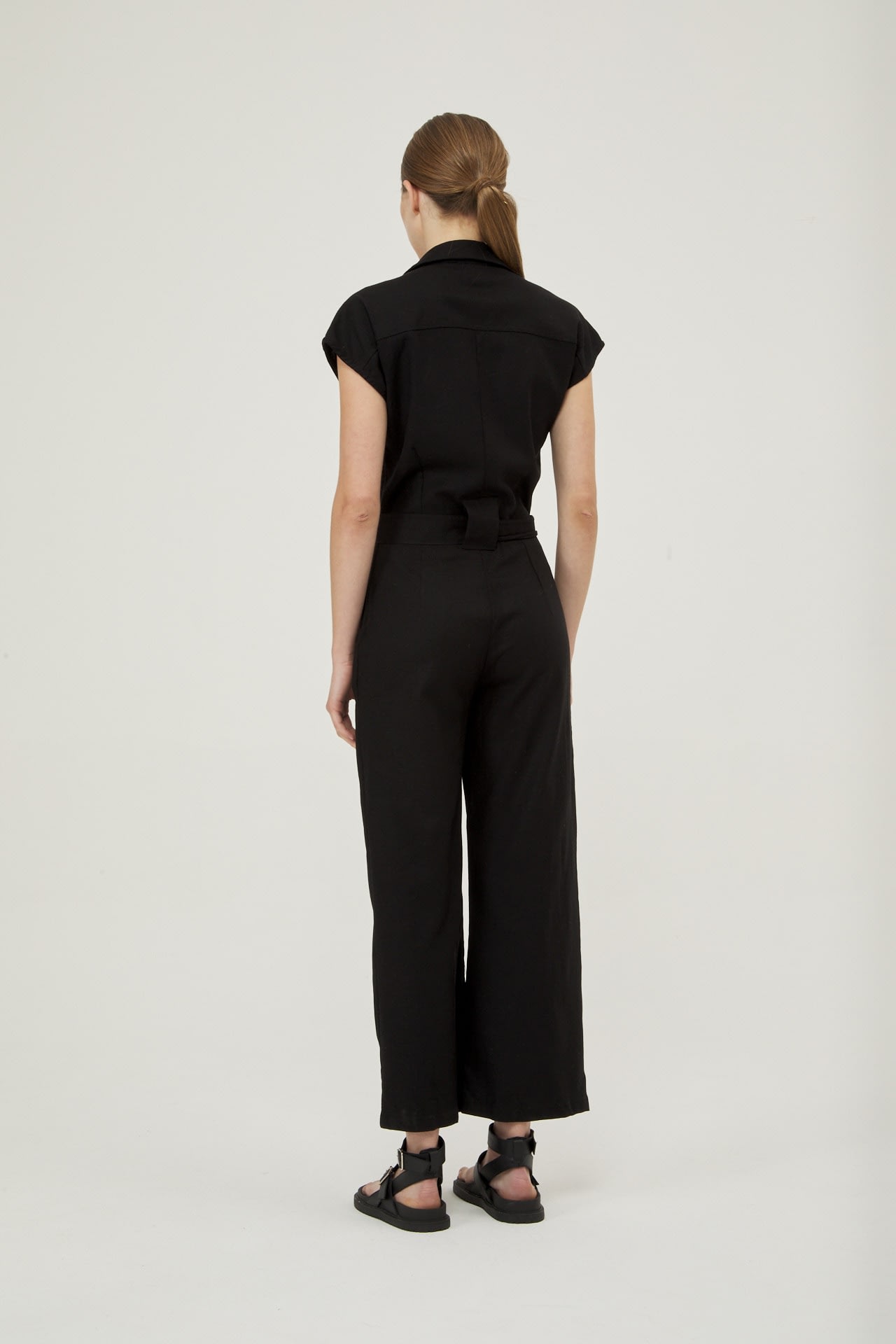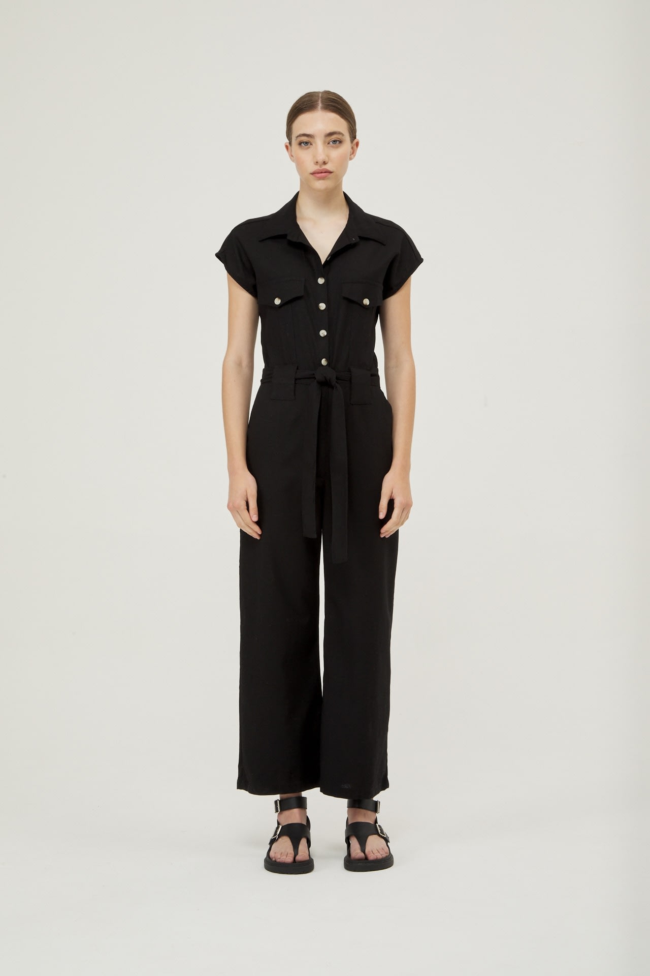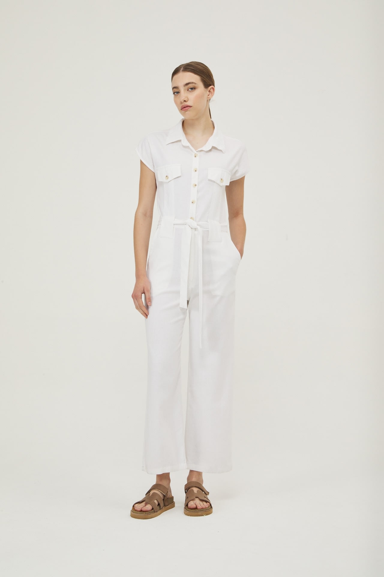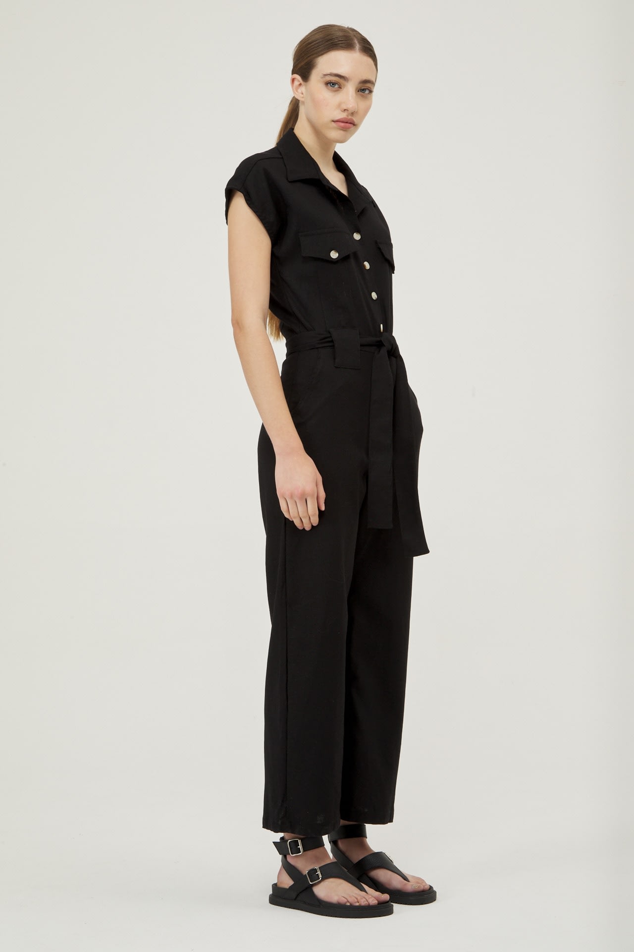 Mono largo de lino sastrero con botones, cierre y lazo.