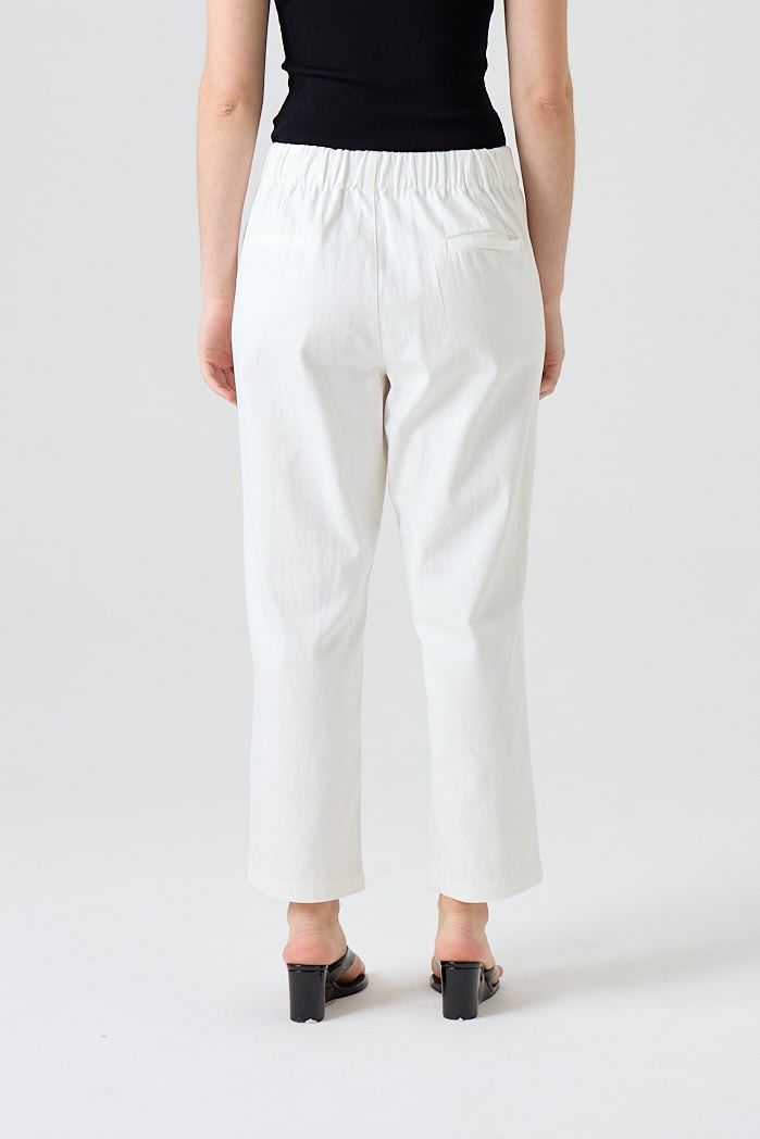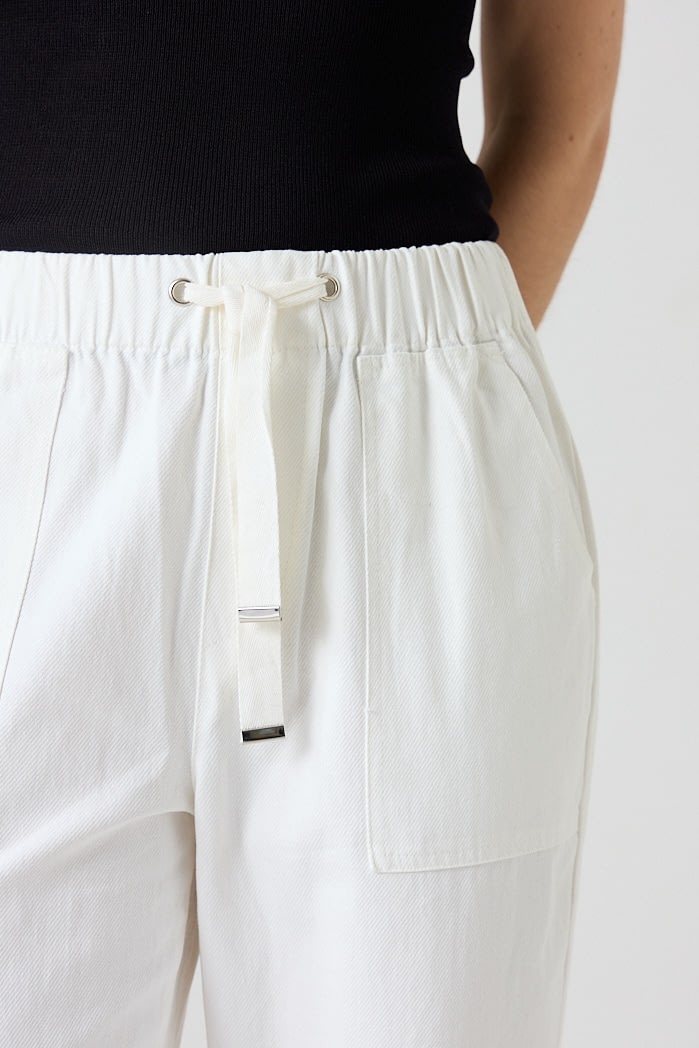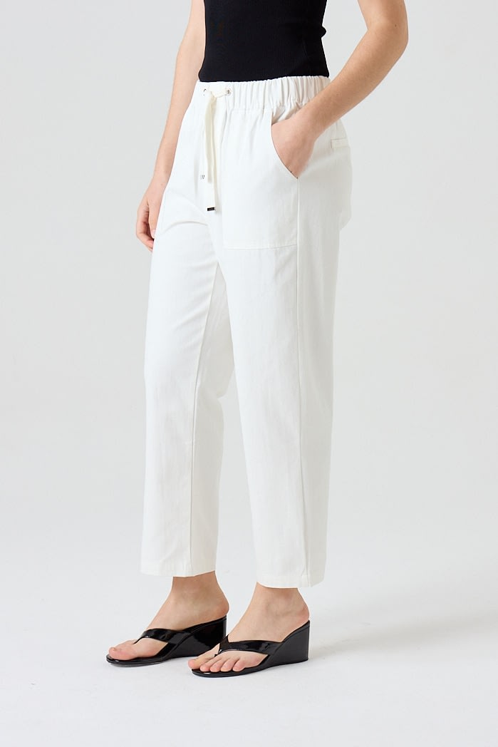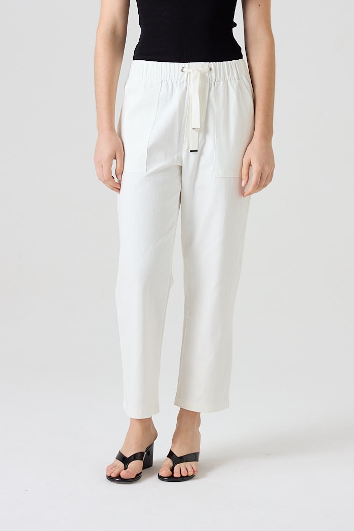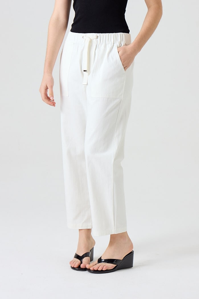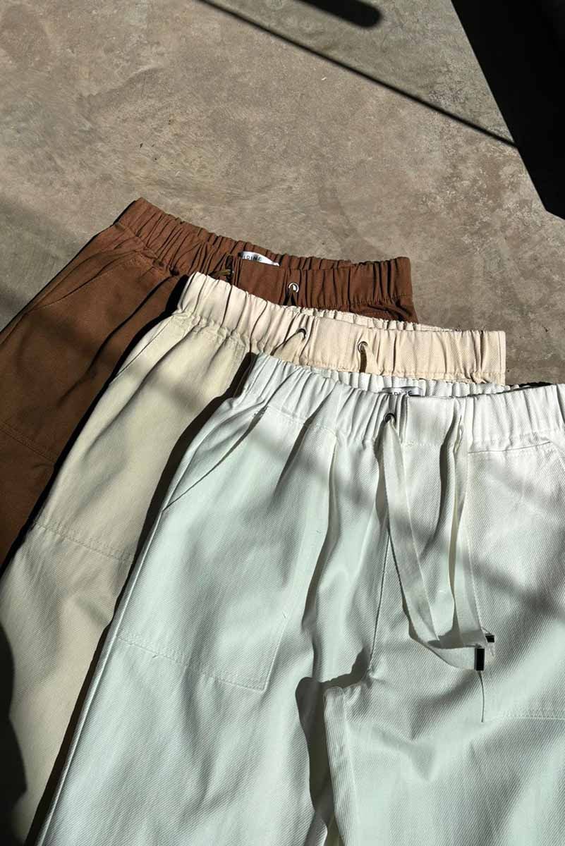 Pantalón recto de algodón con cintura elástica y cordón ajustable. Cuenta con bolsillos frontales amplios y falsos bolsillos en la parte trasera. 100% Algodón
