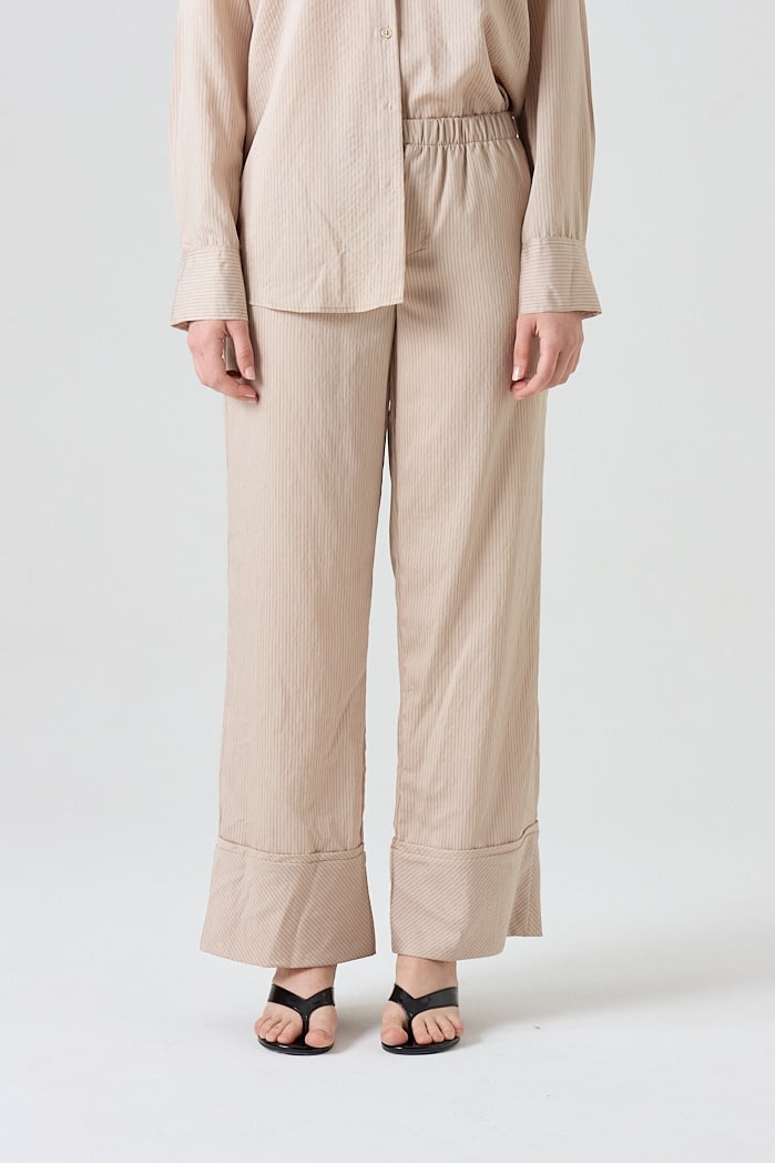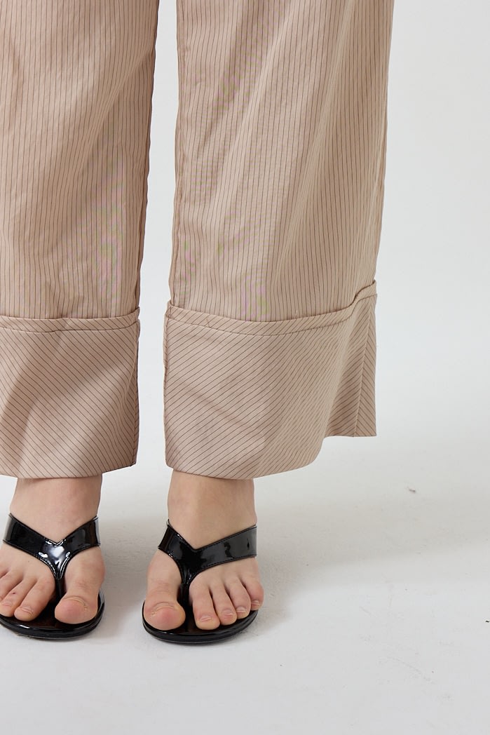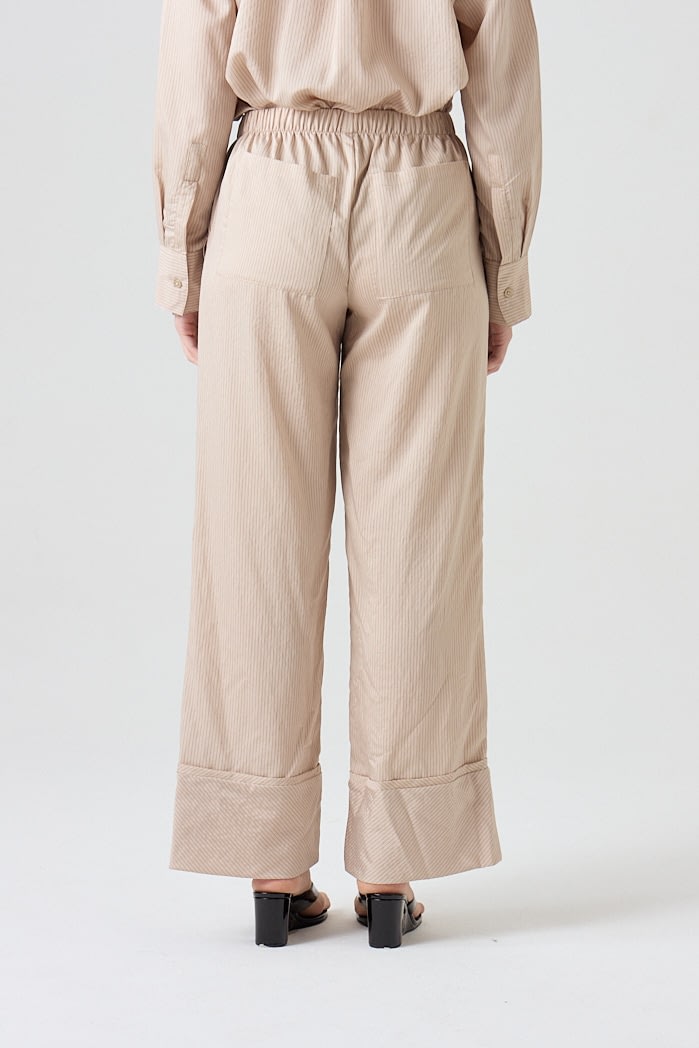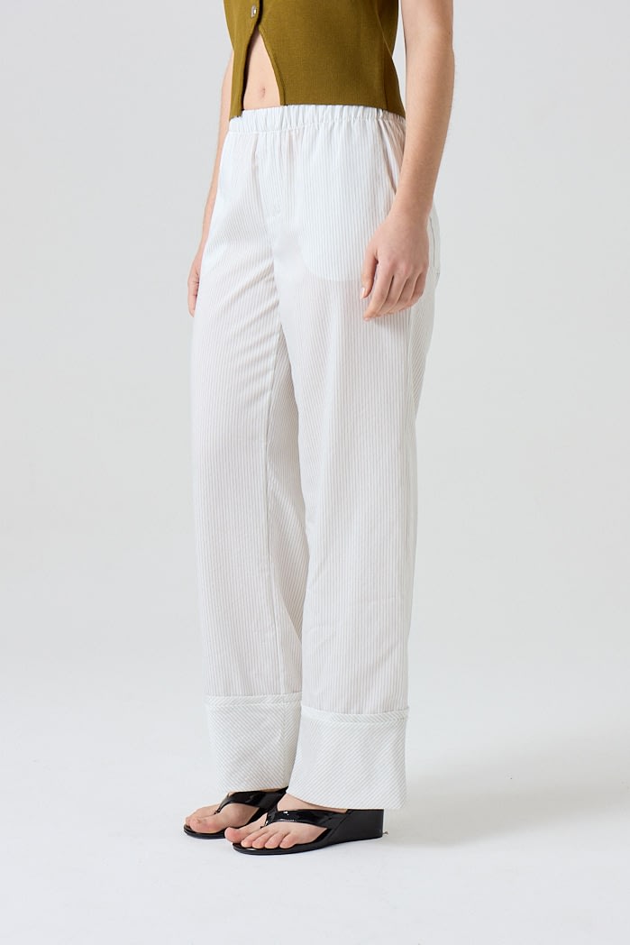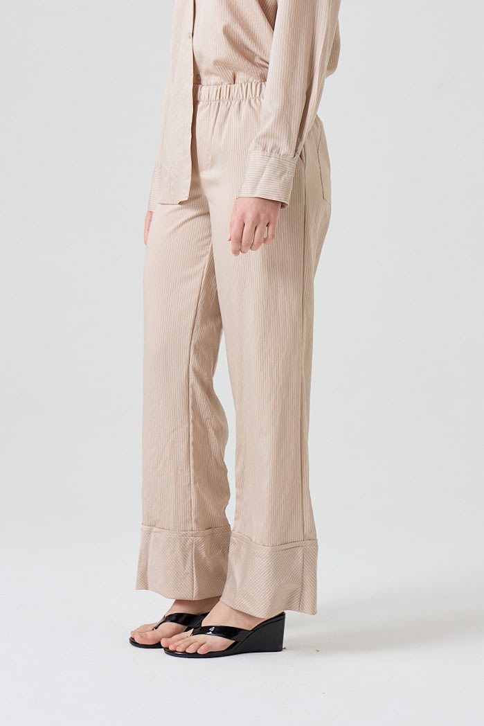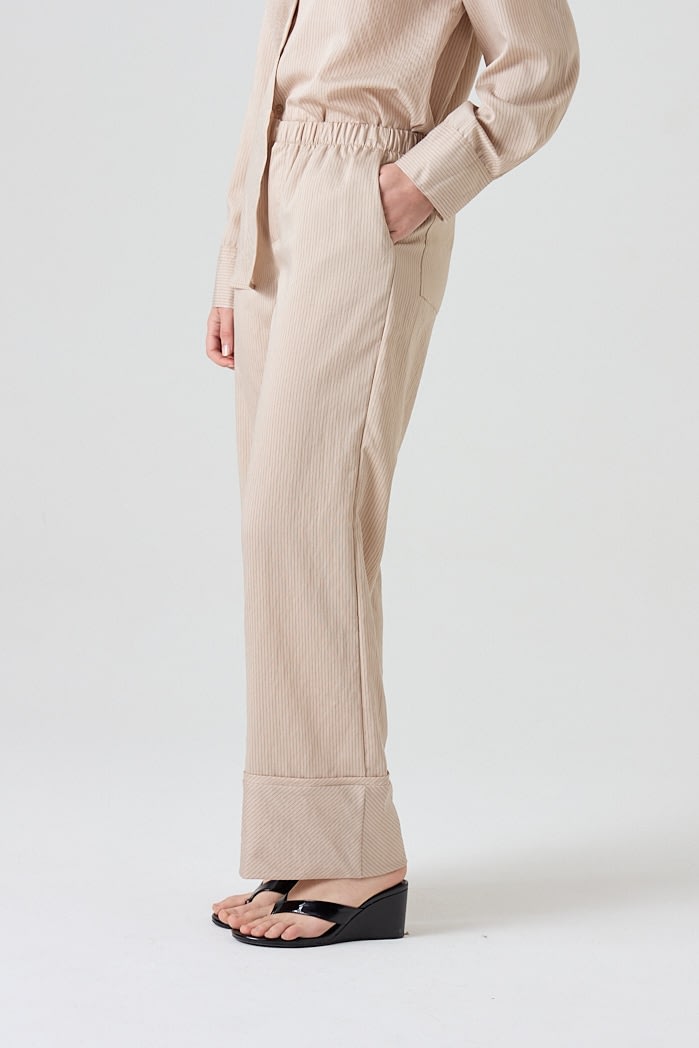 Pantalon rayado con elastico en cintura con botamanga 74% rayon 22%nylon 14%poly