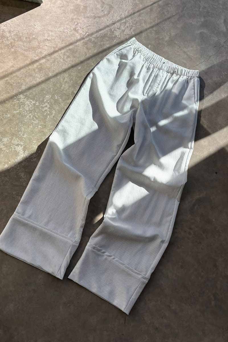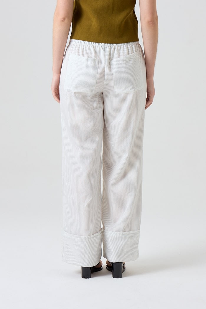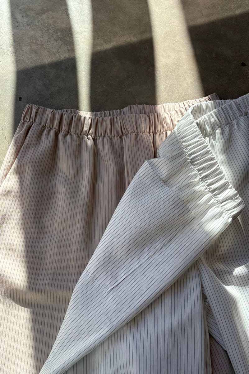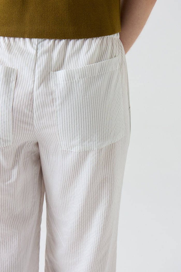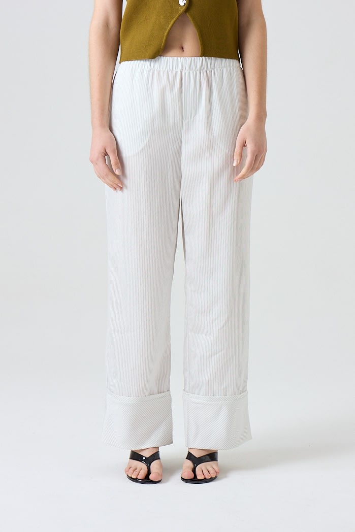 Pantalon rayado con elastico en cintura con botamanga 74% rayon 22%nylon 14%poly