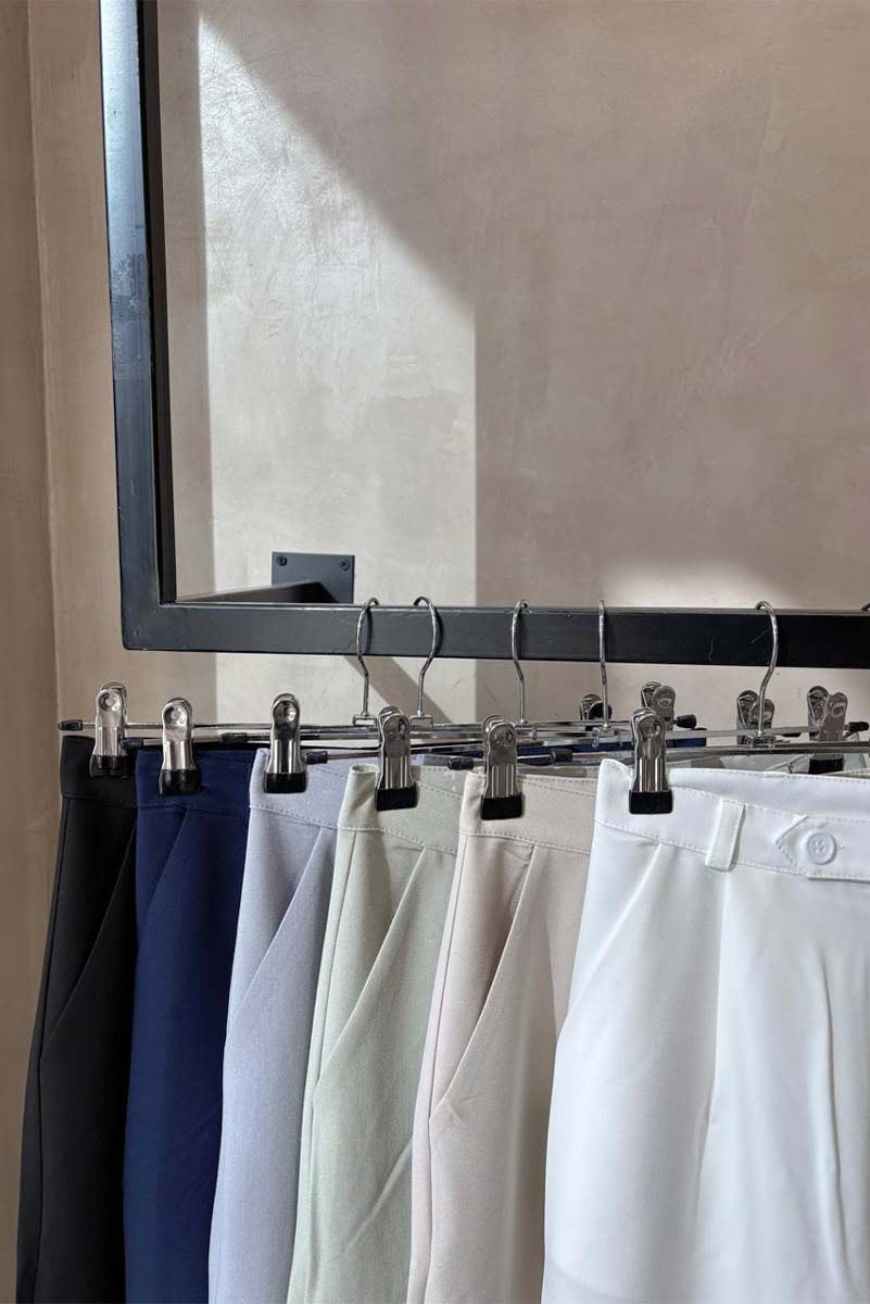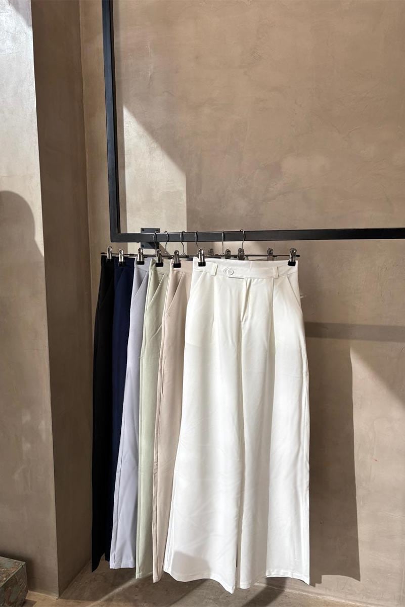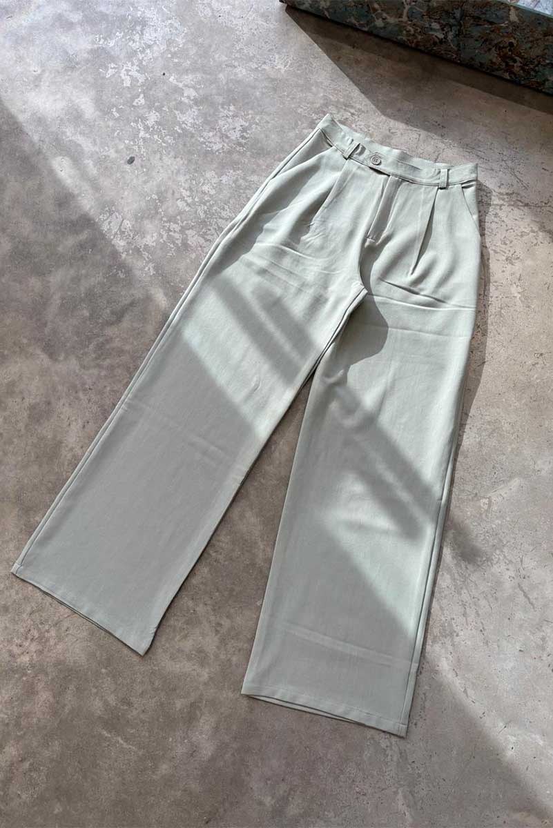 Pantalón sastrero pesado de corte recto tiro alto y con bolsillos laterales. Contiene Viscosa.