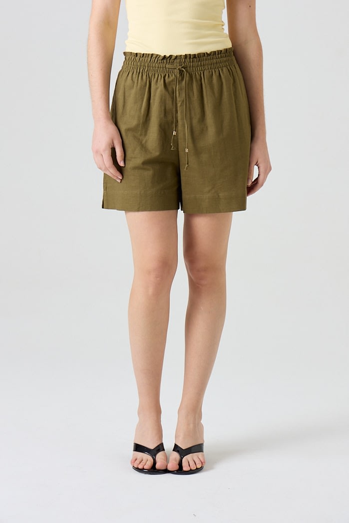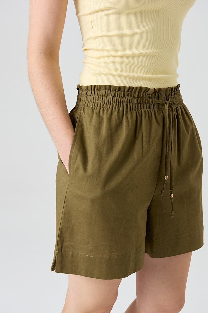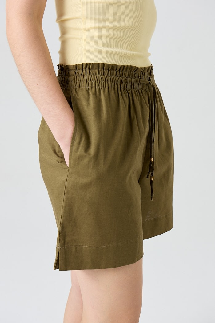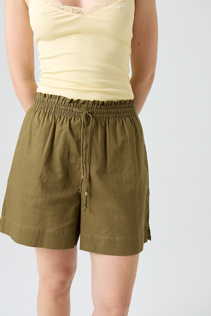 Short de lino con cintura elastizada y lazo regulable. 70% Viscosa 30% Lino