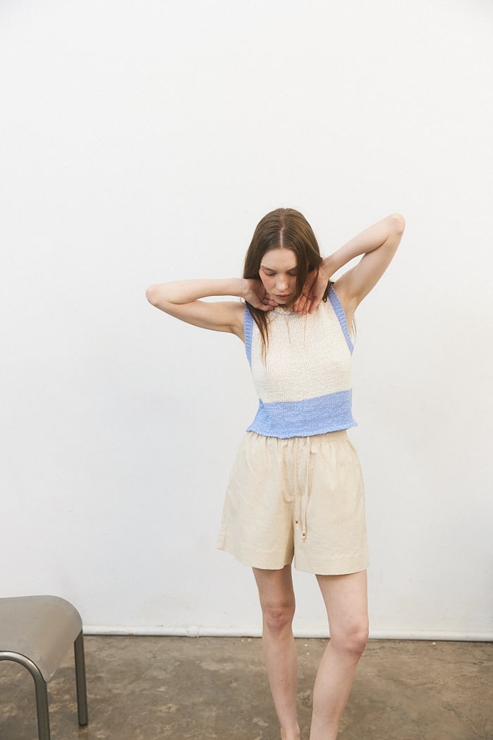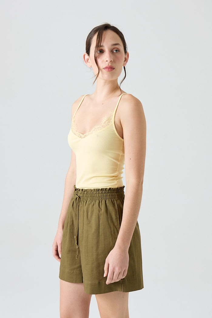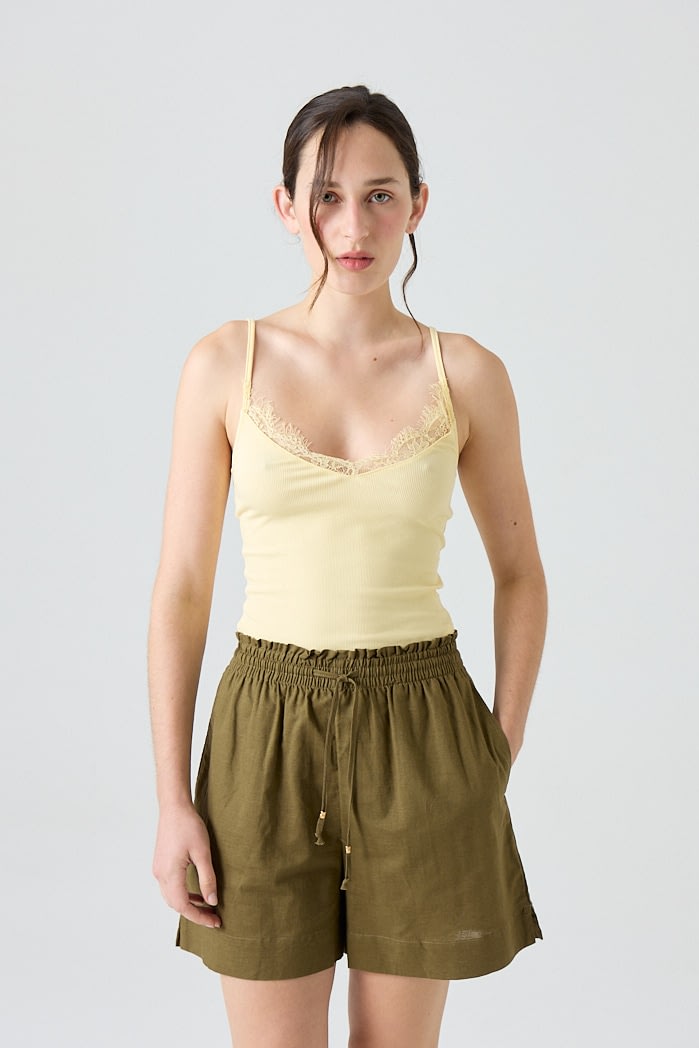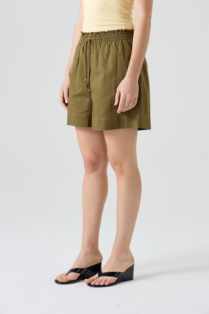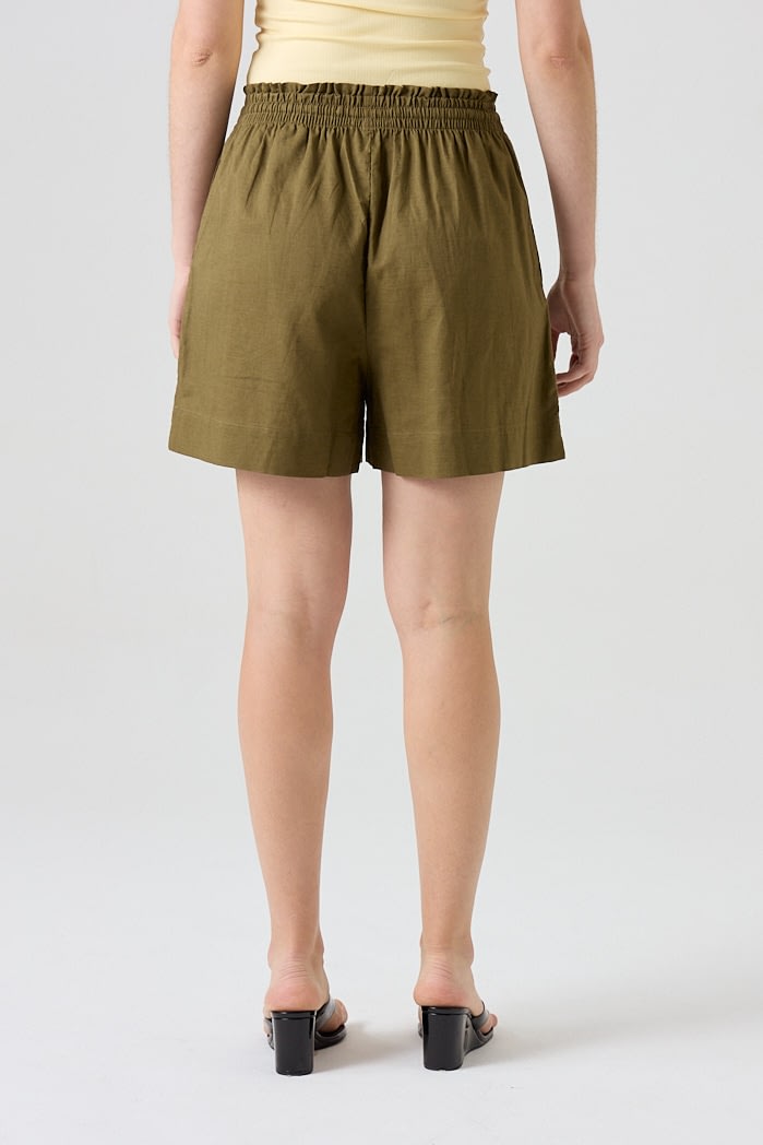 Short de lino con cintura elastizada y lazo regulable. 70% Viscosa 30% Lino