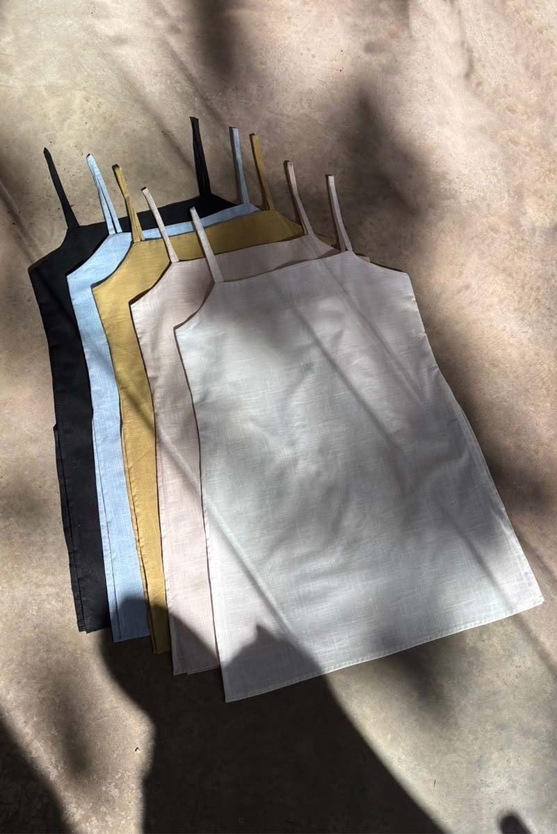 Vestido corto de 100% cotton con breteles finos y silueta recta.