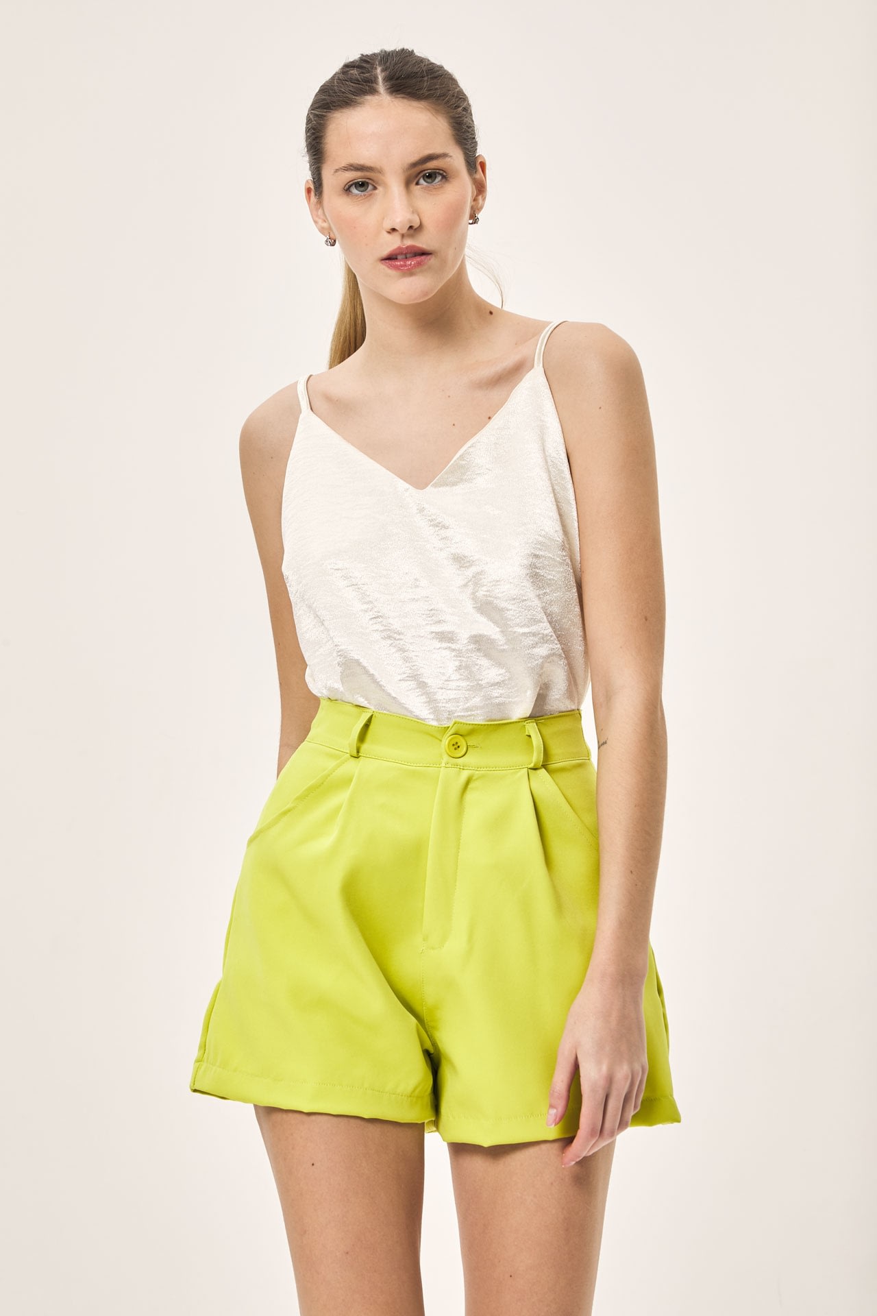 Short de crepe sastrero tiro alto, acampanado con pinzas