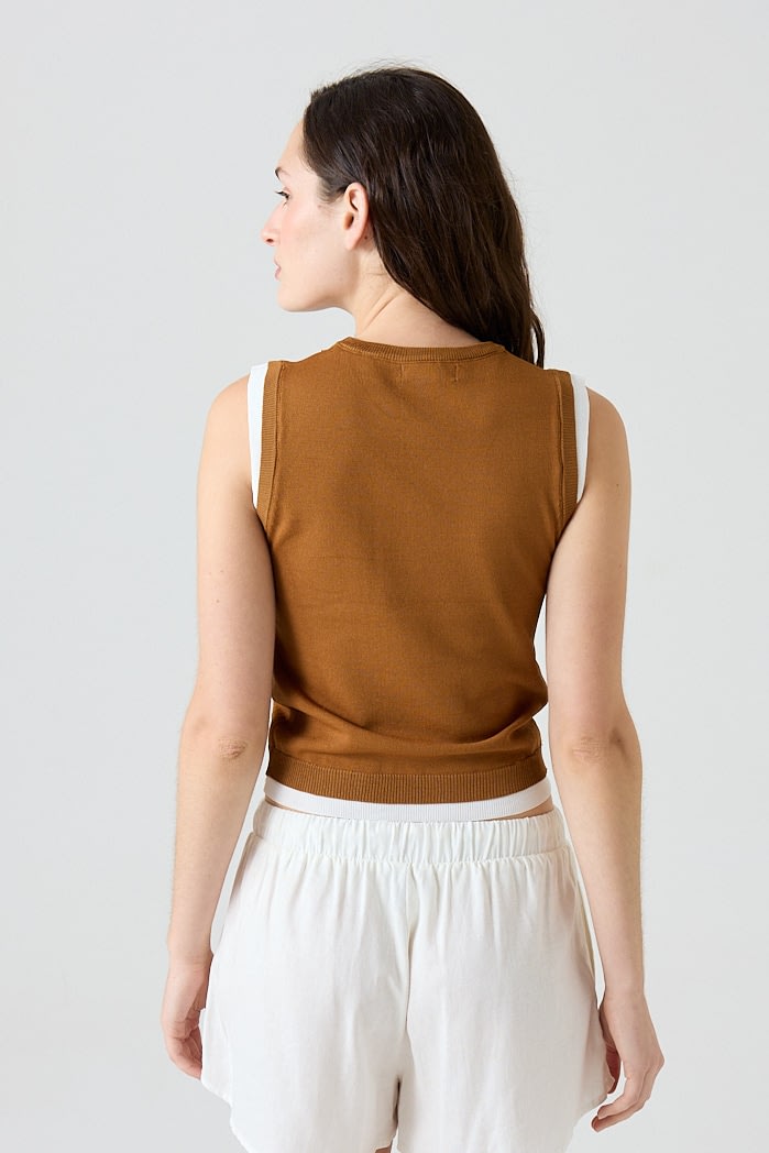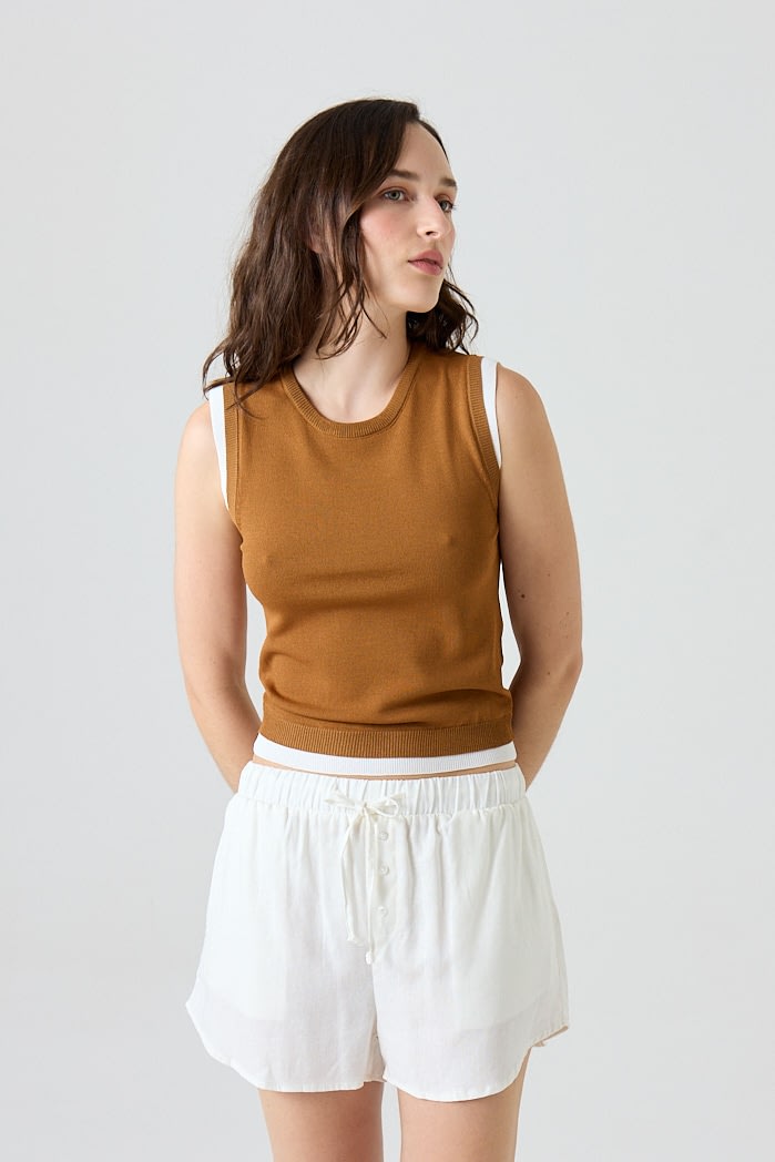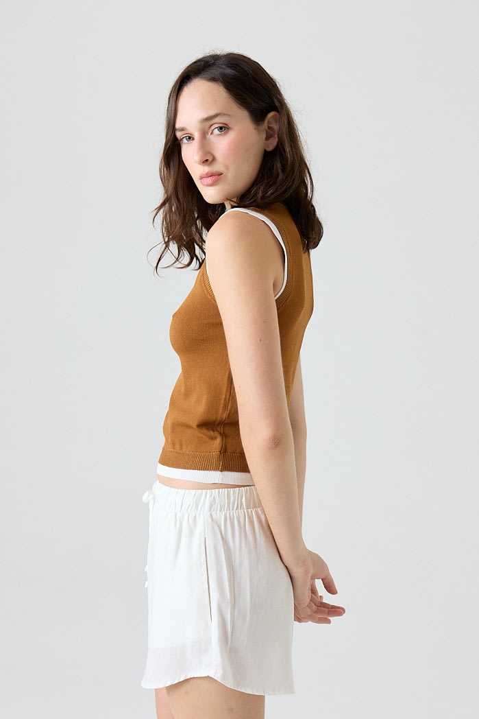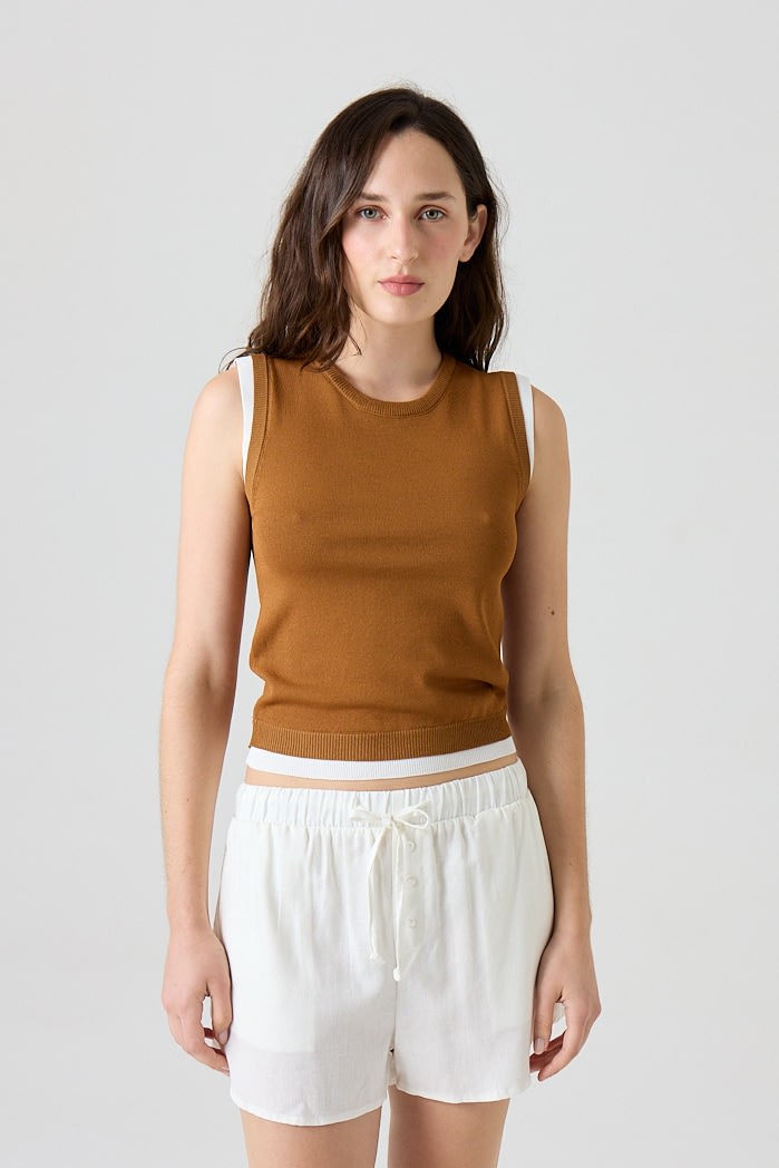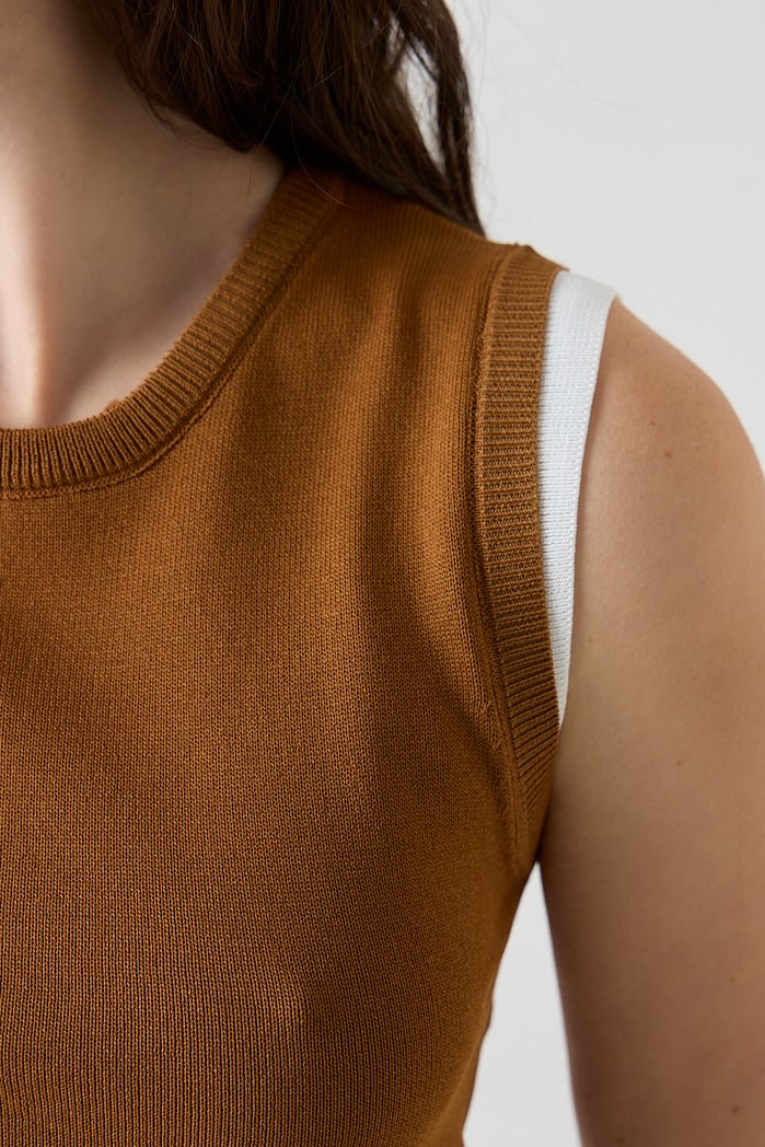 Musculosa slim fit de algodón combinada, con detalles acanalados en cuello, mangas y sisa. Composición: 65% Algodón 35% Nylon