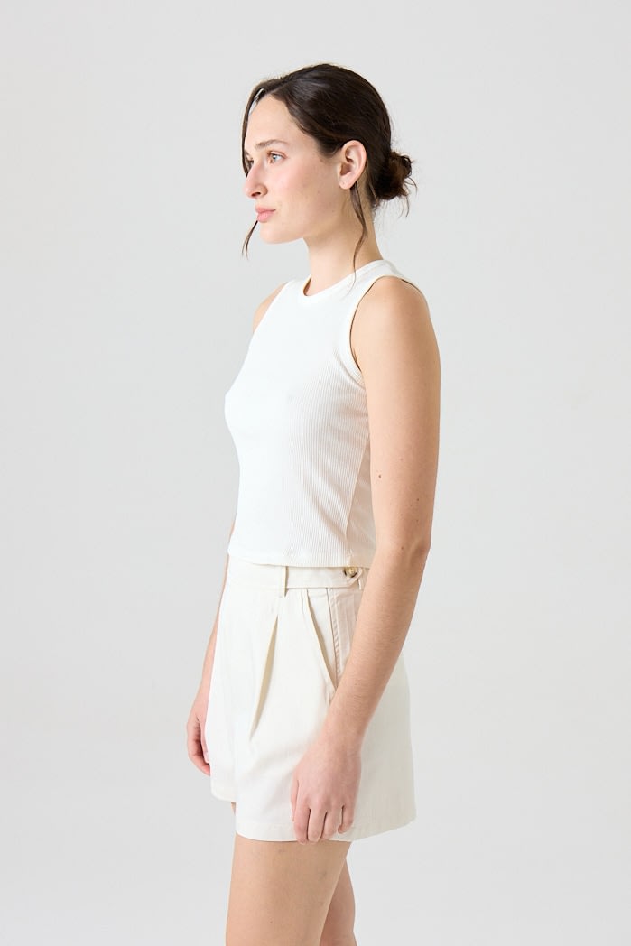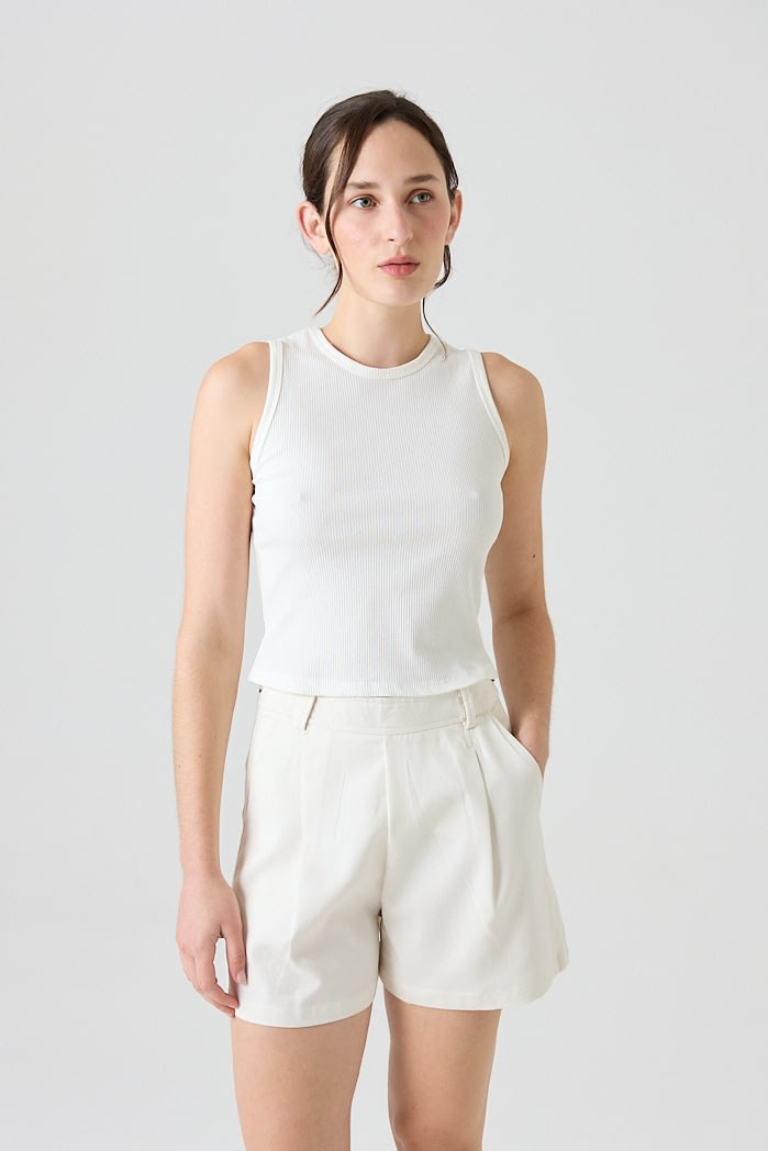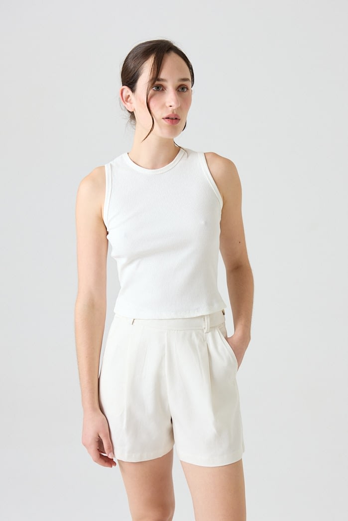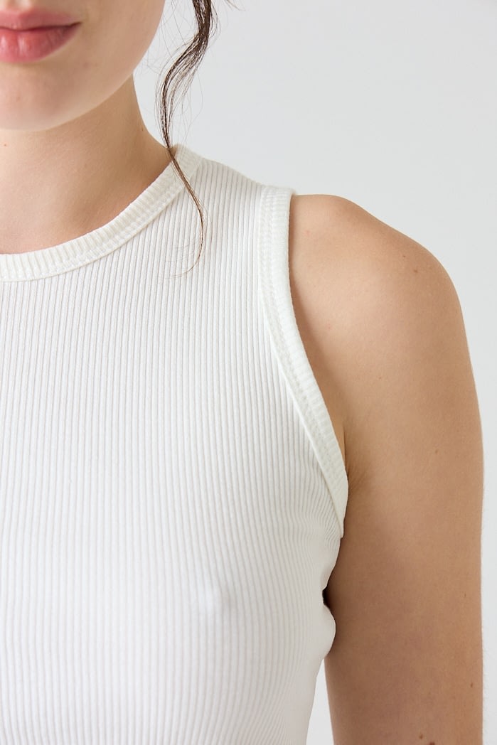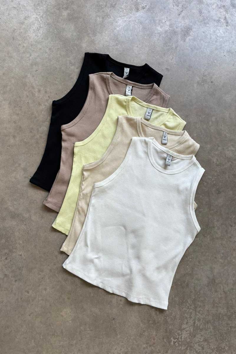 Musculosa básica de corte recto y ajuste ceñido, confeccionada 100% algodon. Presenta cuello redondo y sisas amplias, con terminaciones reforzadas para mayor durabilidad.