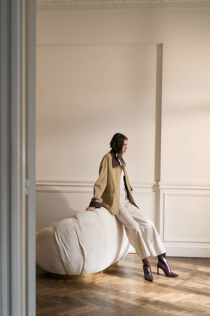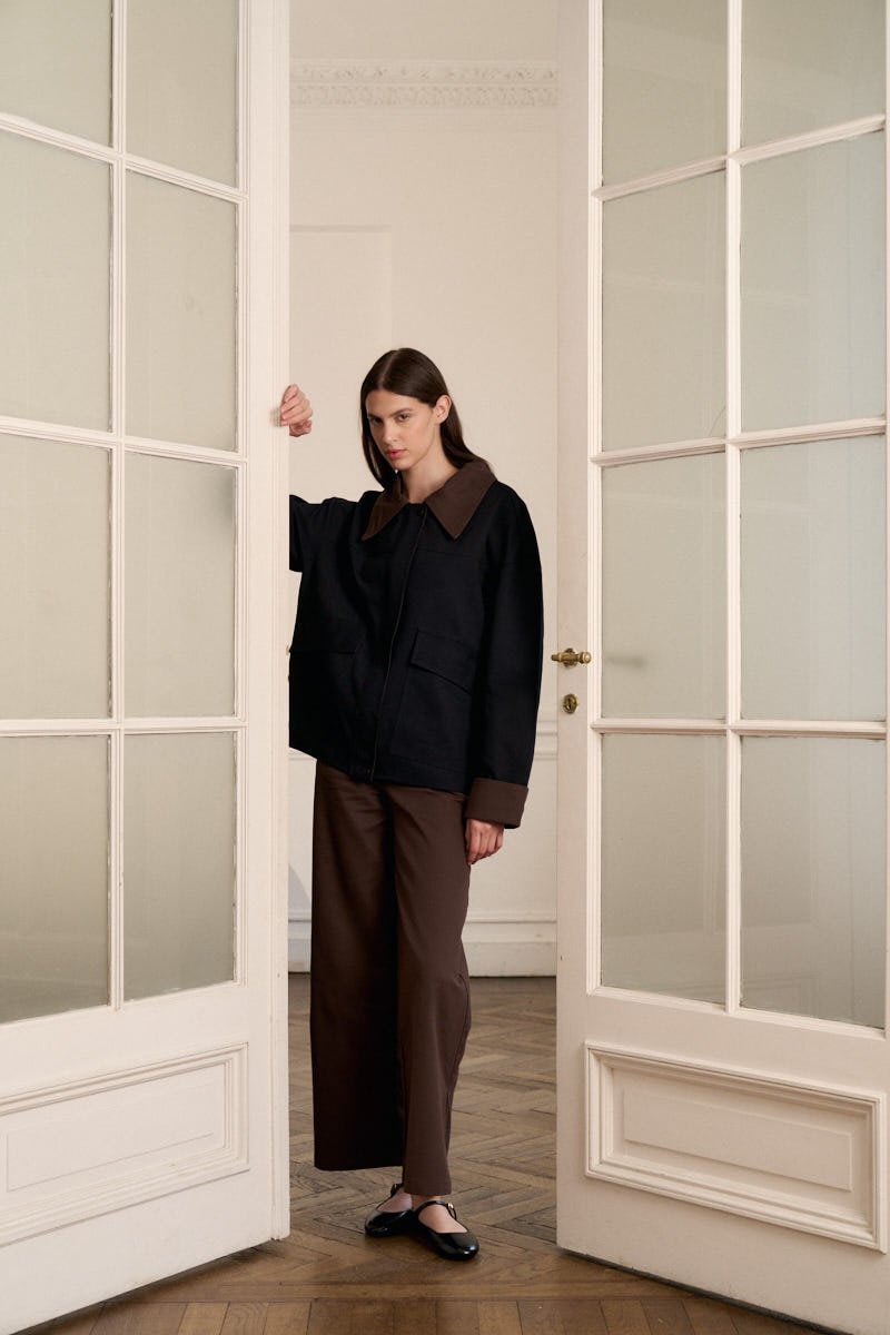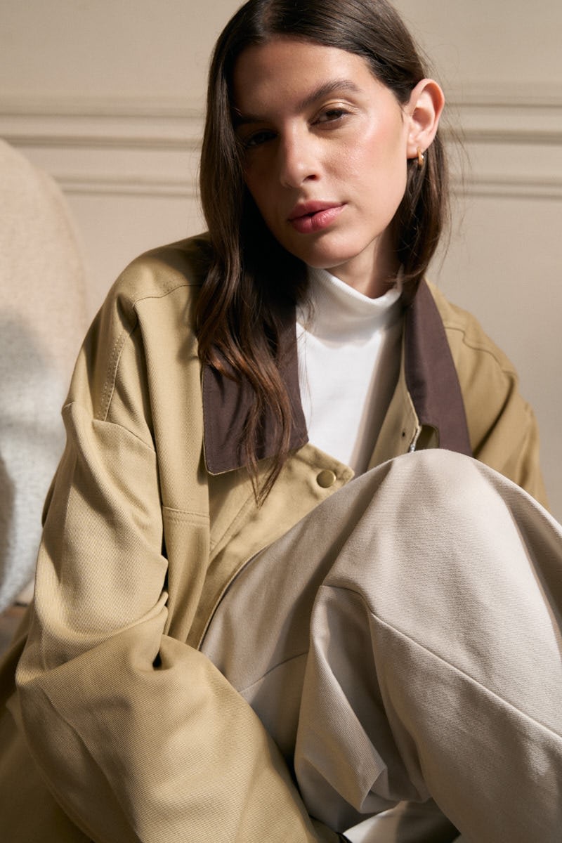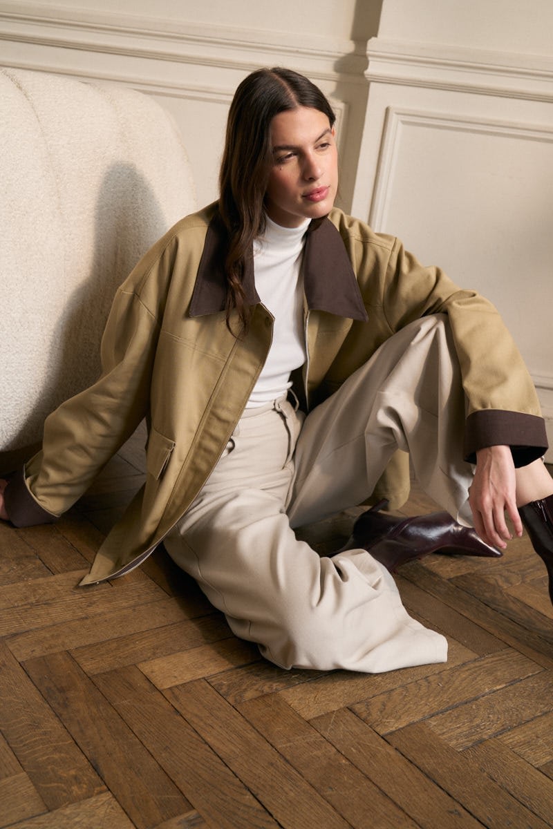 Campera de gabardina combinada con tapacierre
