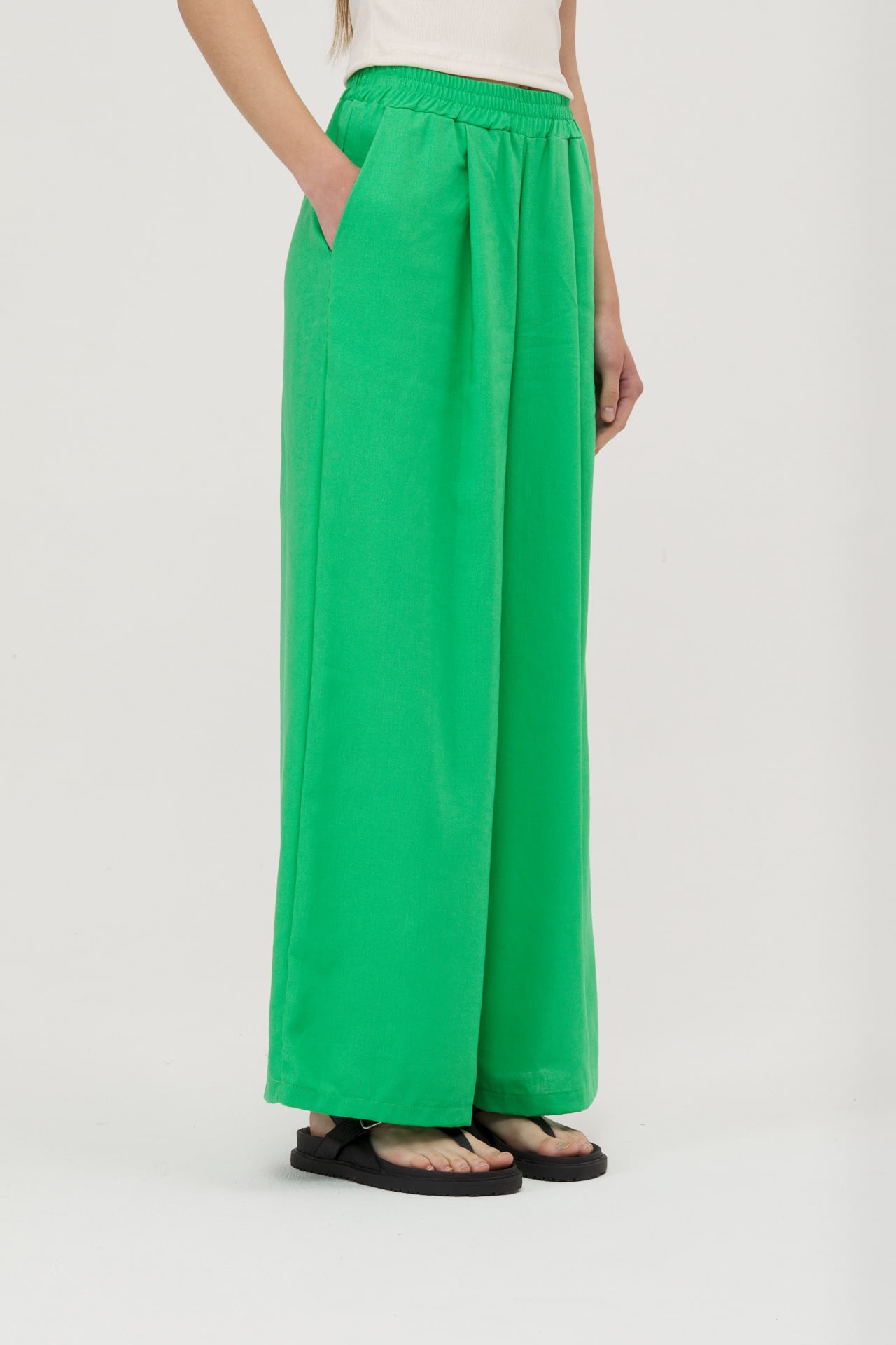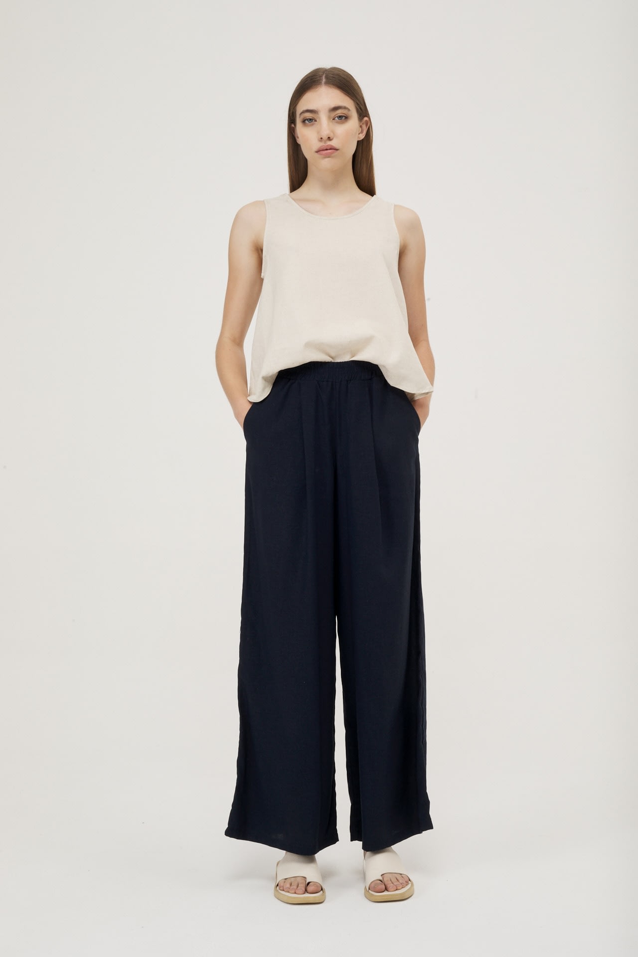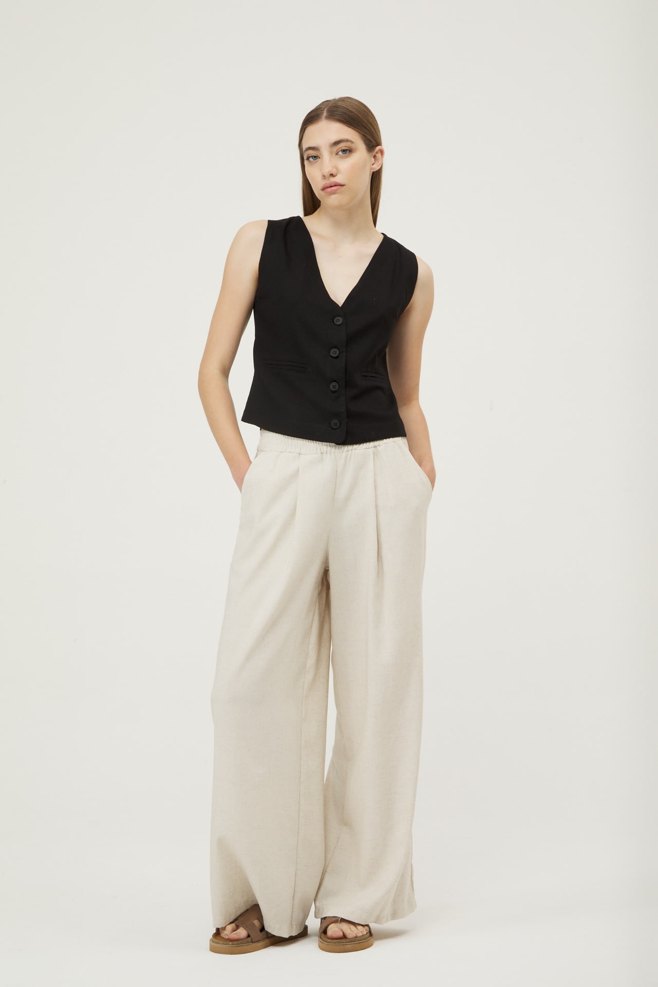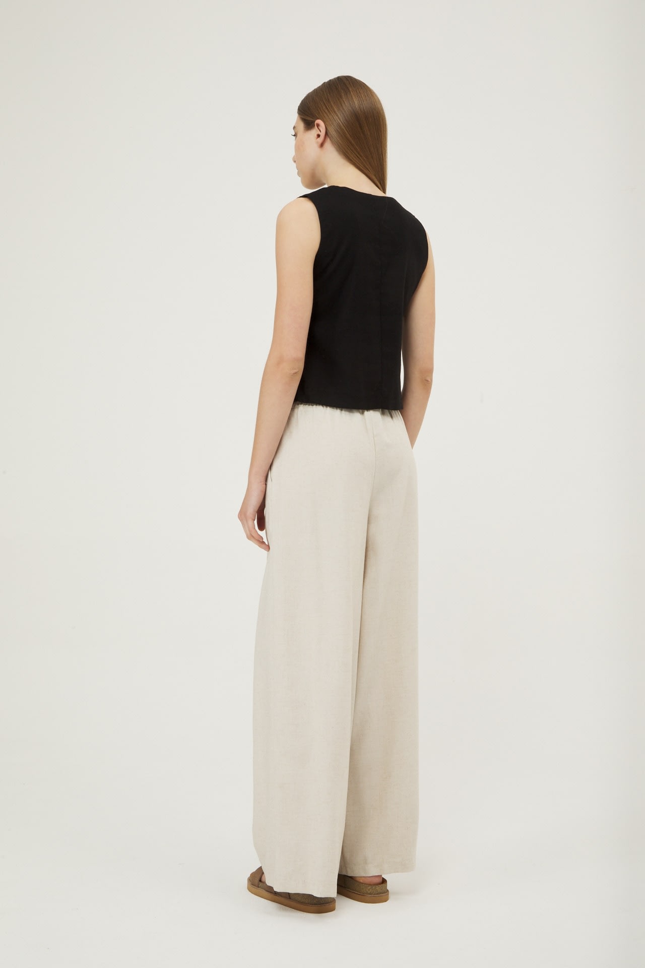 Palazzo de lino real con elástico en cintura y bolsillos reales. Tiro Alto.