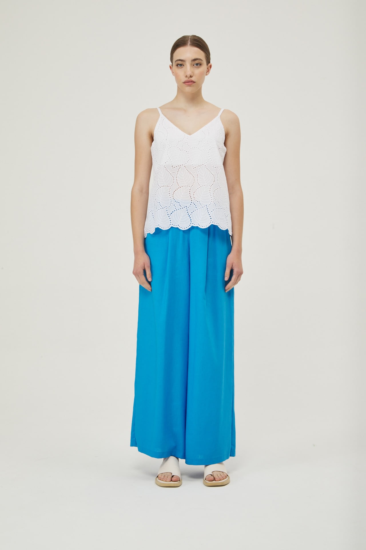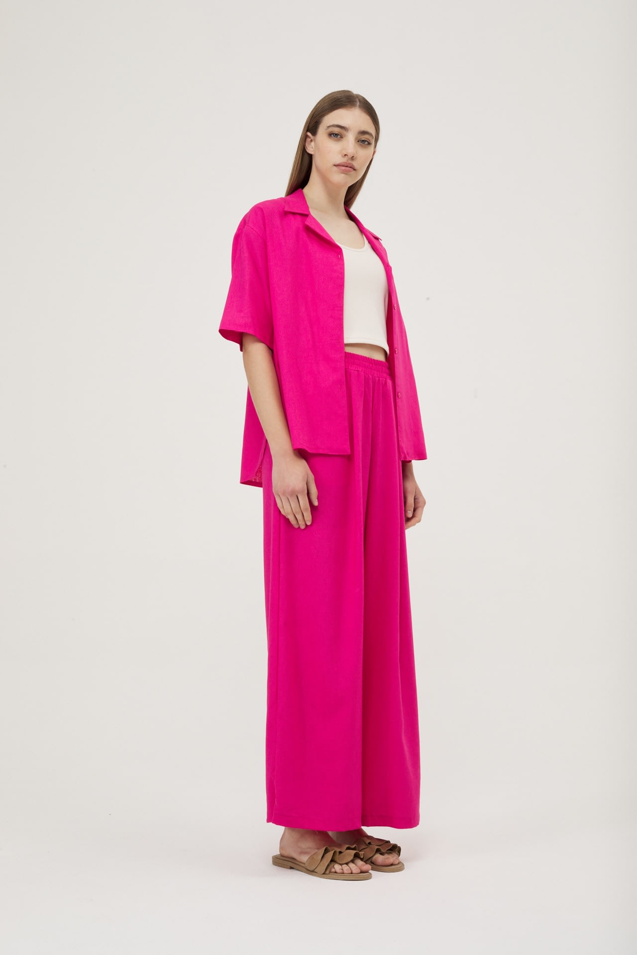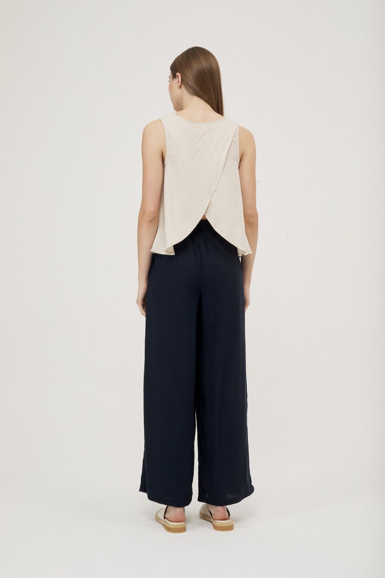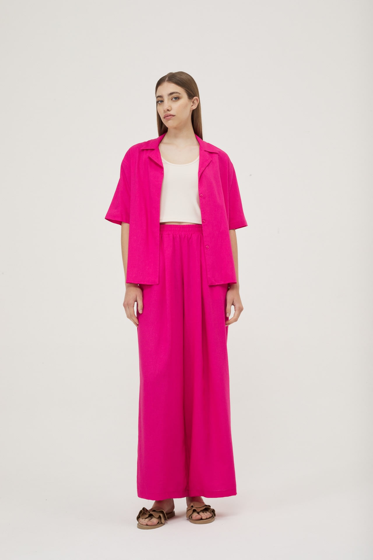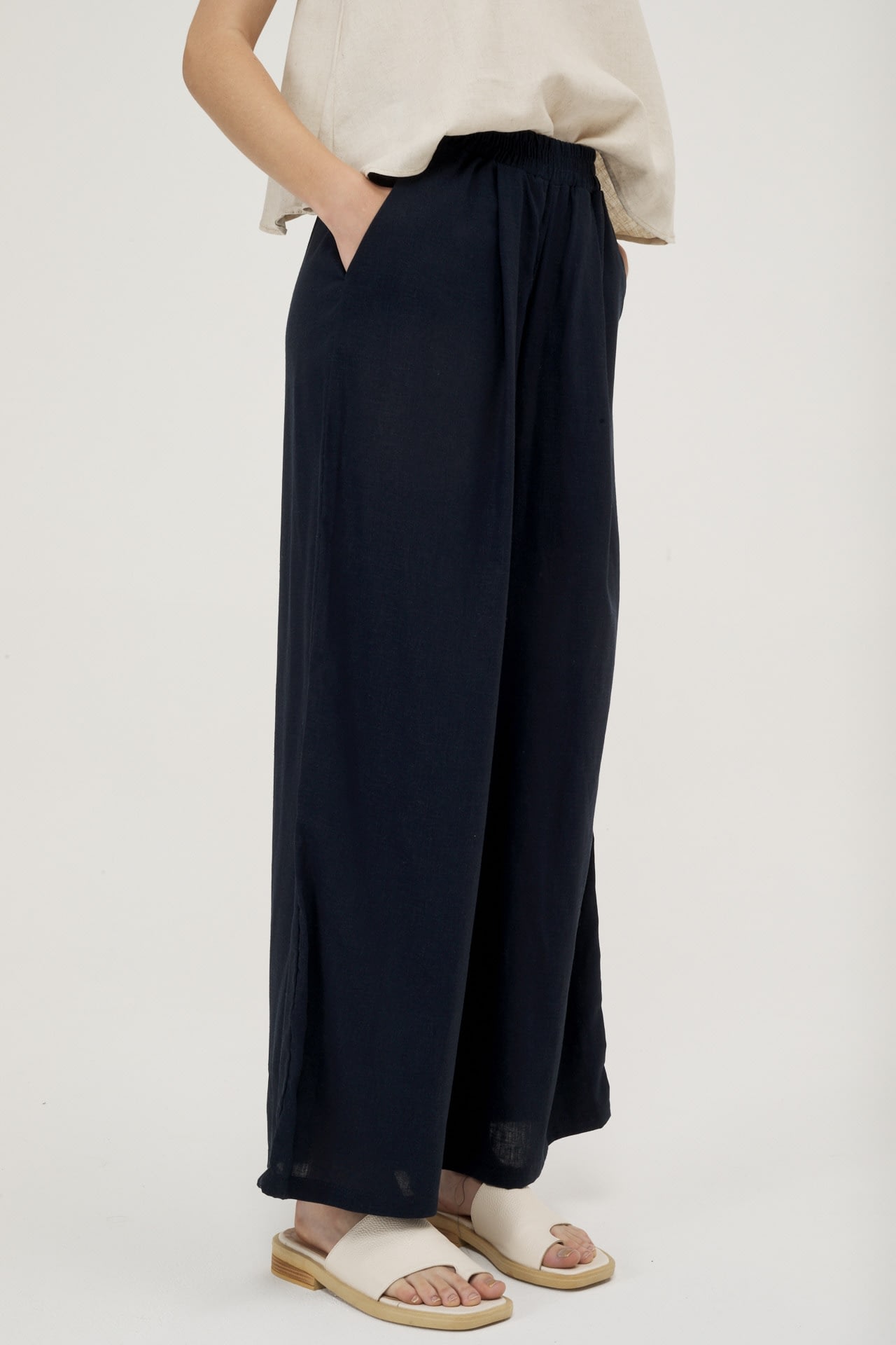 Palazzo de lino real con elástico en cintura y bolsillos reales. Tiro Alto.