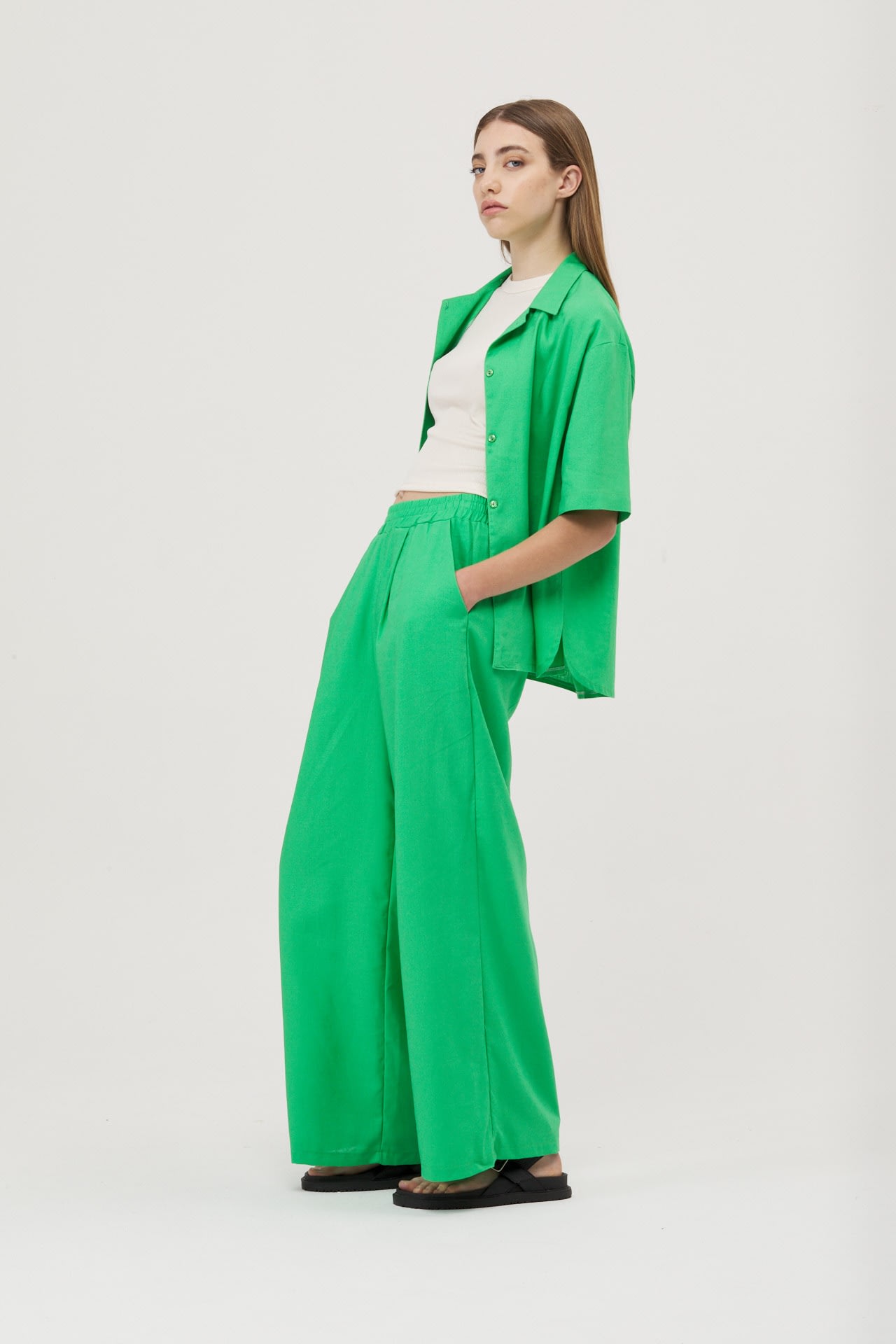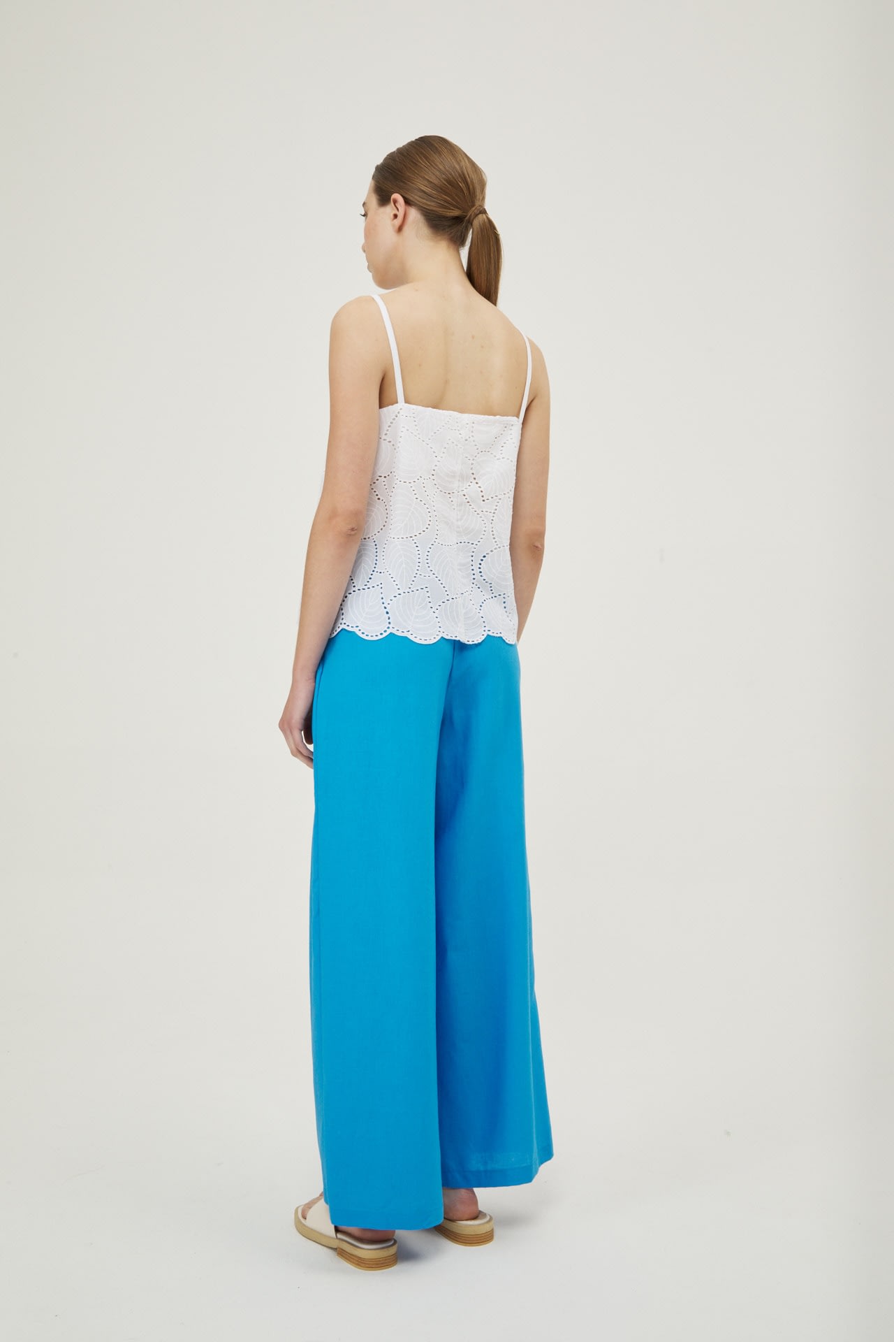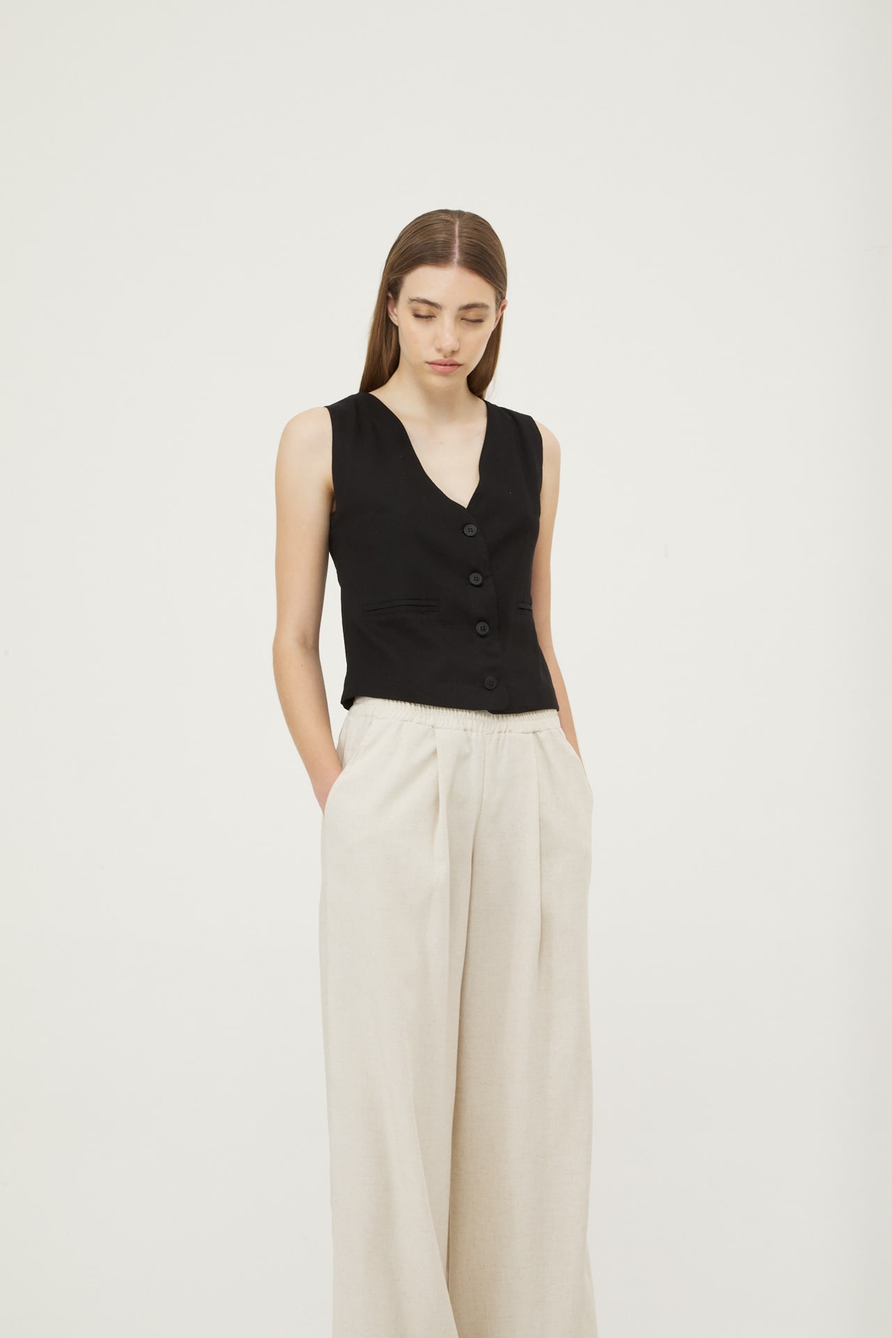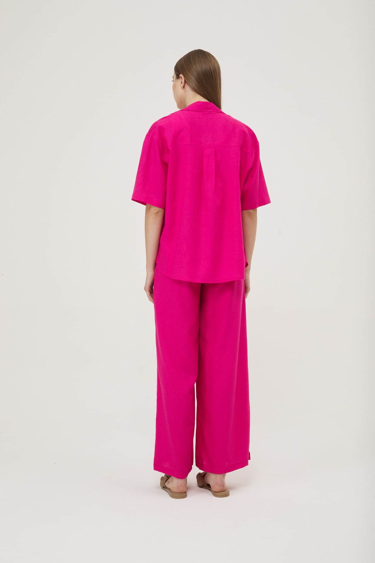 Palazzo de lino real con elástico en cintura y bolsillos reales. Tiro Alto.
