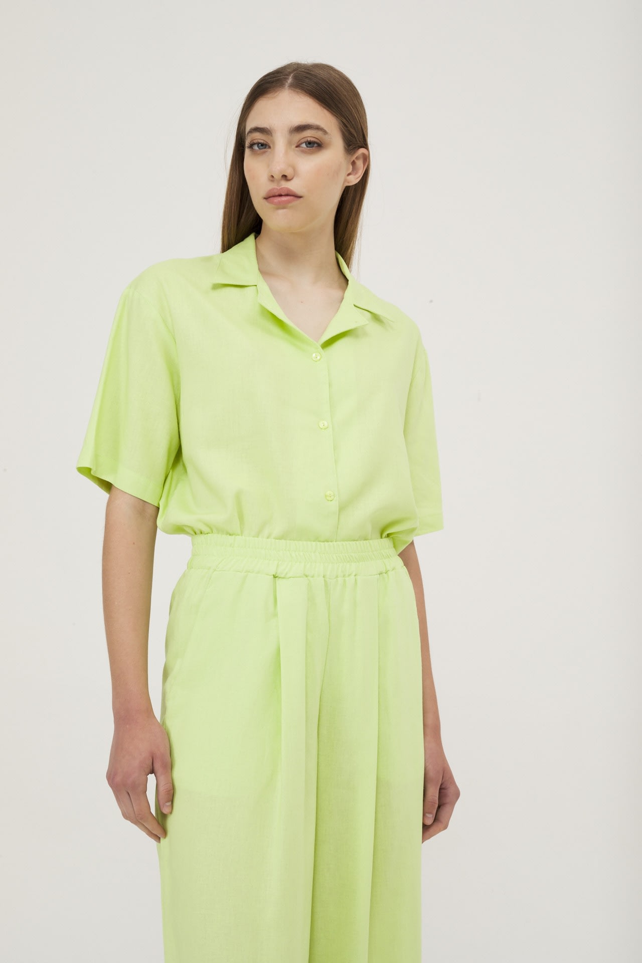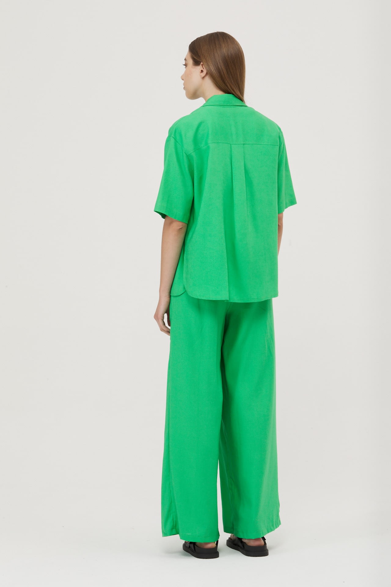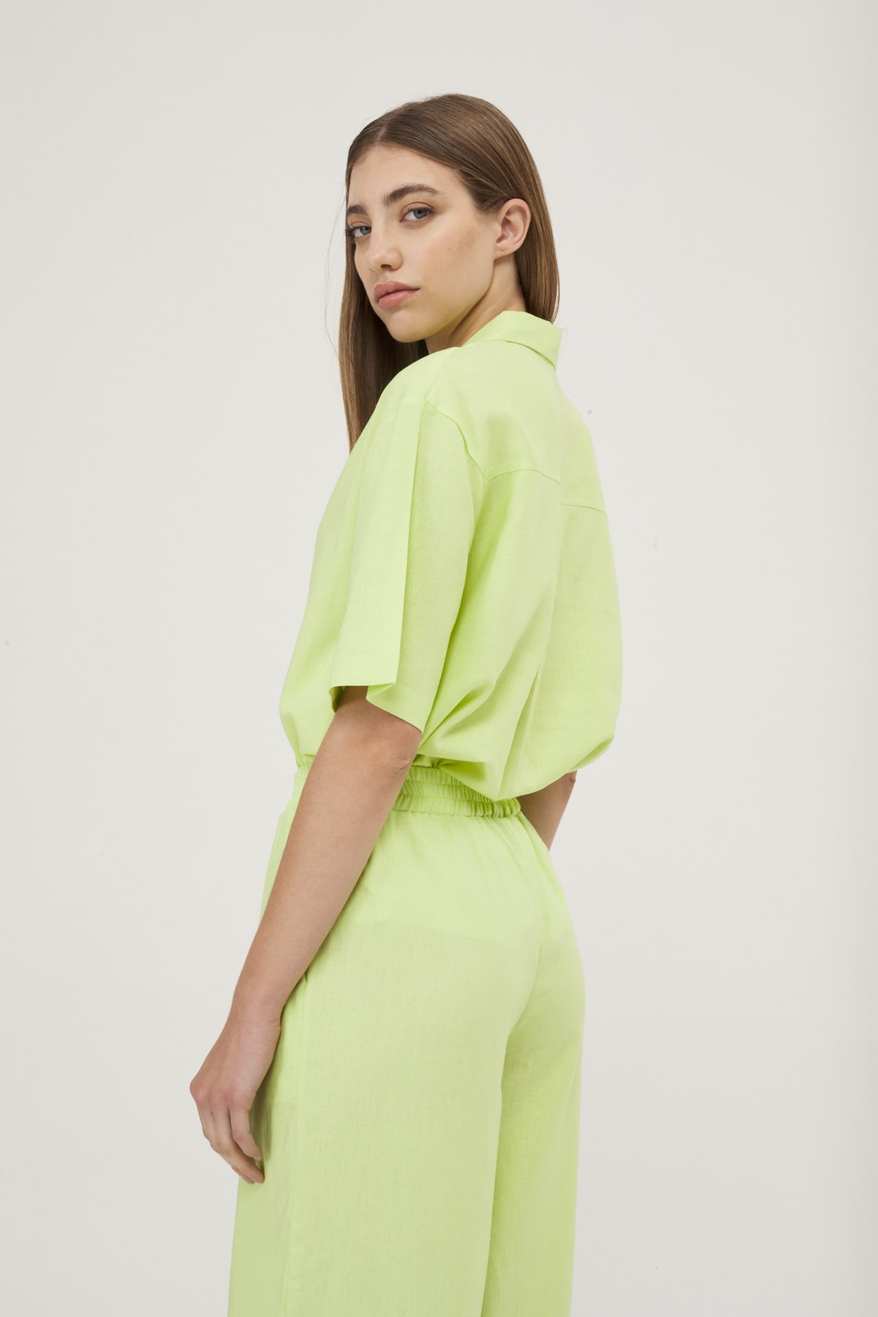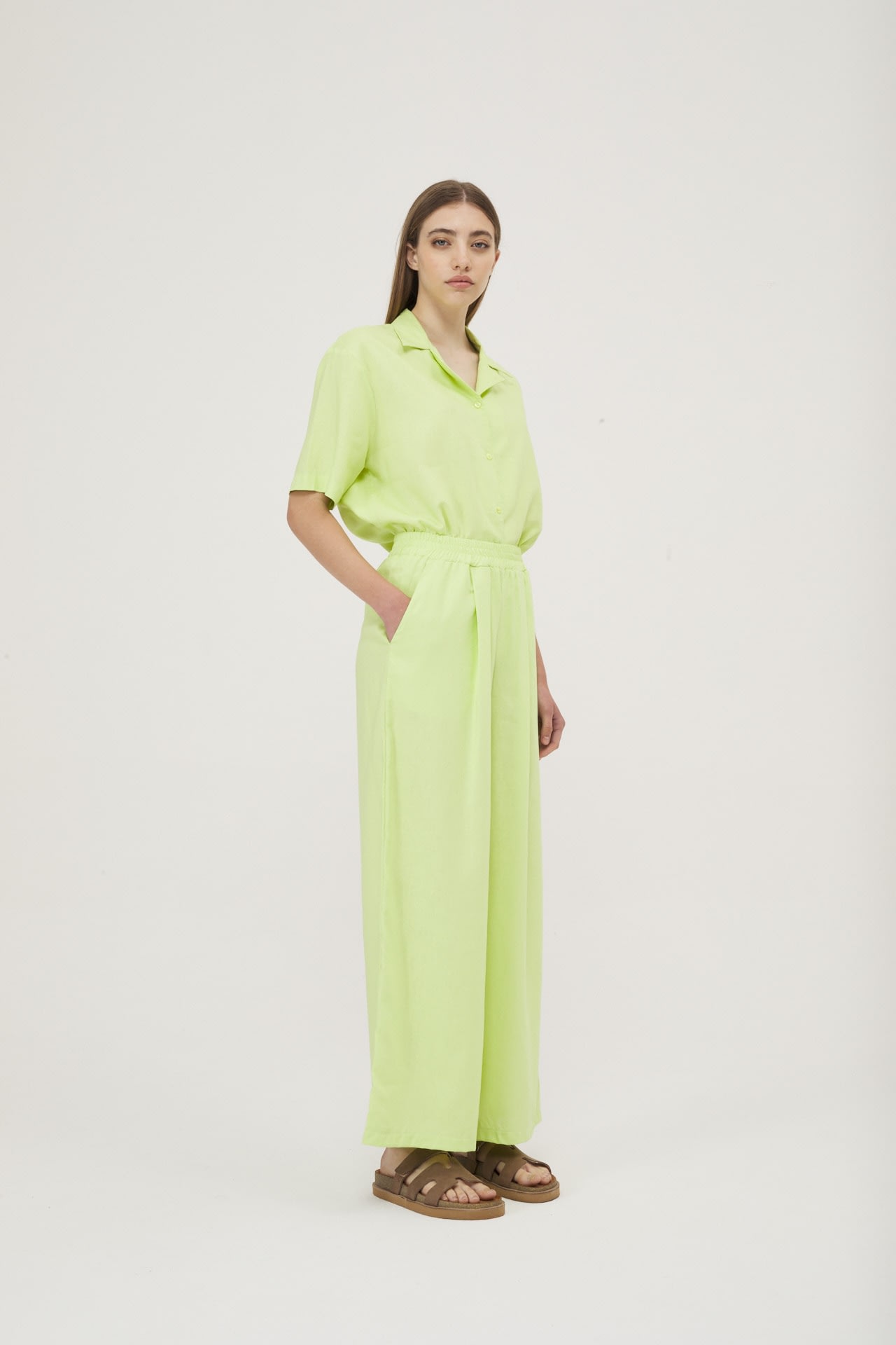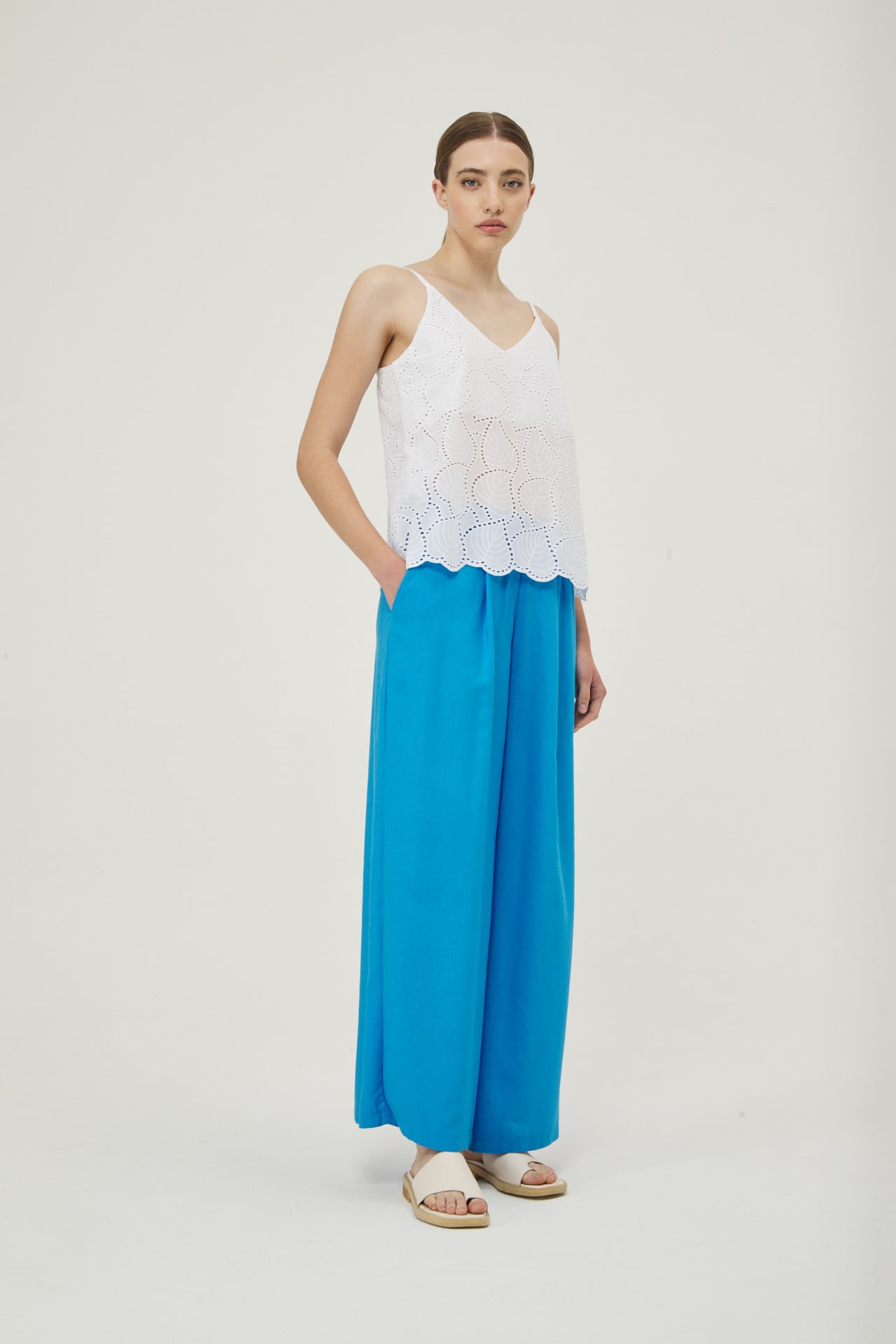 Palazzo de lino real con elástico en cintura y bolsillos reales. Tiro Alto.