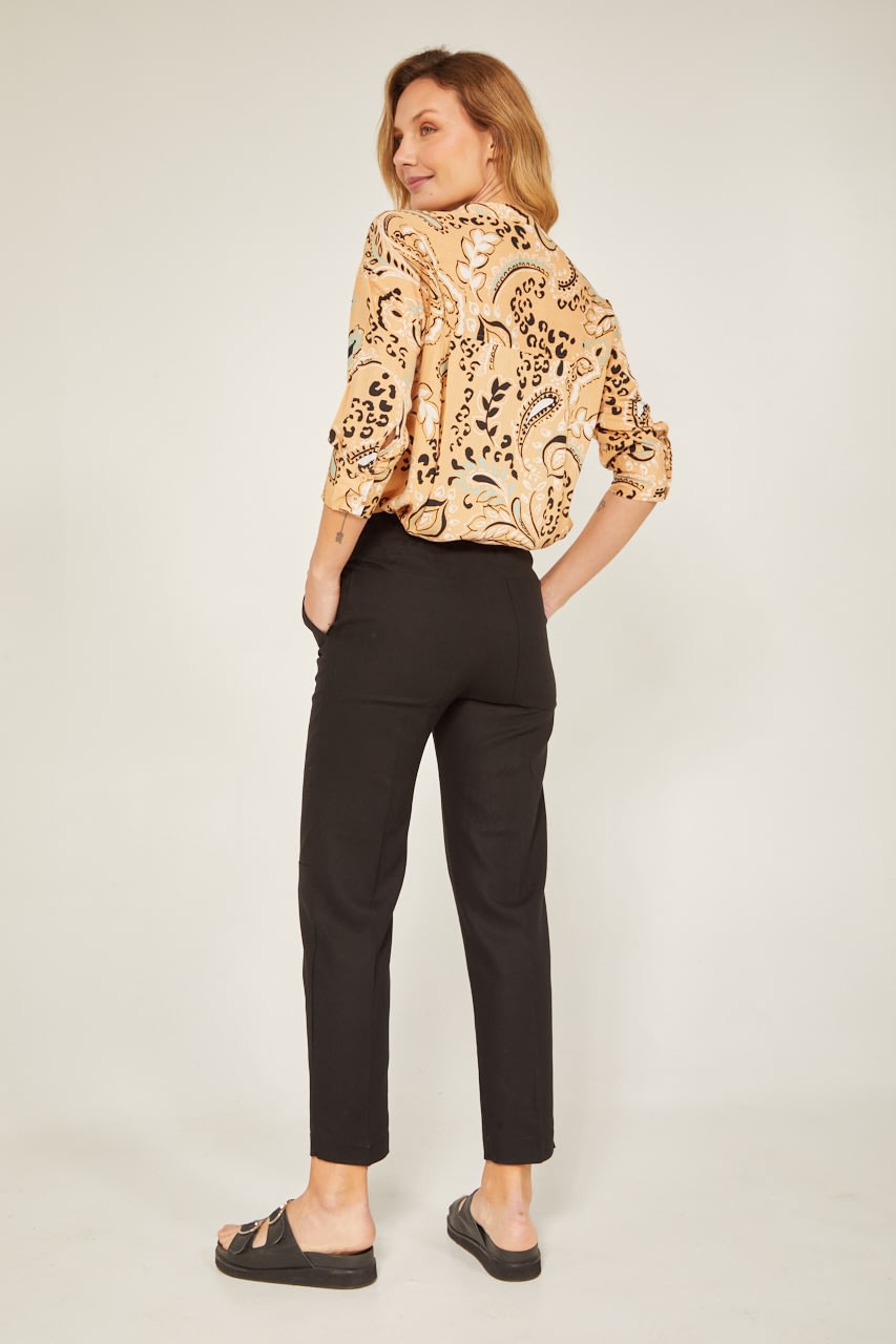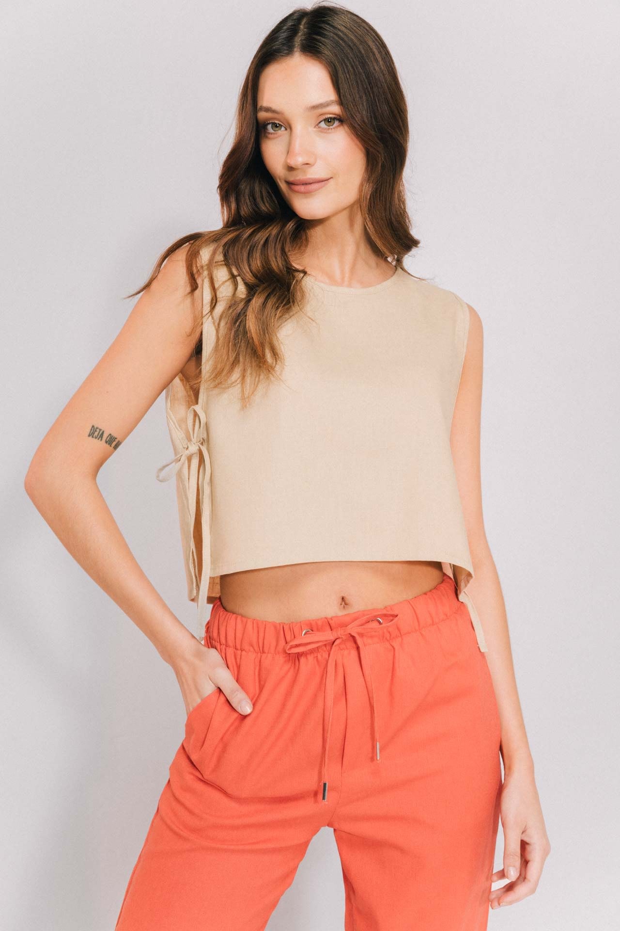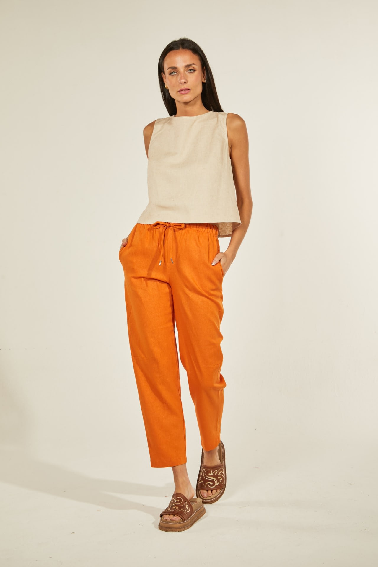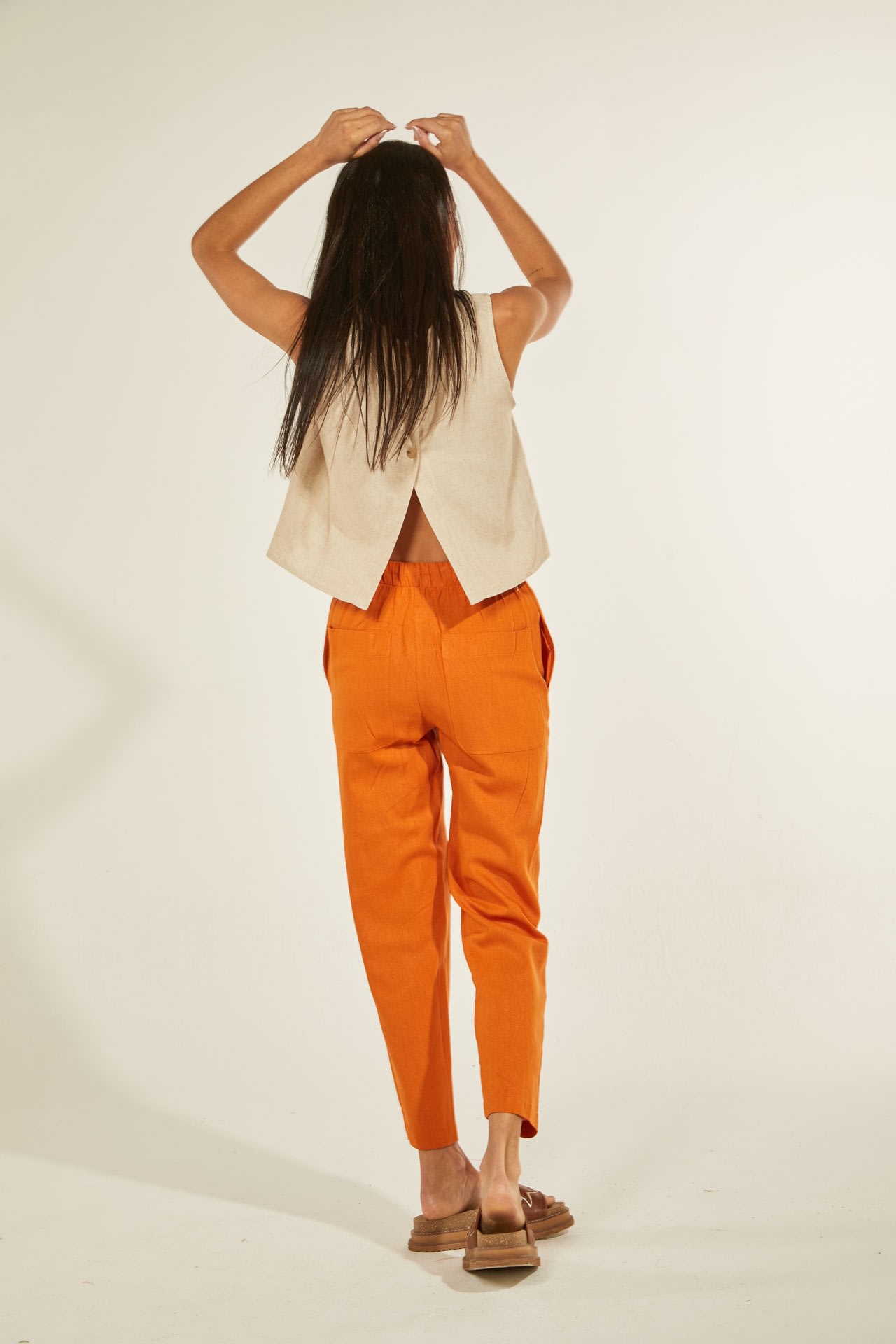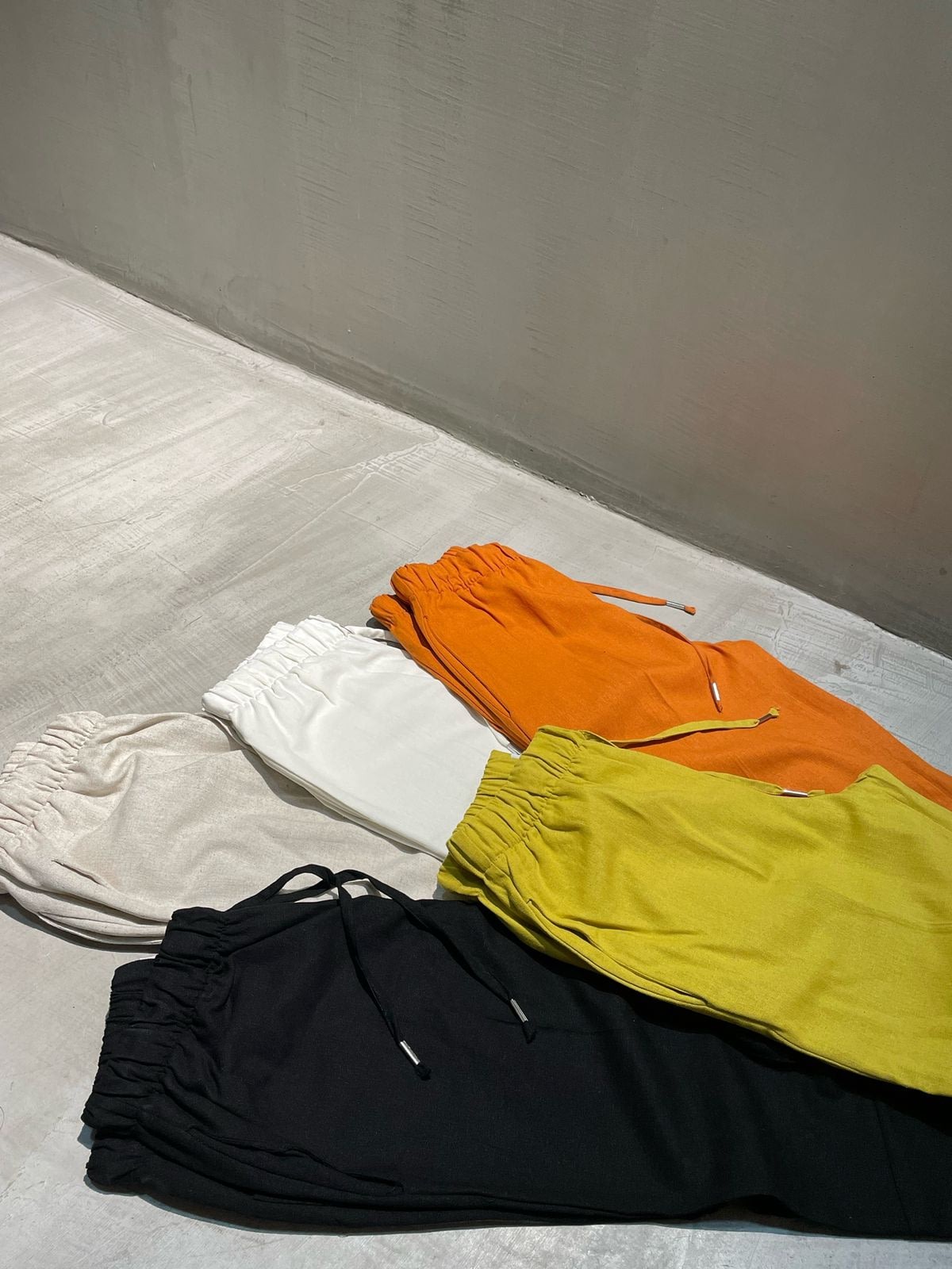 Pantalón jogger de lino sastrero con cordon ajustable y bolsillos traseros y laterales.
