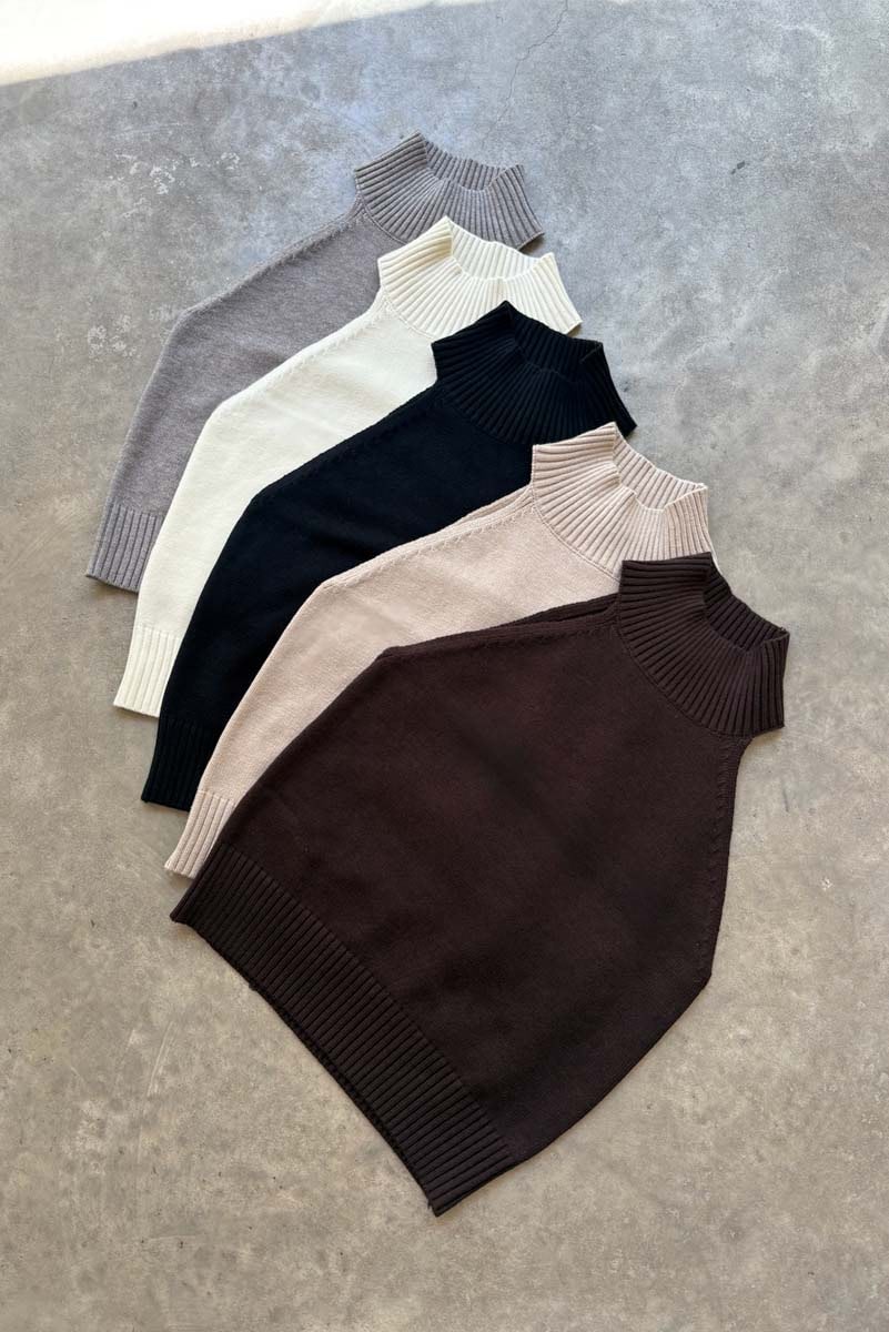 Musculosa tejida (49.3% viscosa 27.7% nylon 23% pbt) con cuello alto.