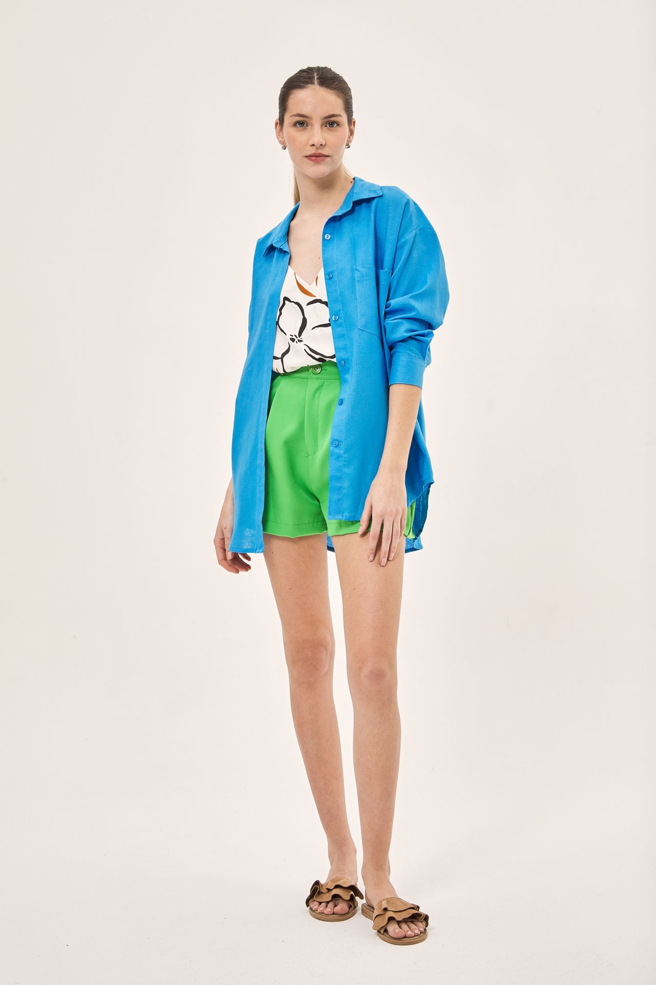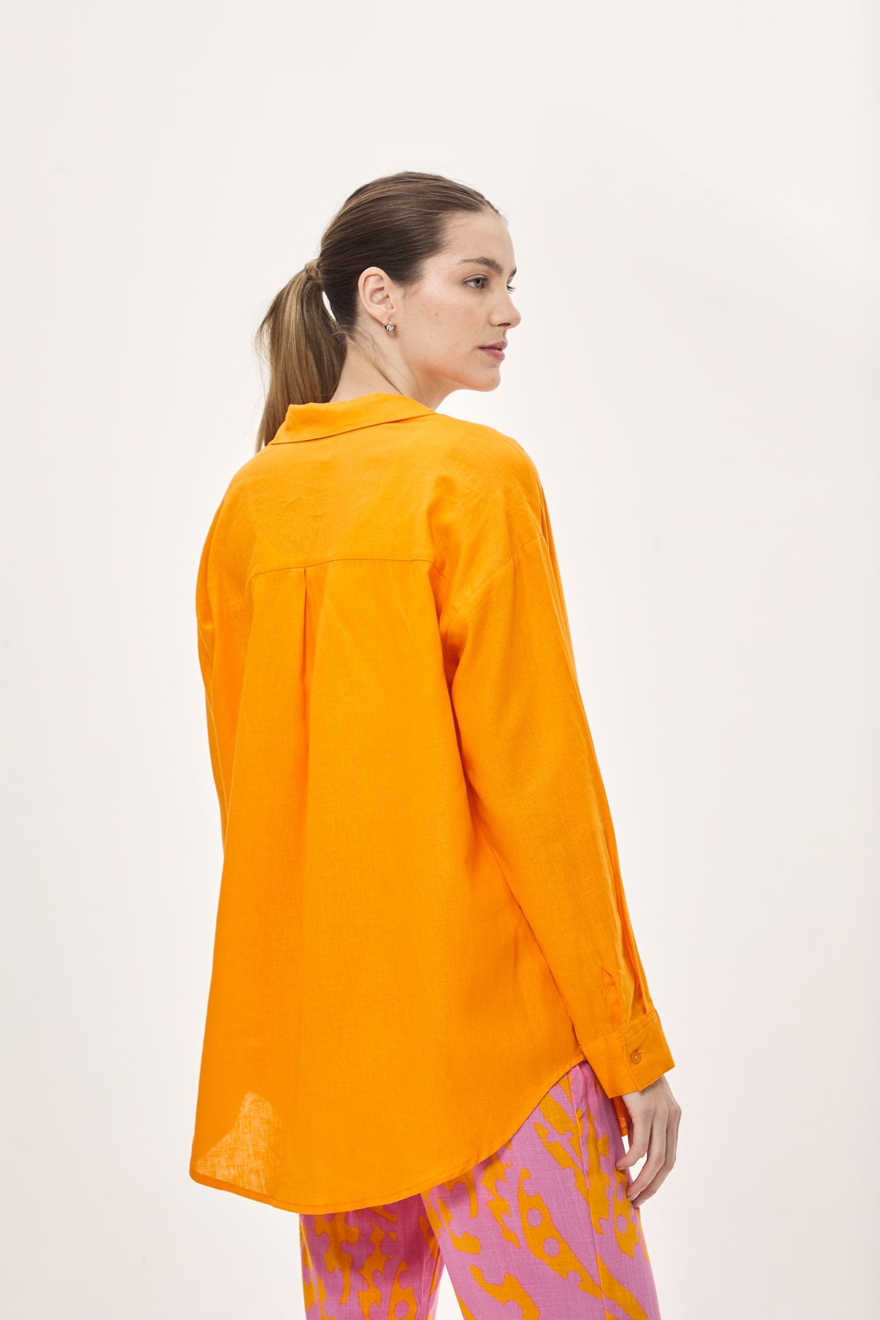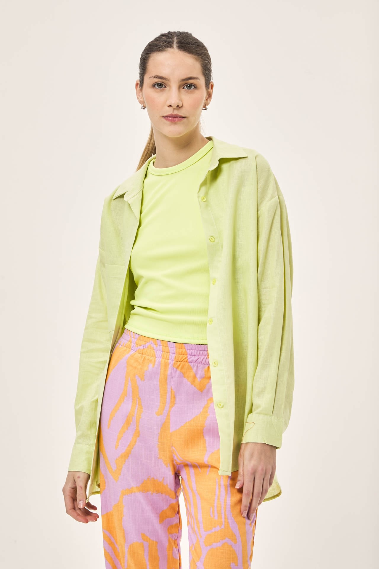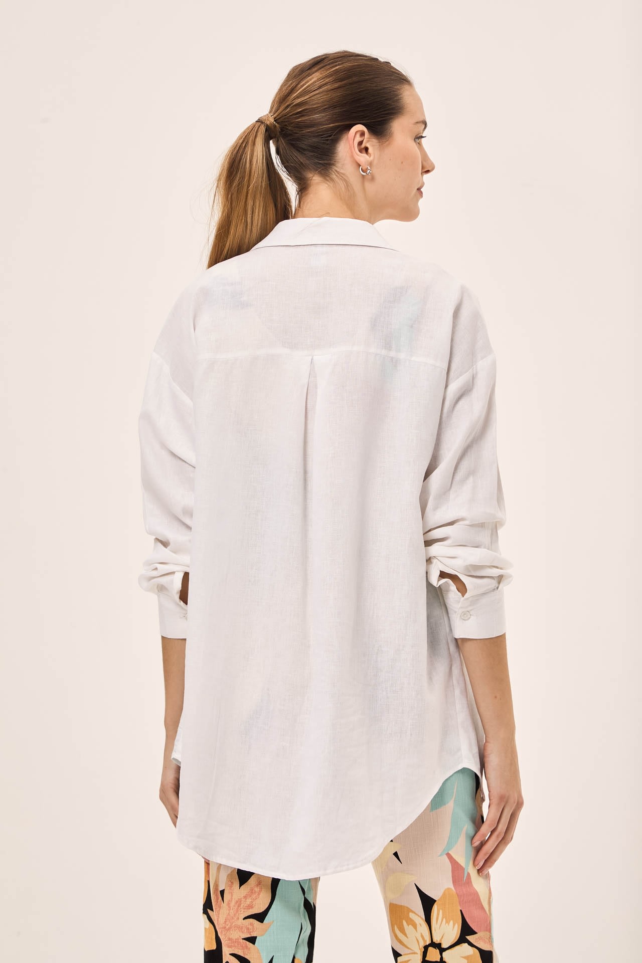 Camisa de lino estilo oversize. Contiene 55% de lino real y 45% de viscosa.