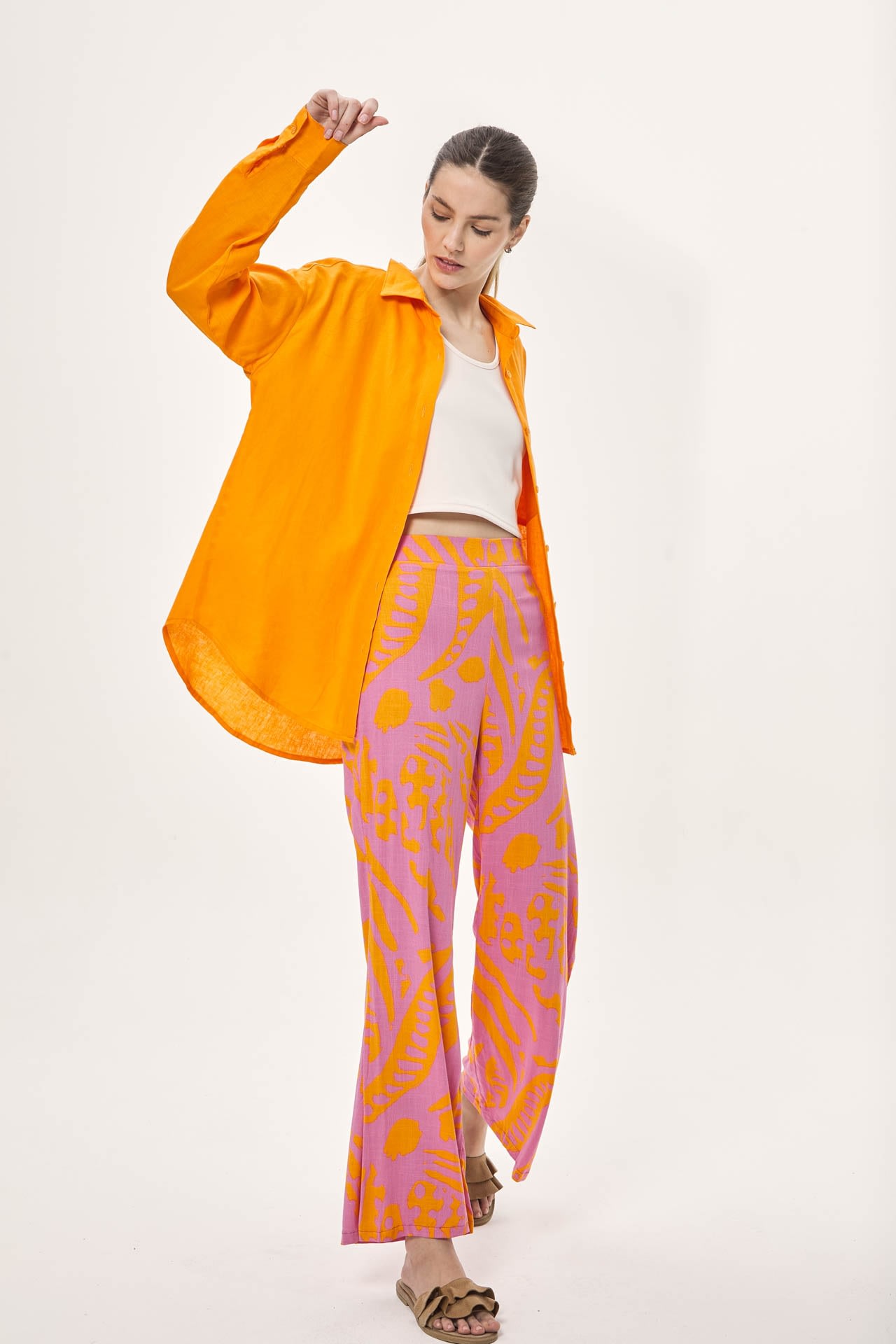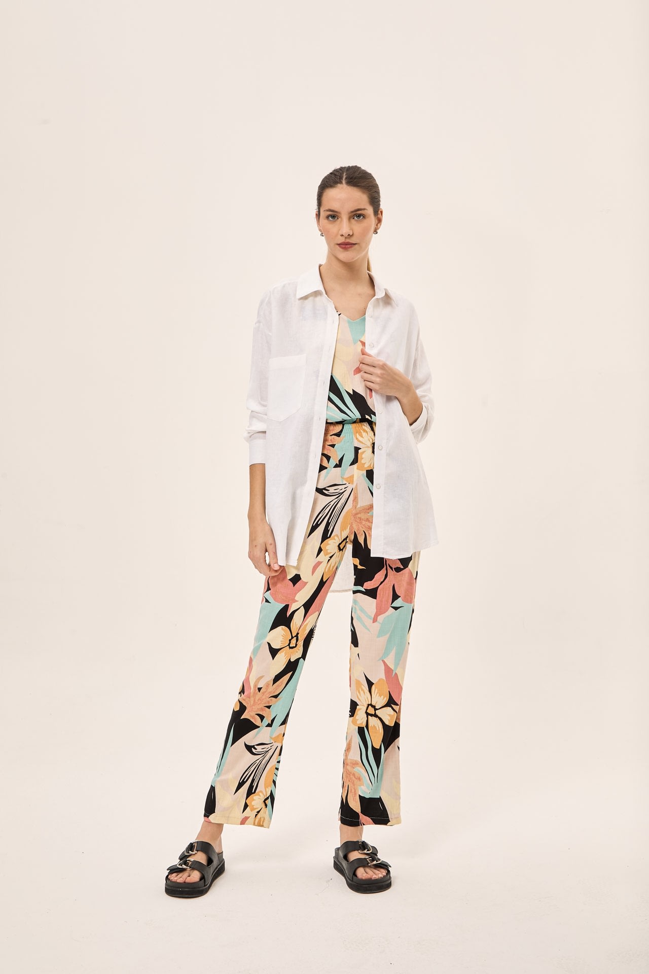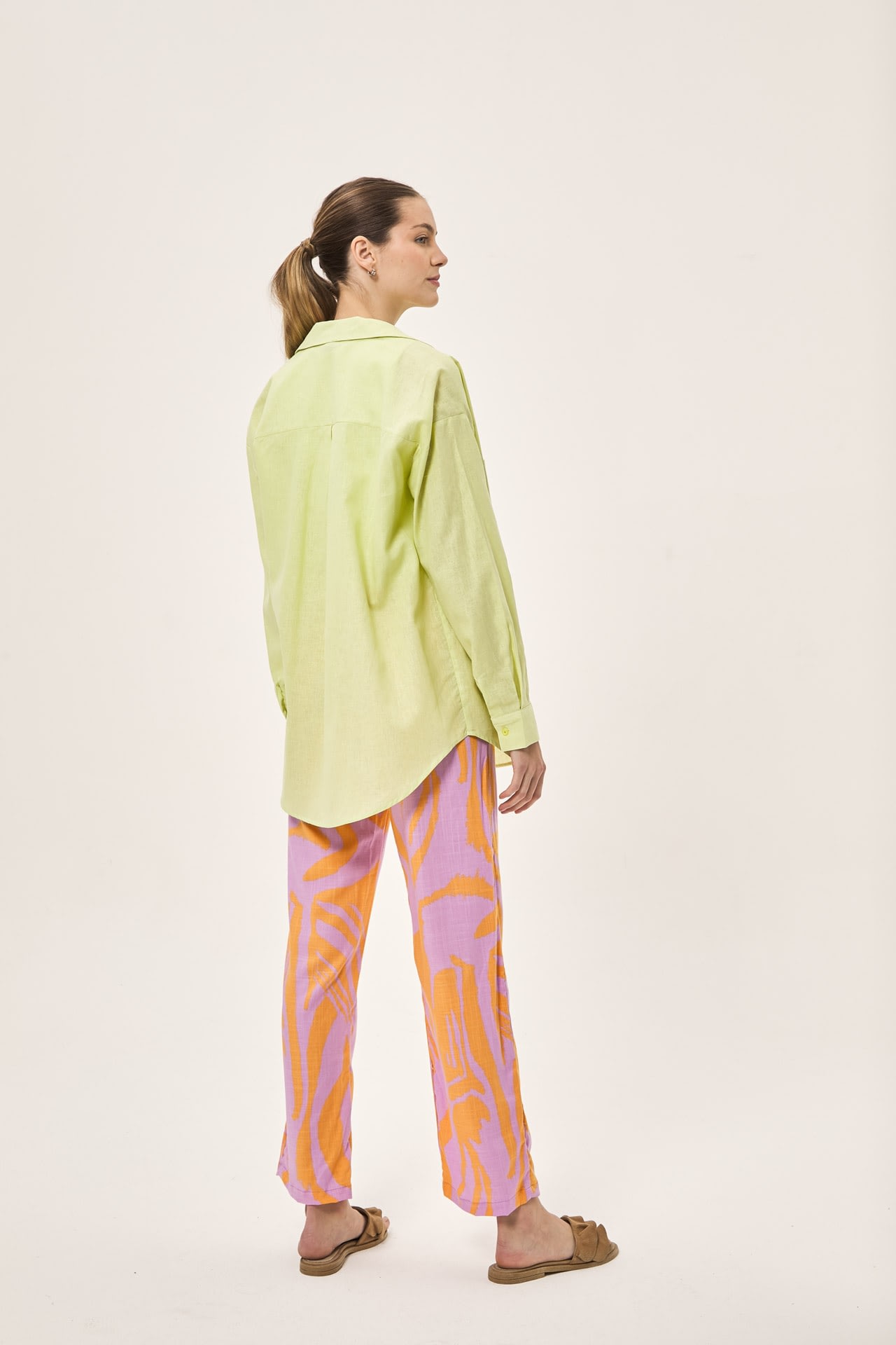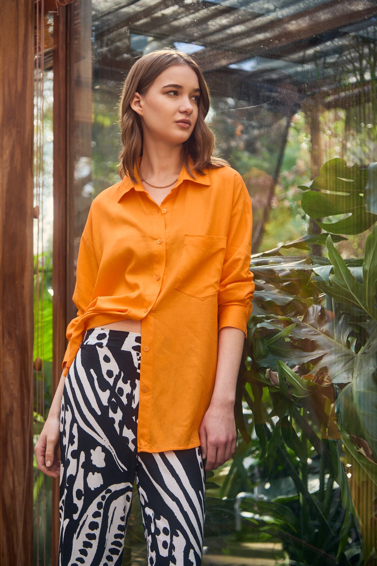 Camisa de lino estilo oversize. Contiene 55% de lino real y 45% de viscosa.