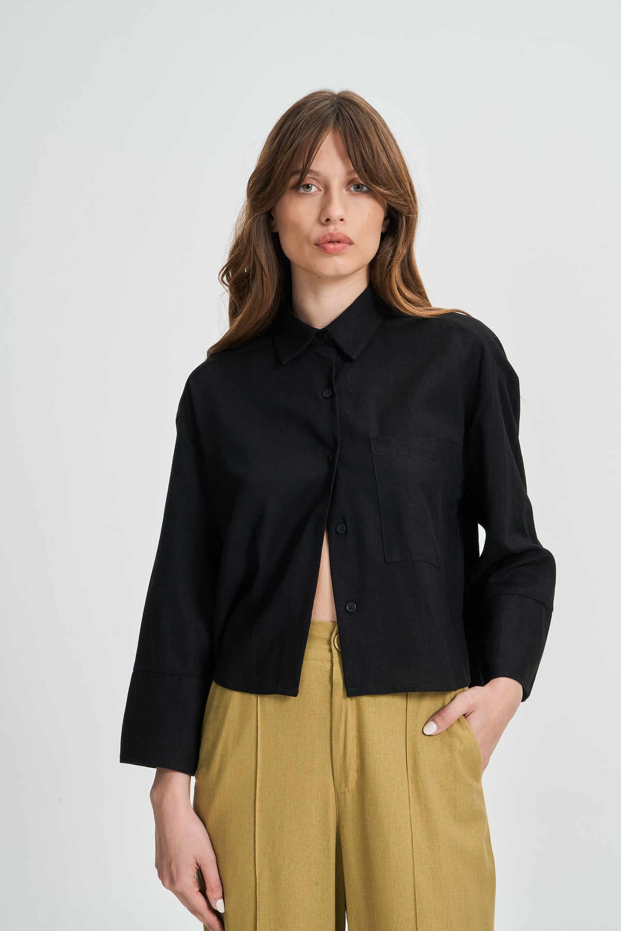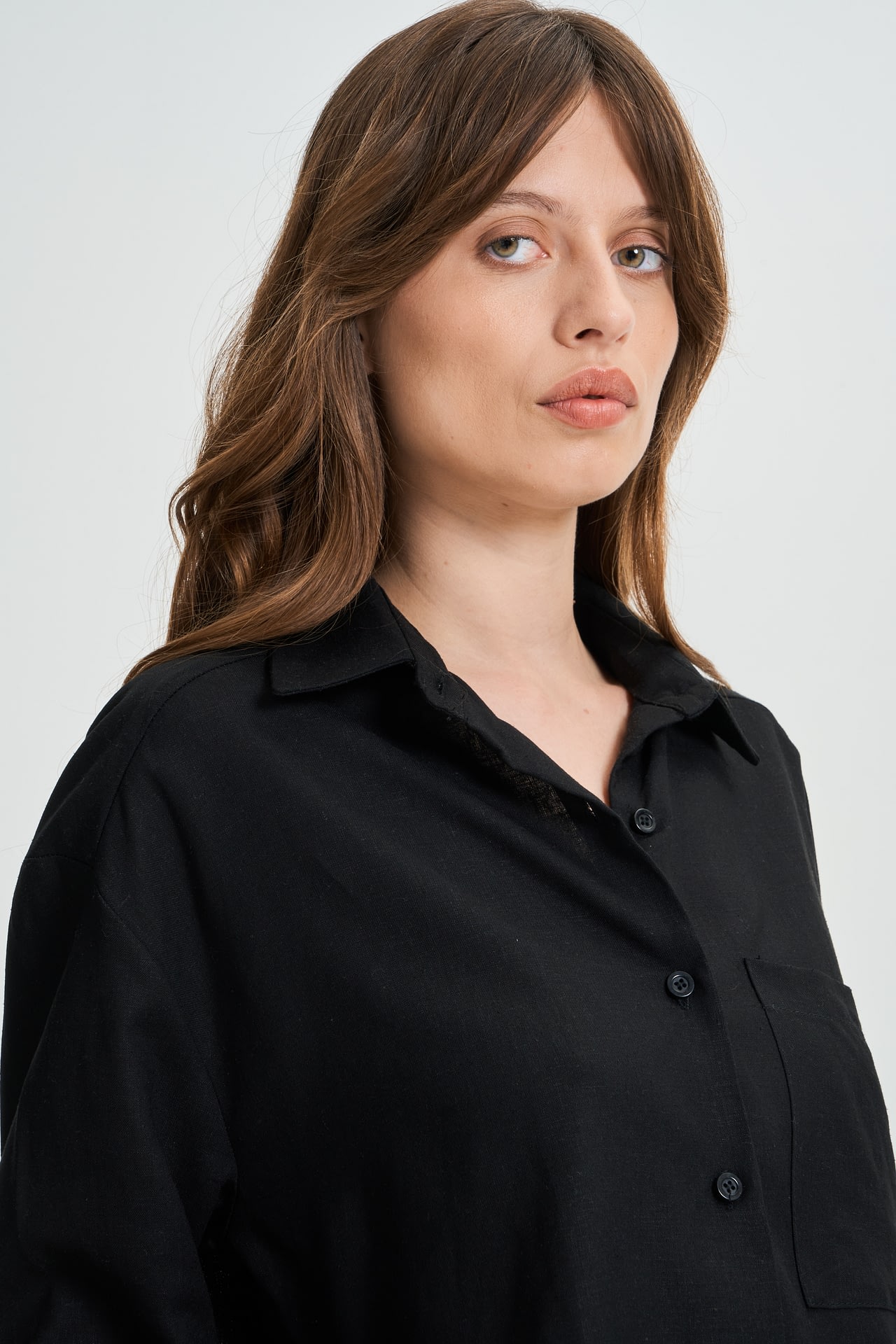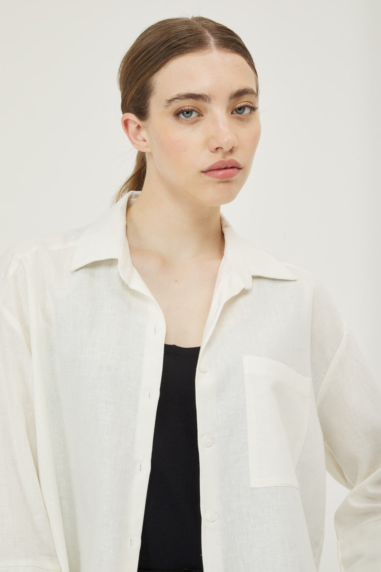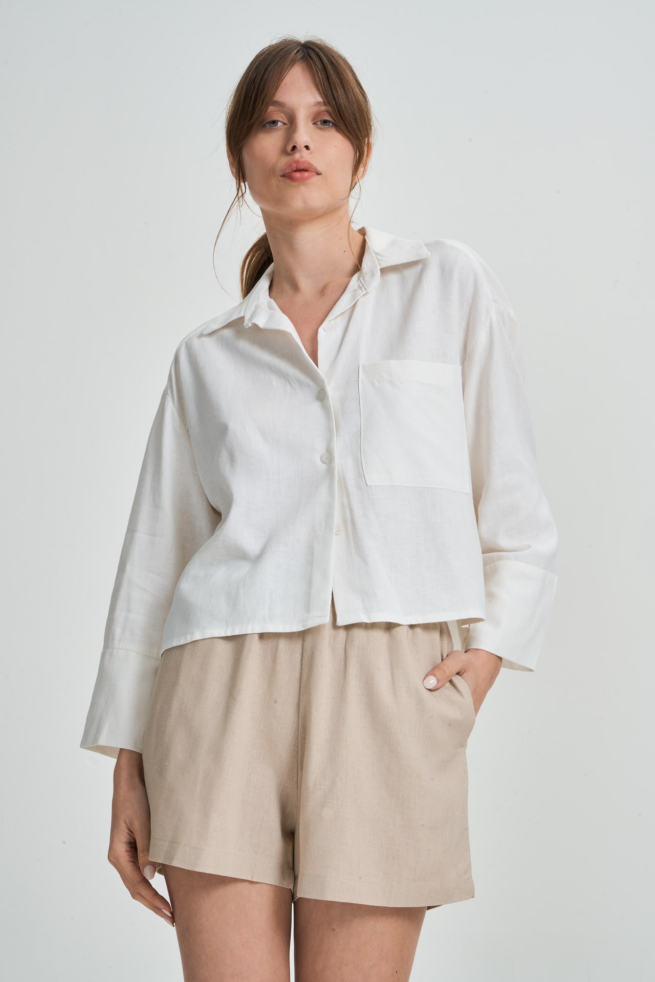 Camisa de lino sastrero con botones y bolsillo delantero.