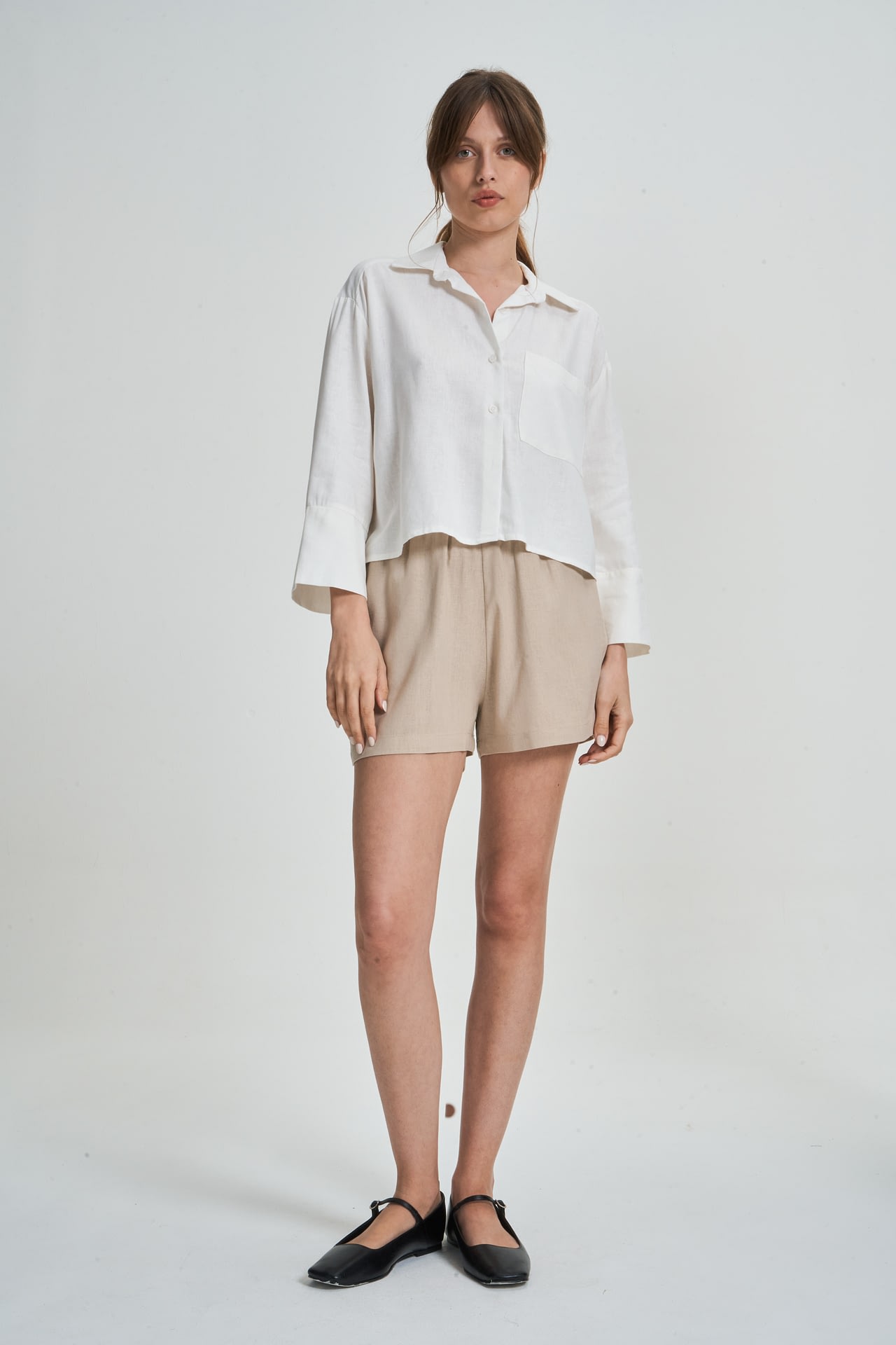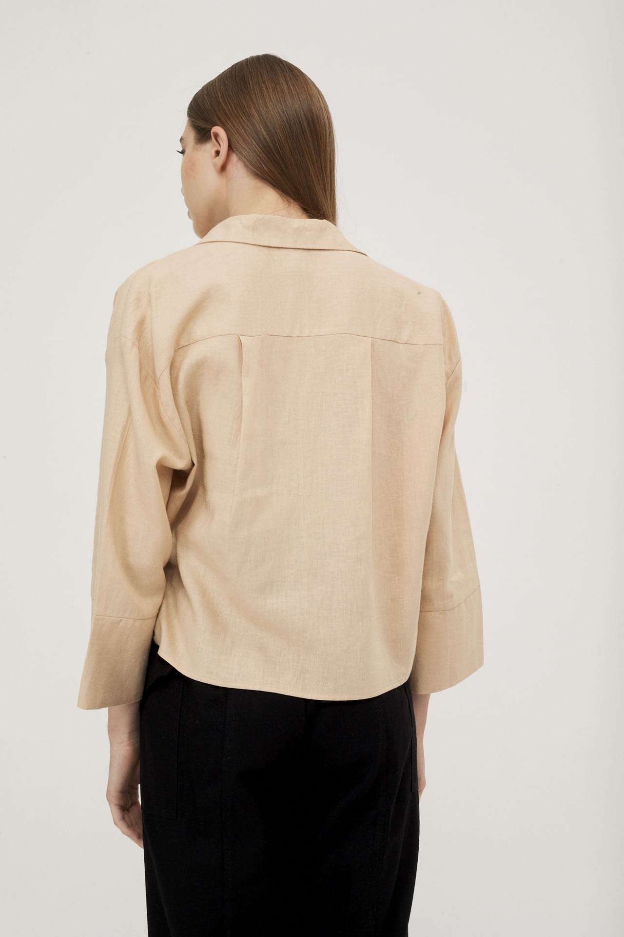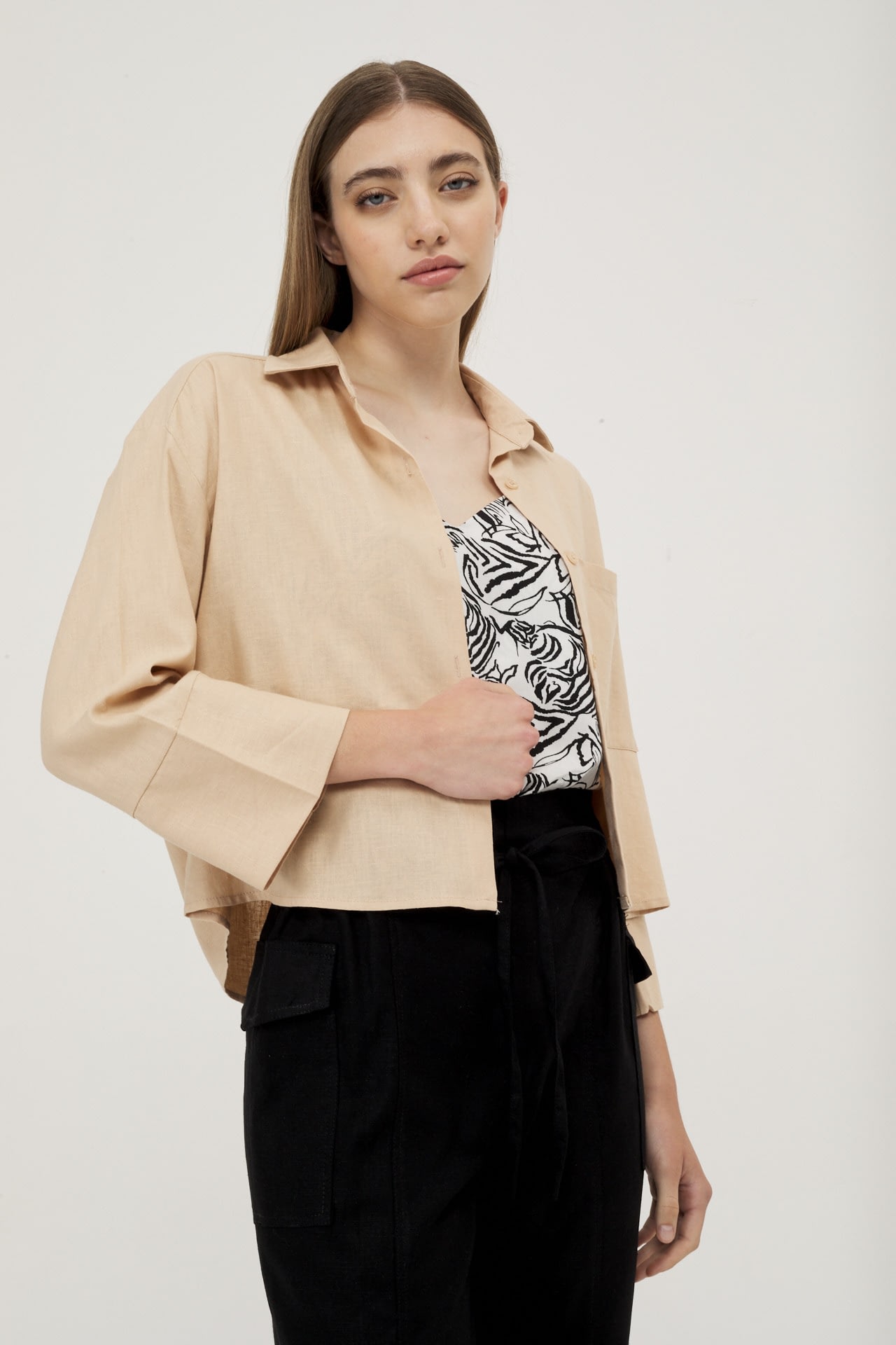 Camisa de lino sastrero con botones y bolsillo delantero.