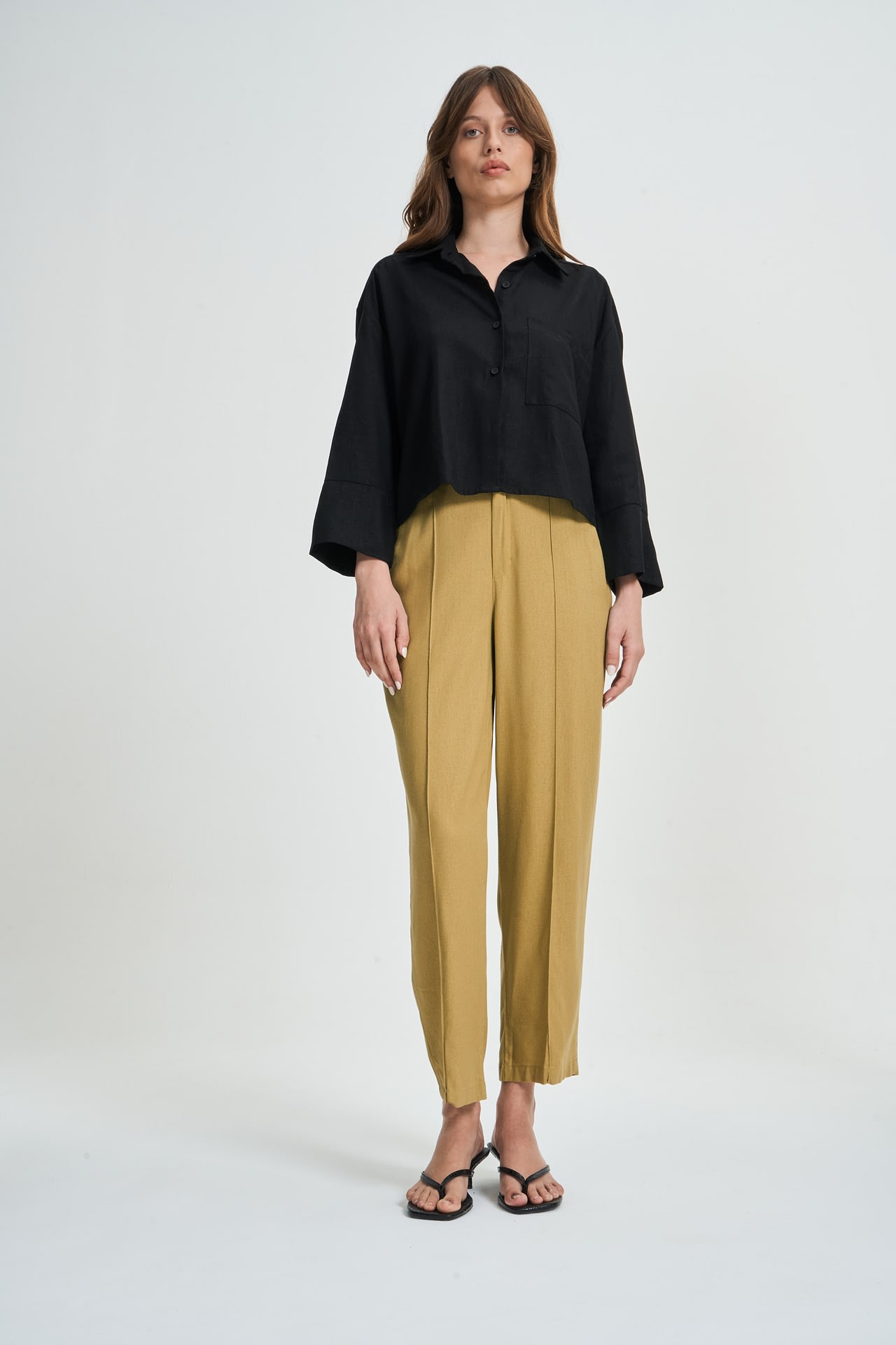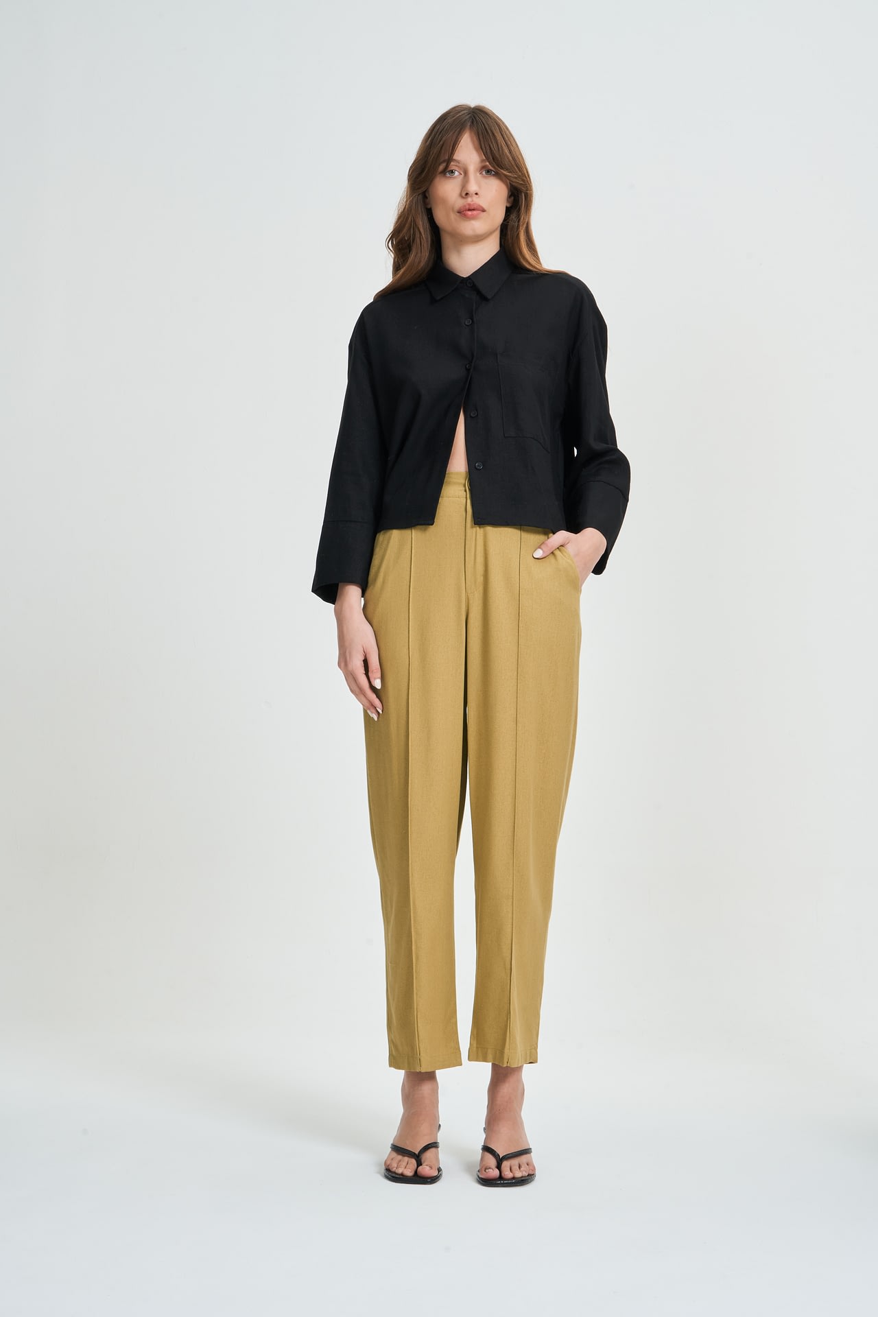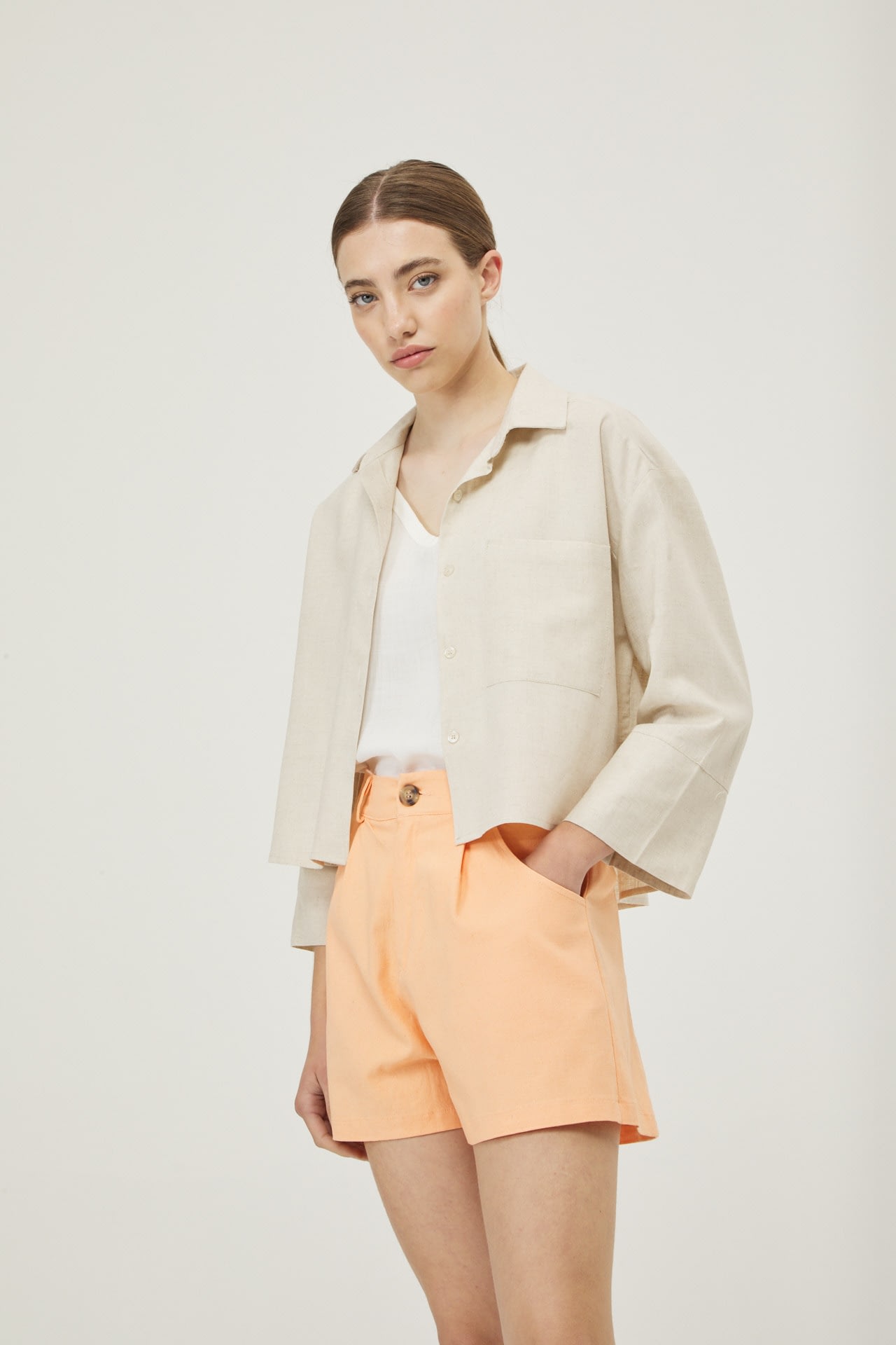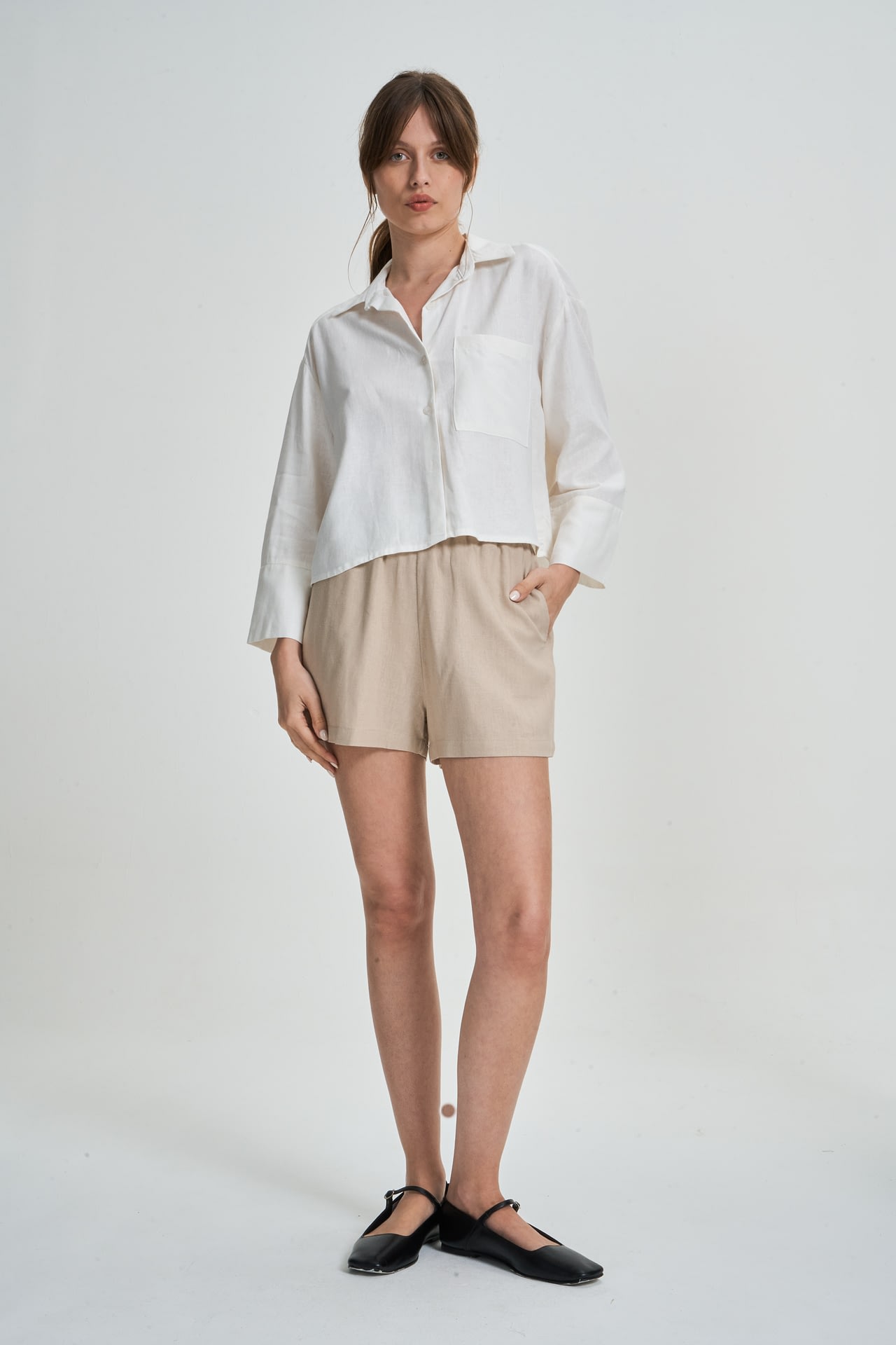 Camisa de lino sastrero con botones y bolsillo delantero.