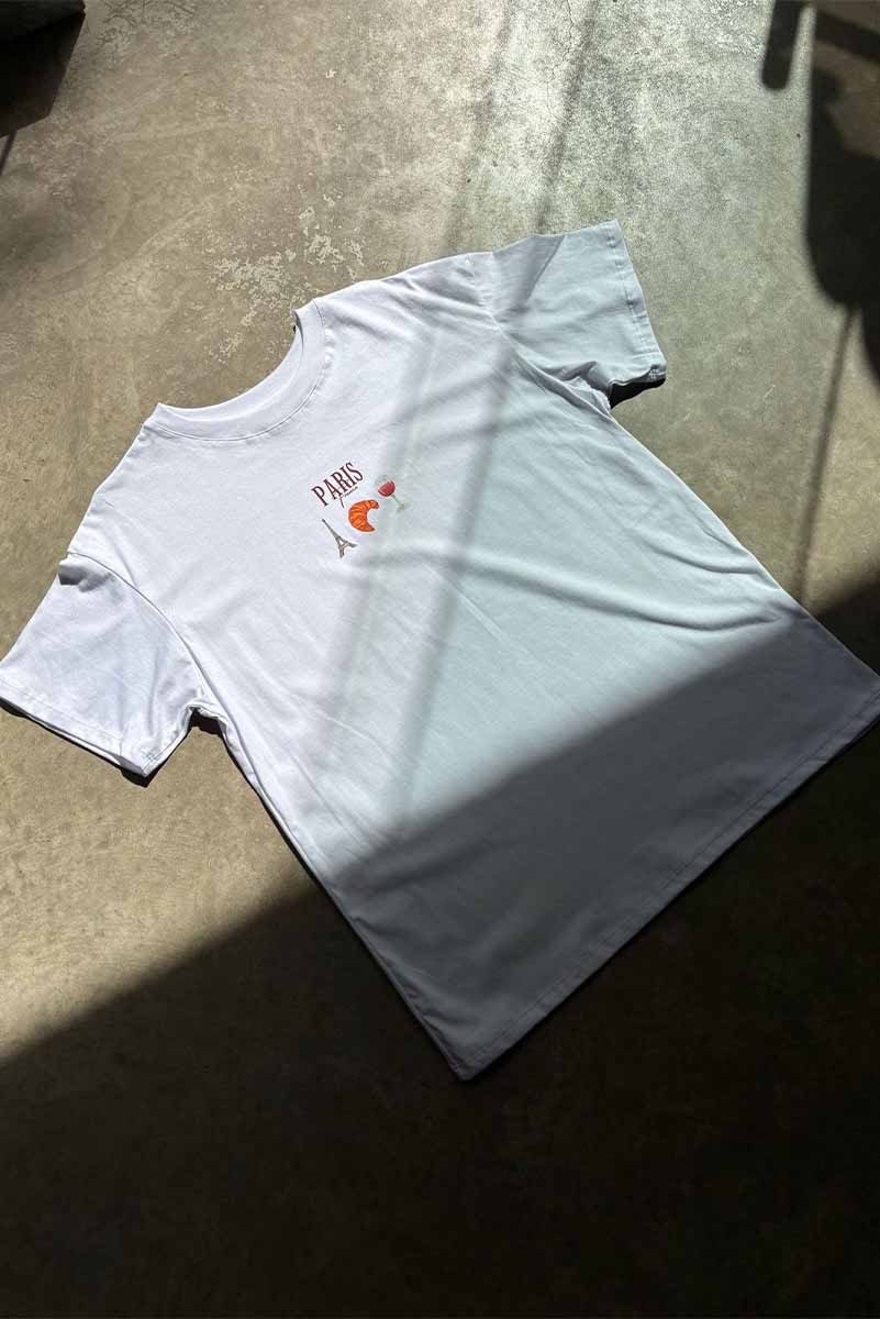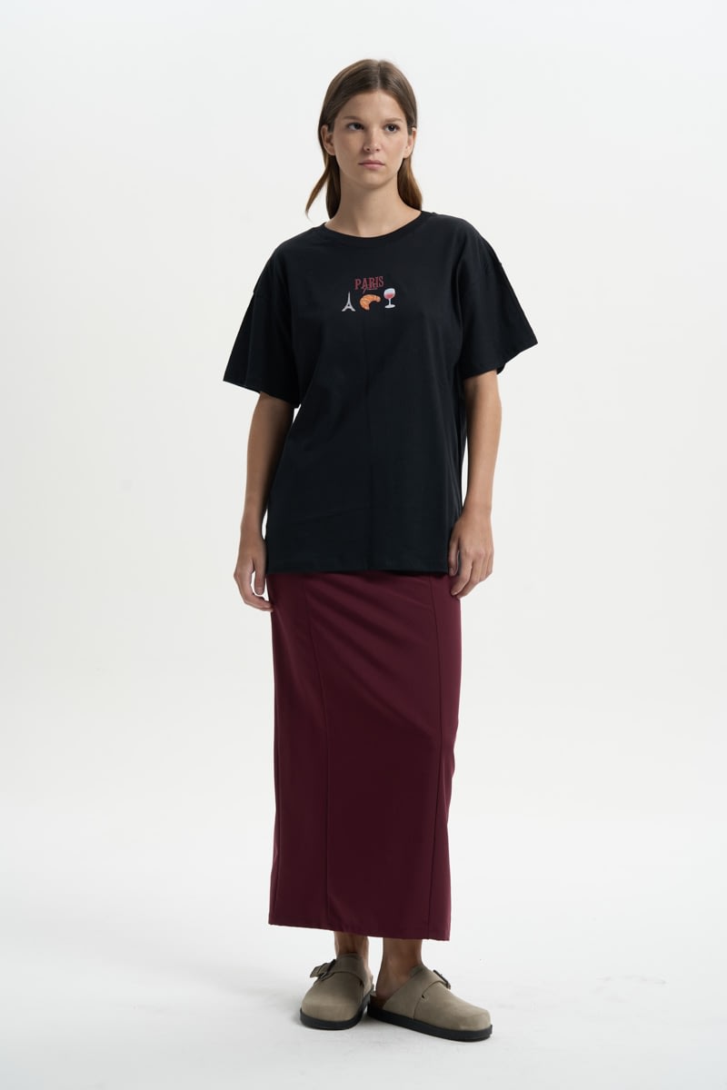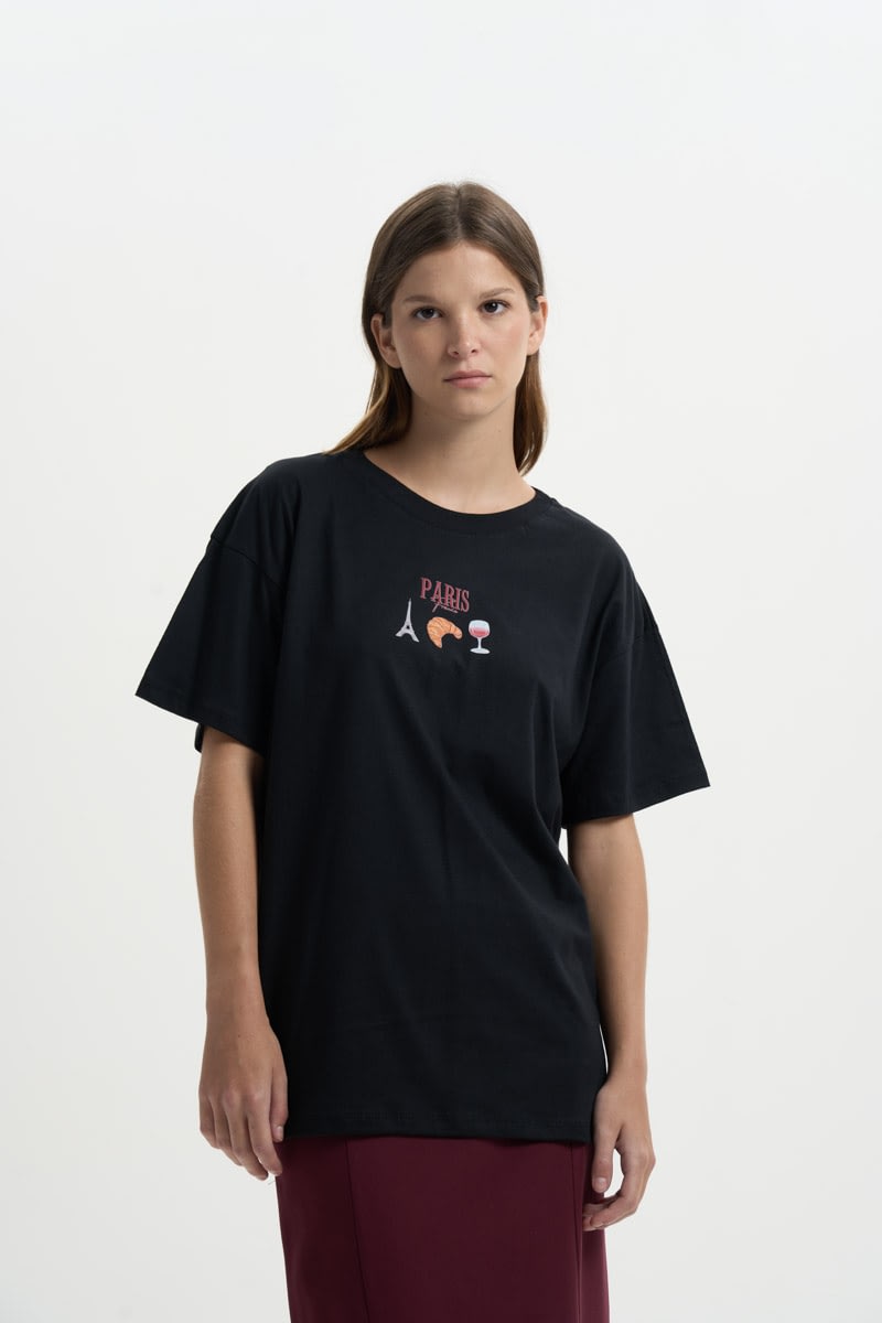 Remera ovesize de algodon con estampa chica en el centro A ELECCIÓN DEL COLOR DE ESTAMPA (VERDE O ROJO)