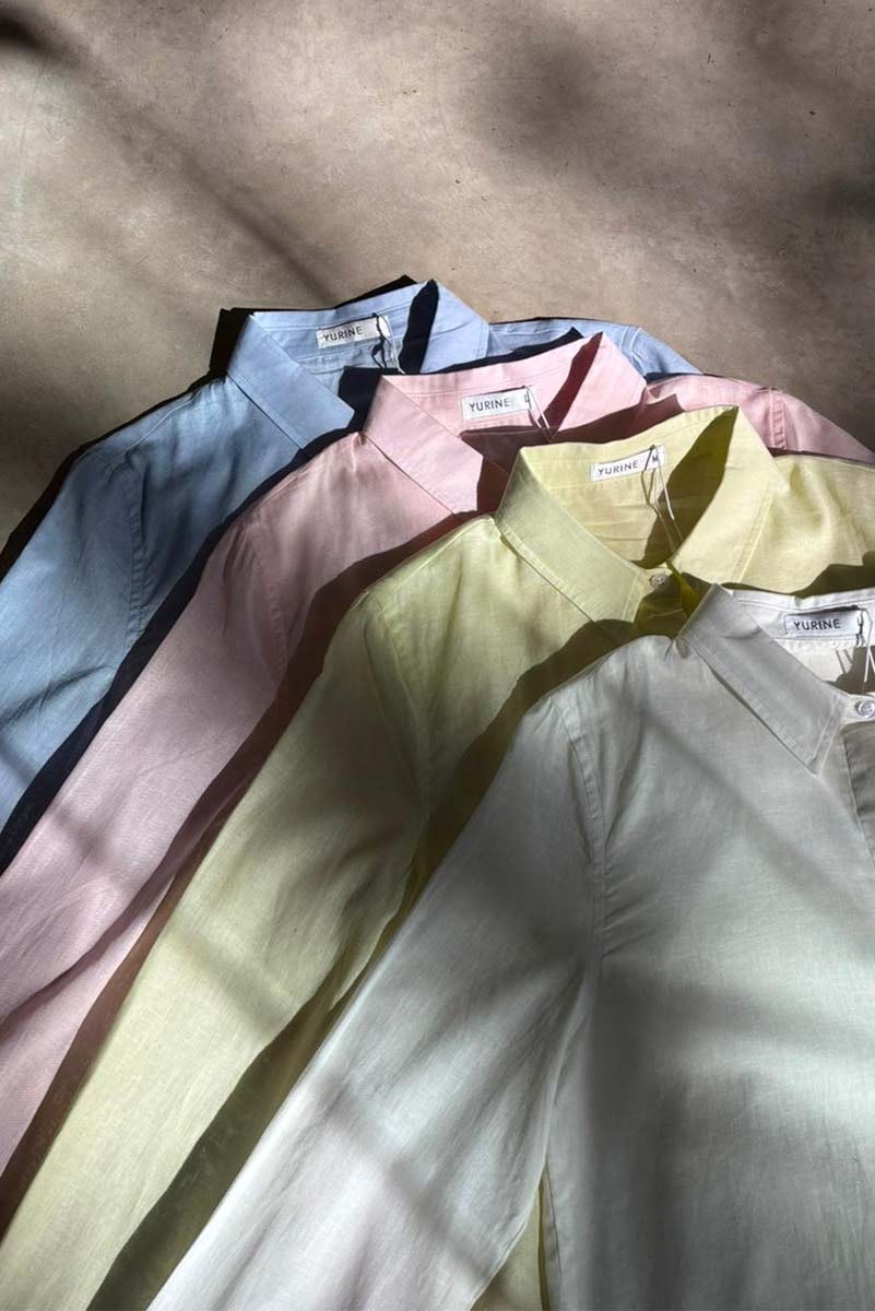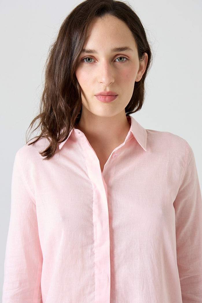 Camisa ligera confeccionada en lino (65% Algodón 35% Lino), con botones al tono y pinzado en la espalda.