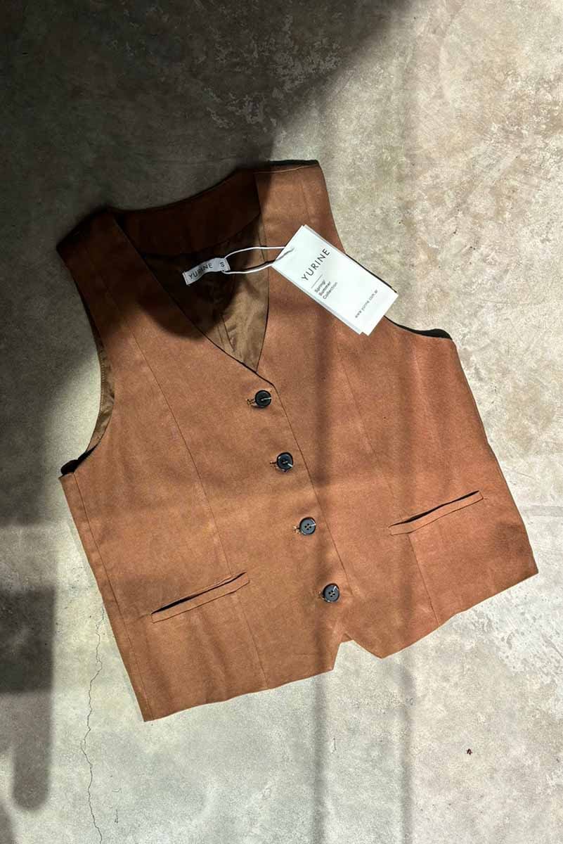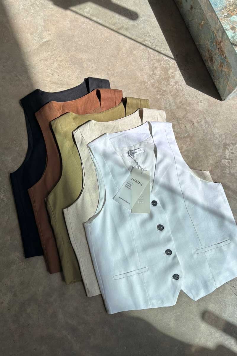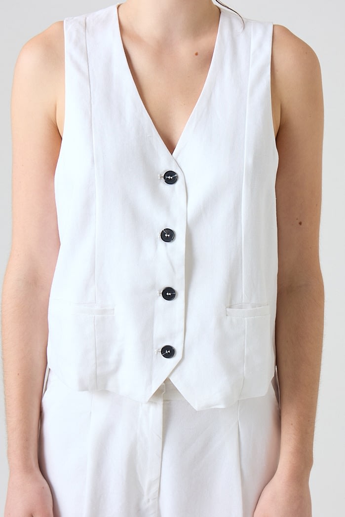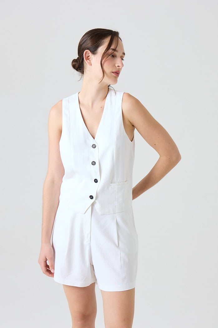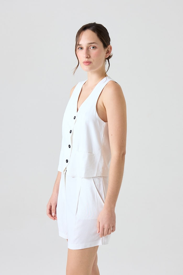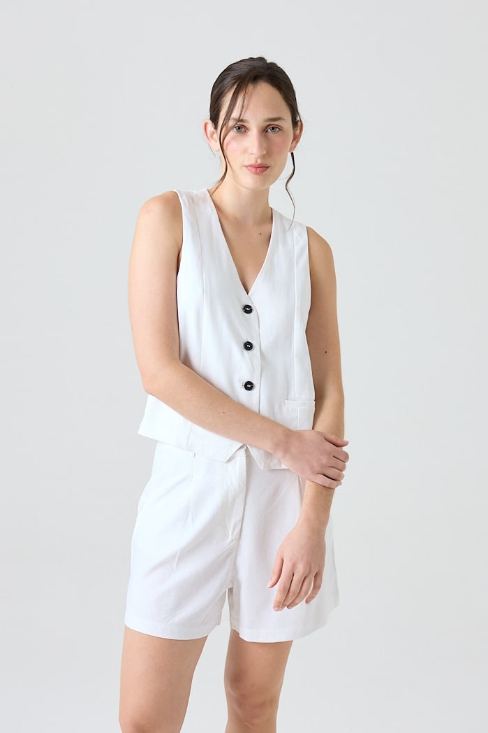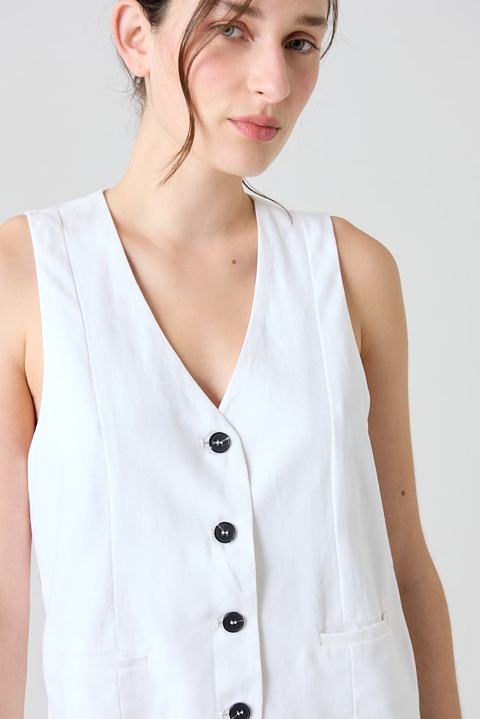 Chaleco de lino sastrero (70% Viscosa 30% Lino) forrado con botones marmolados