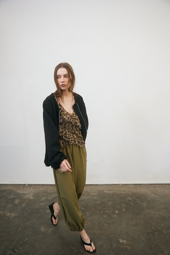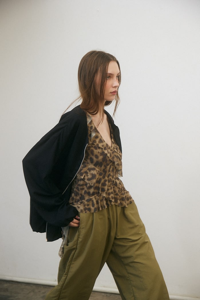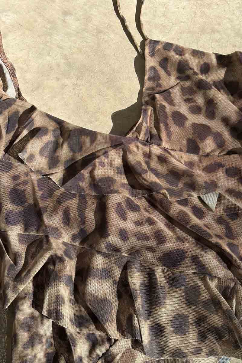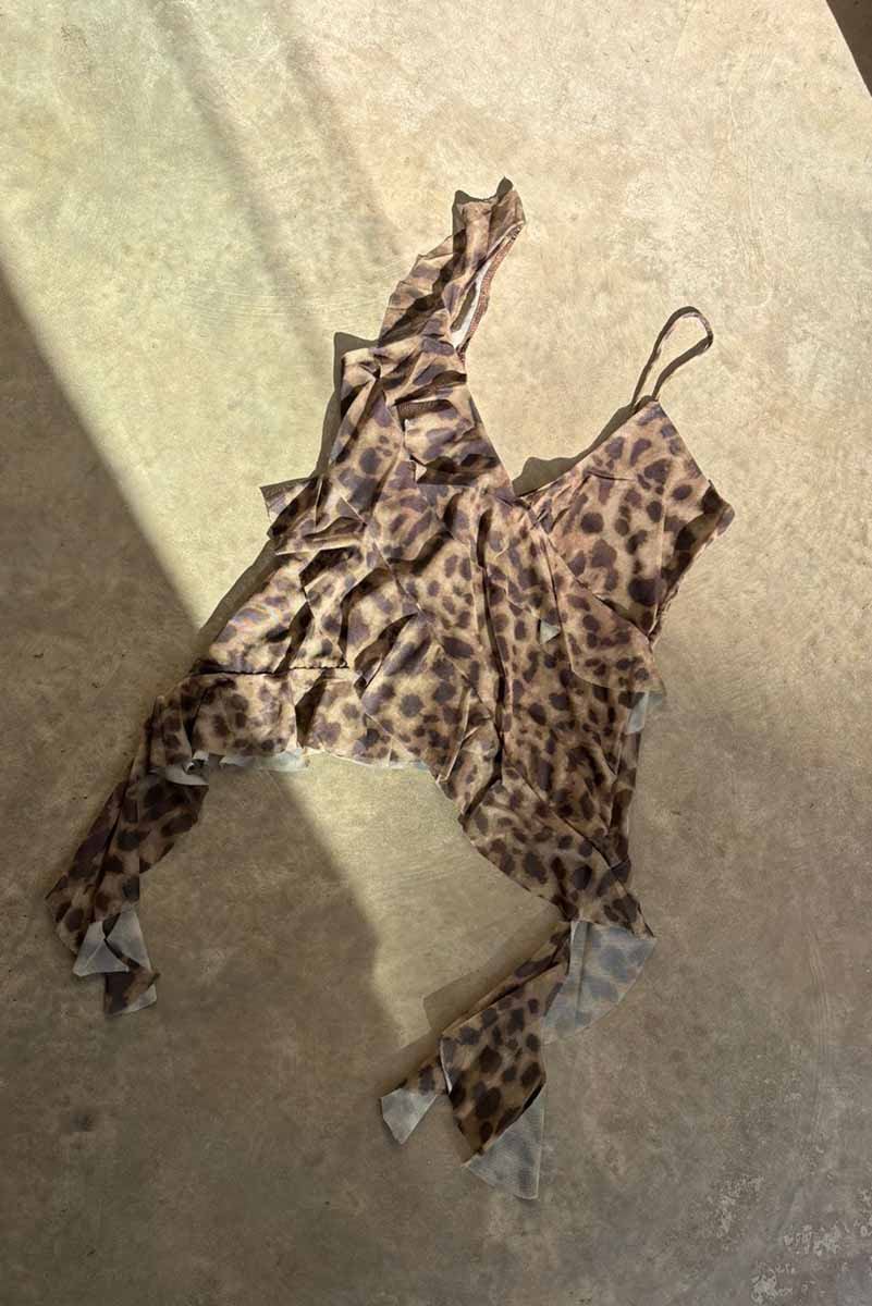 Musculosa con volado cruzado estampa animal print. Composición: 92% poliéster 8% elastano; forro: 100% poliéster