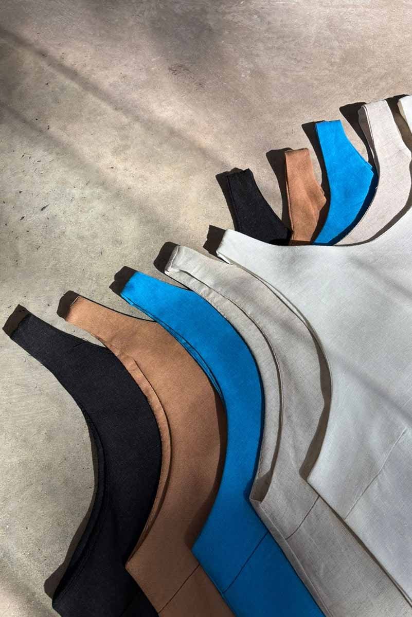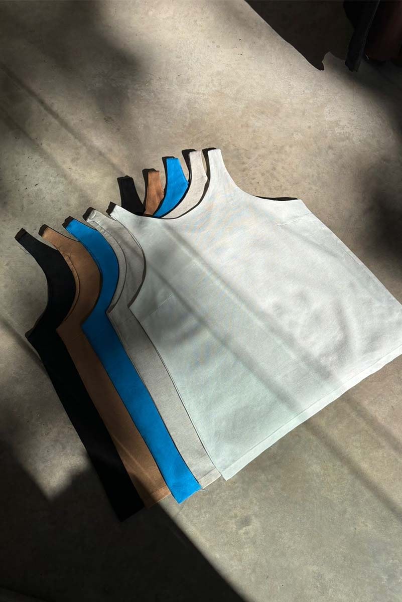 Musculosa de lino Logan (55% lino 45% viscosa), con escote V en espalda.