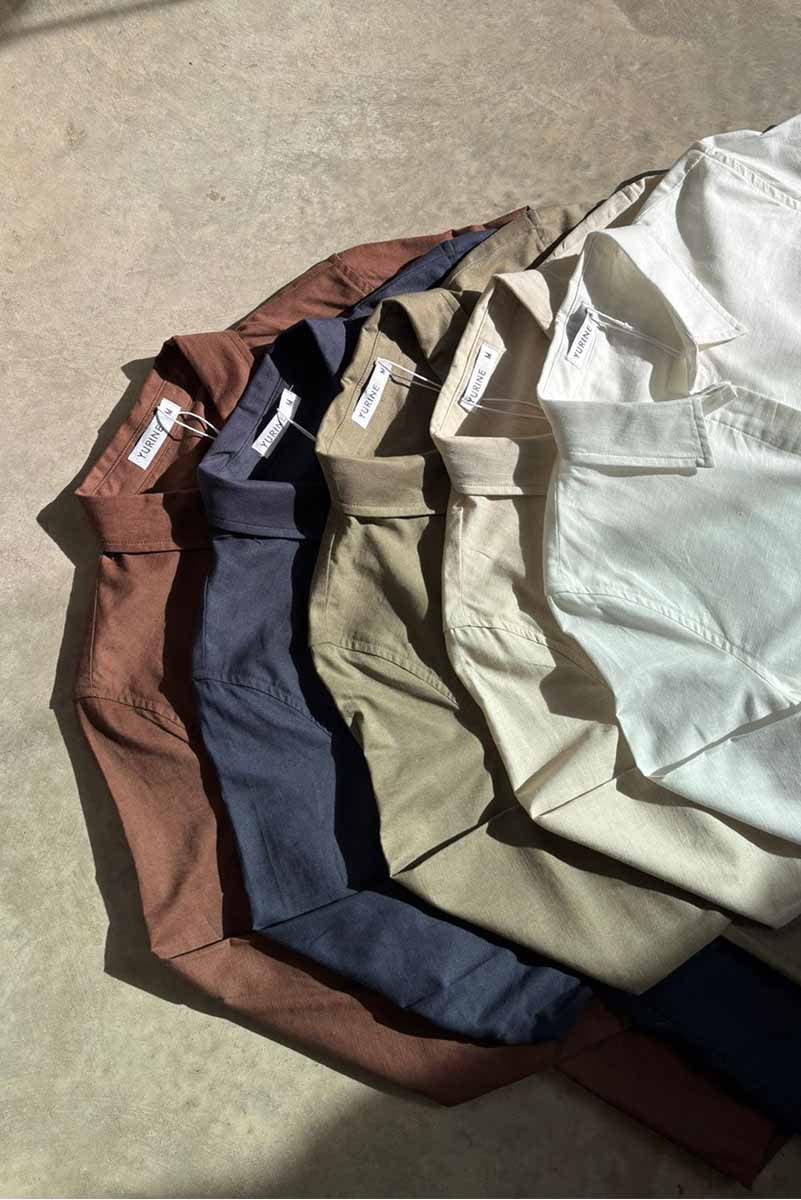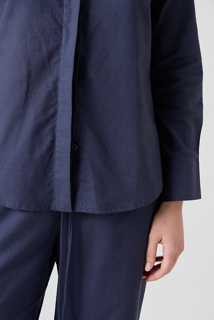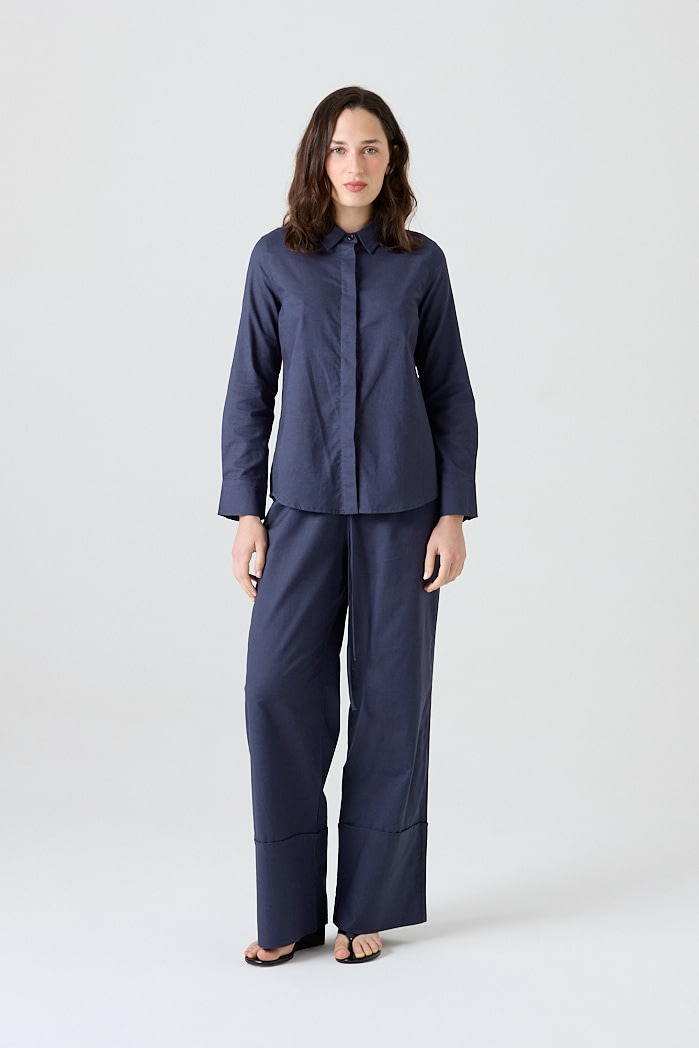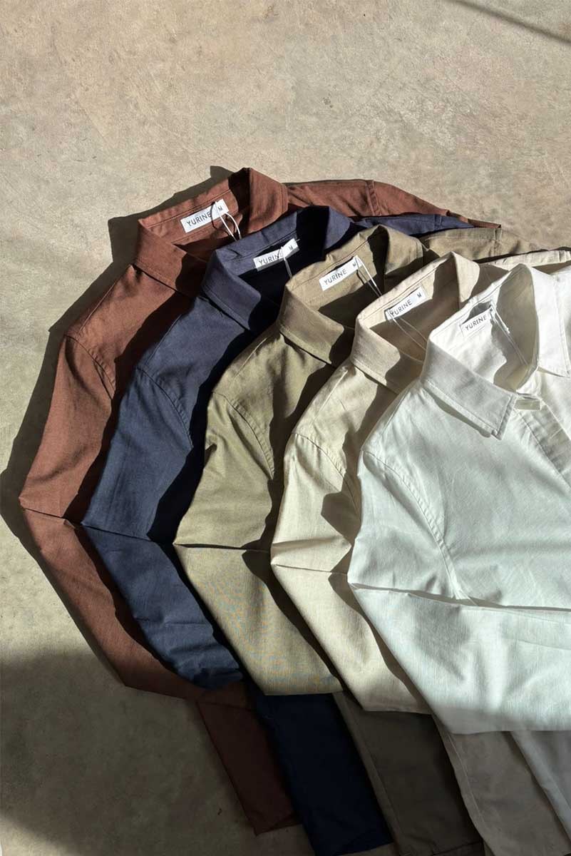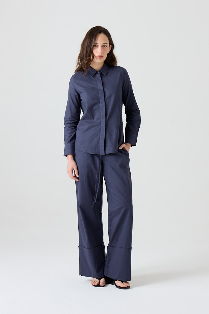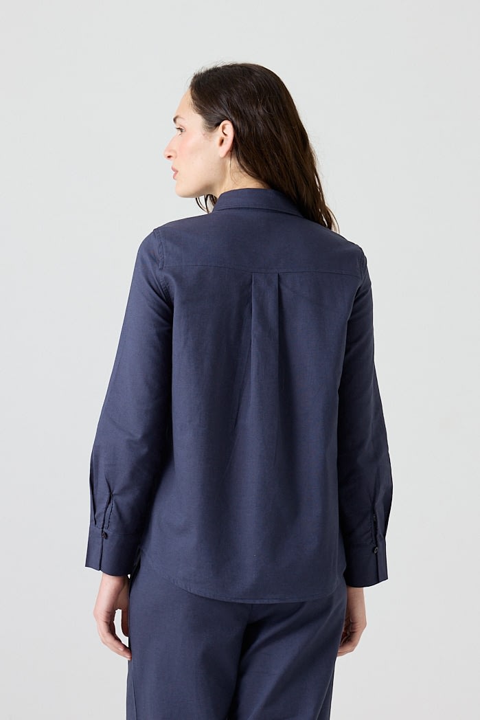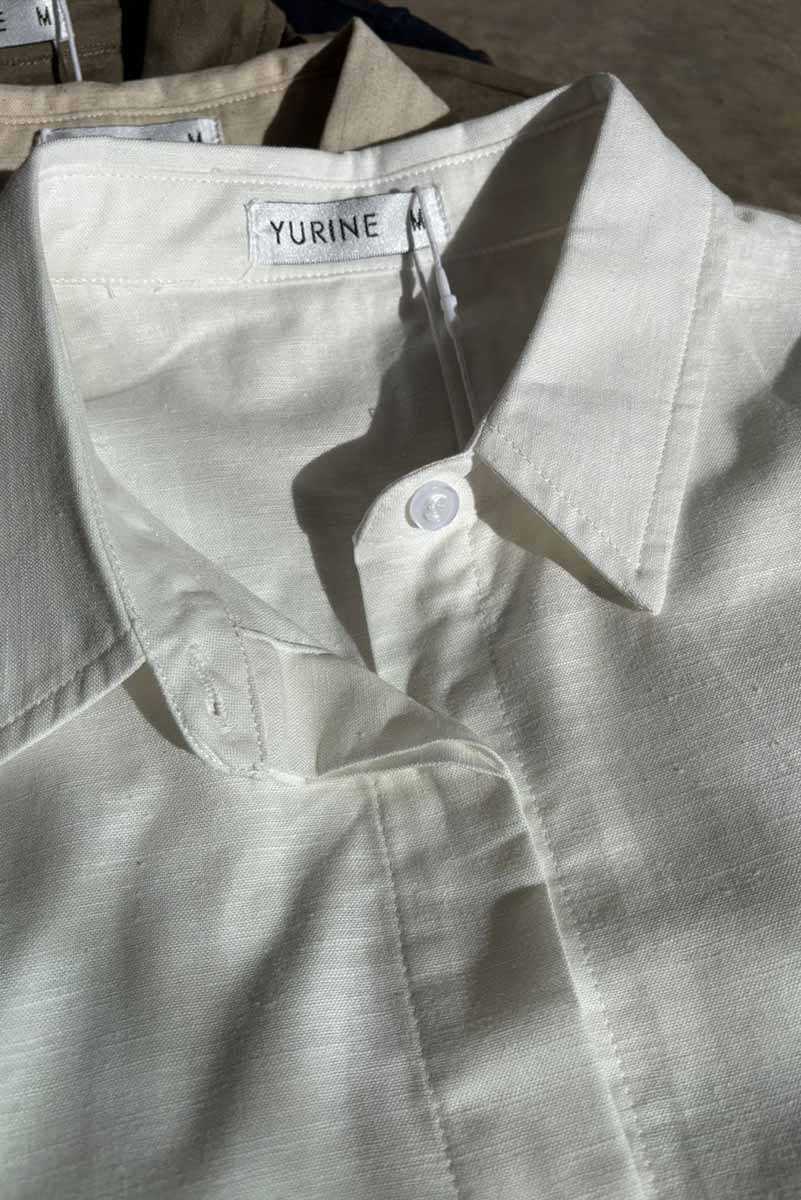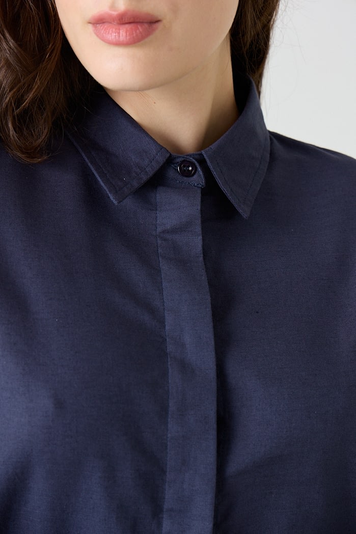 Camisa de corte recto confeccionada en 55% Algodón 45% Lino, con cuello clásico, cierre con tapeta oculta y mangas largas.