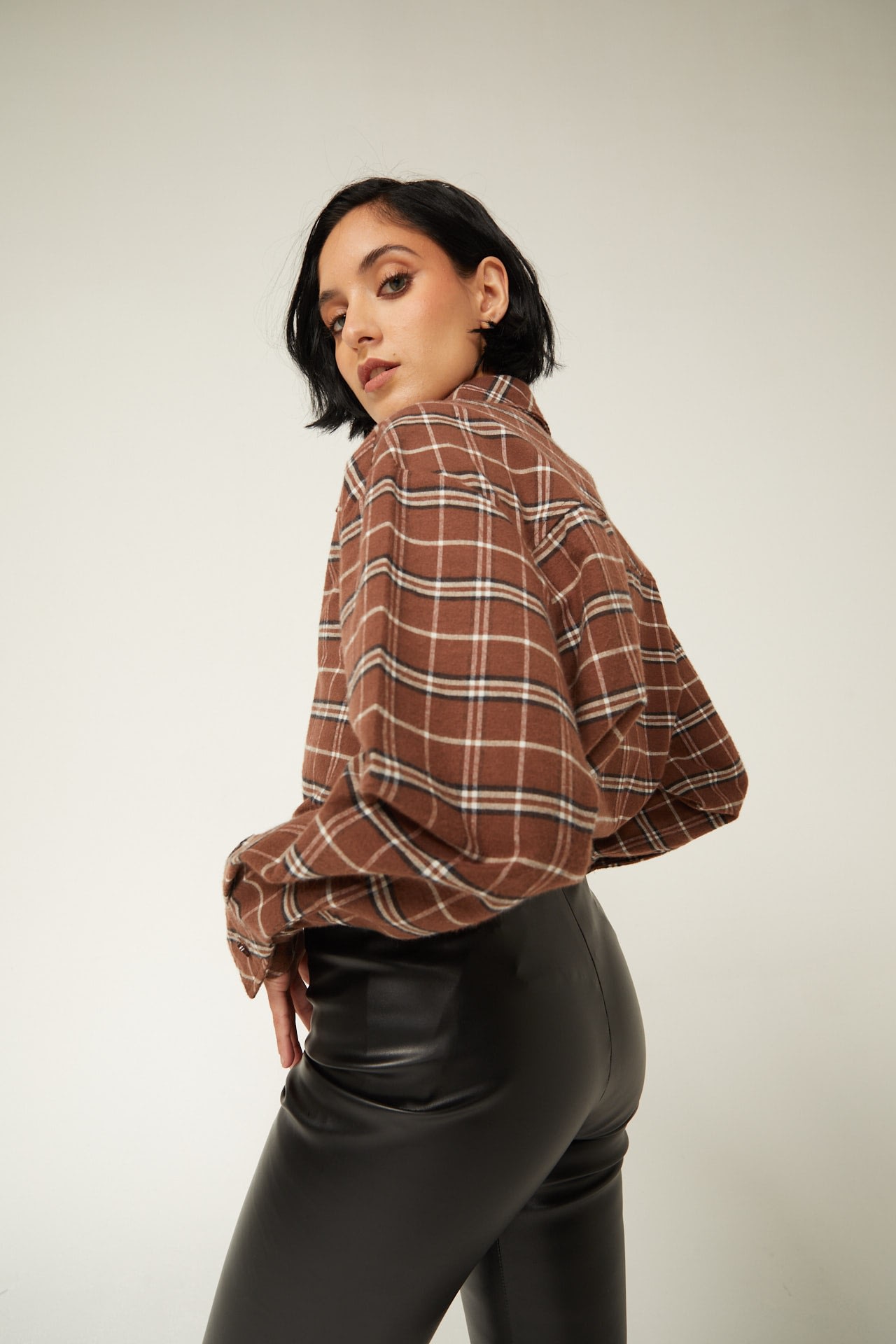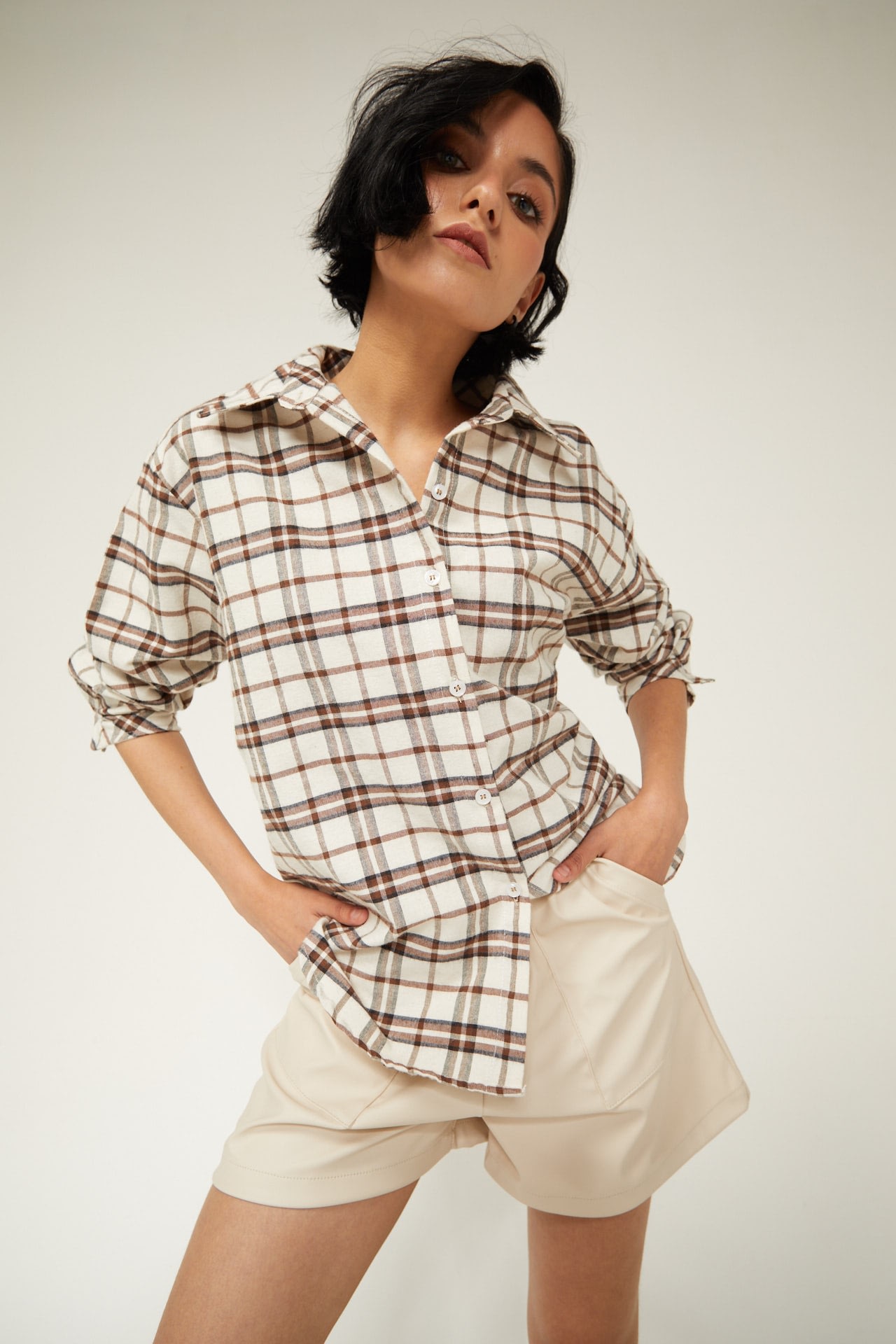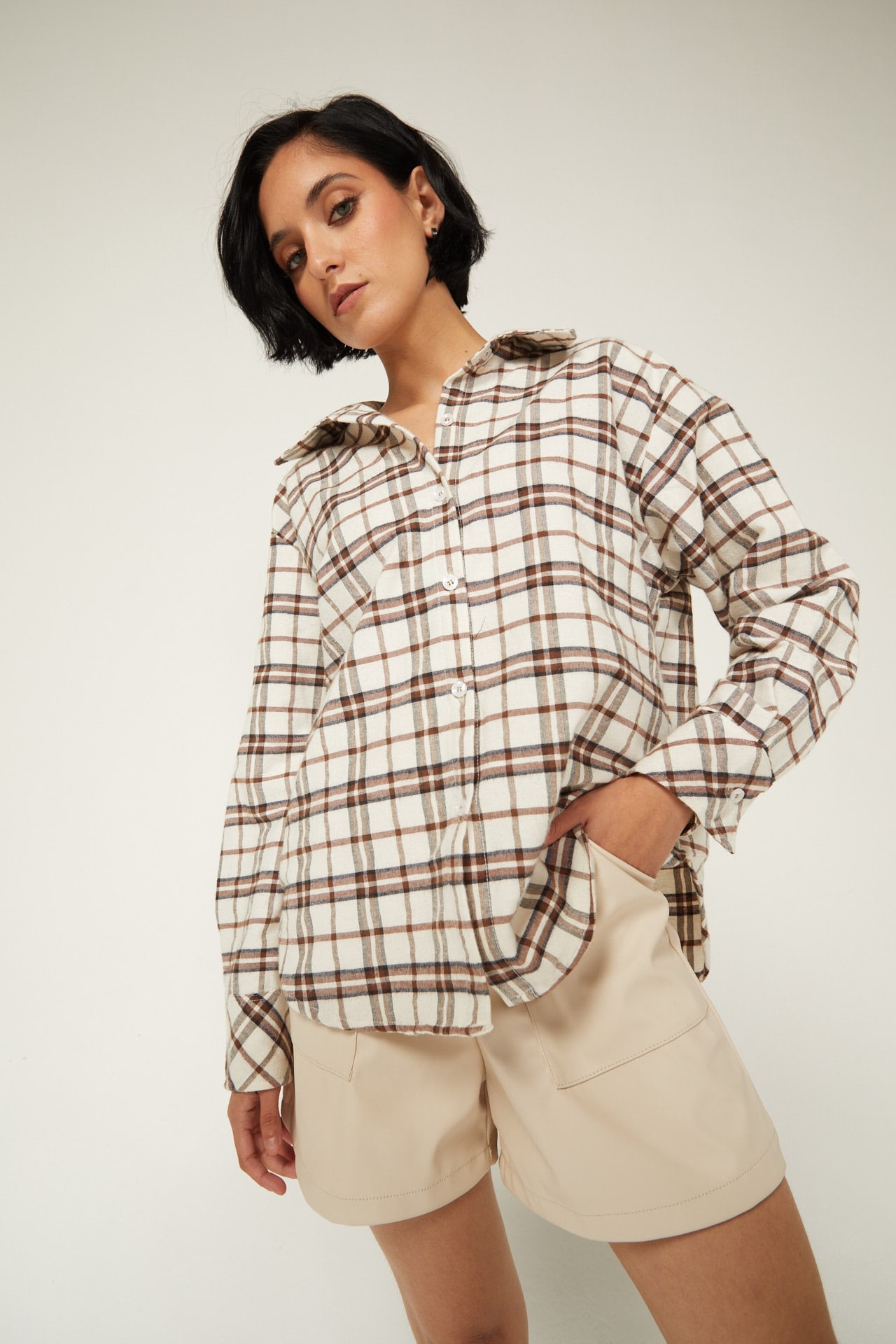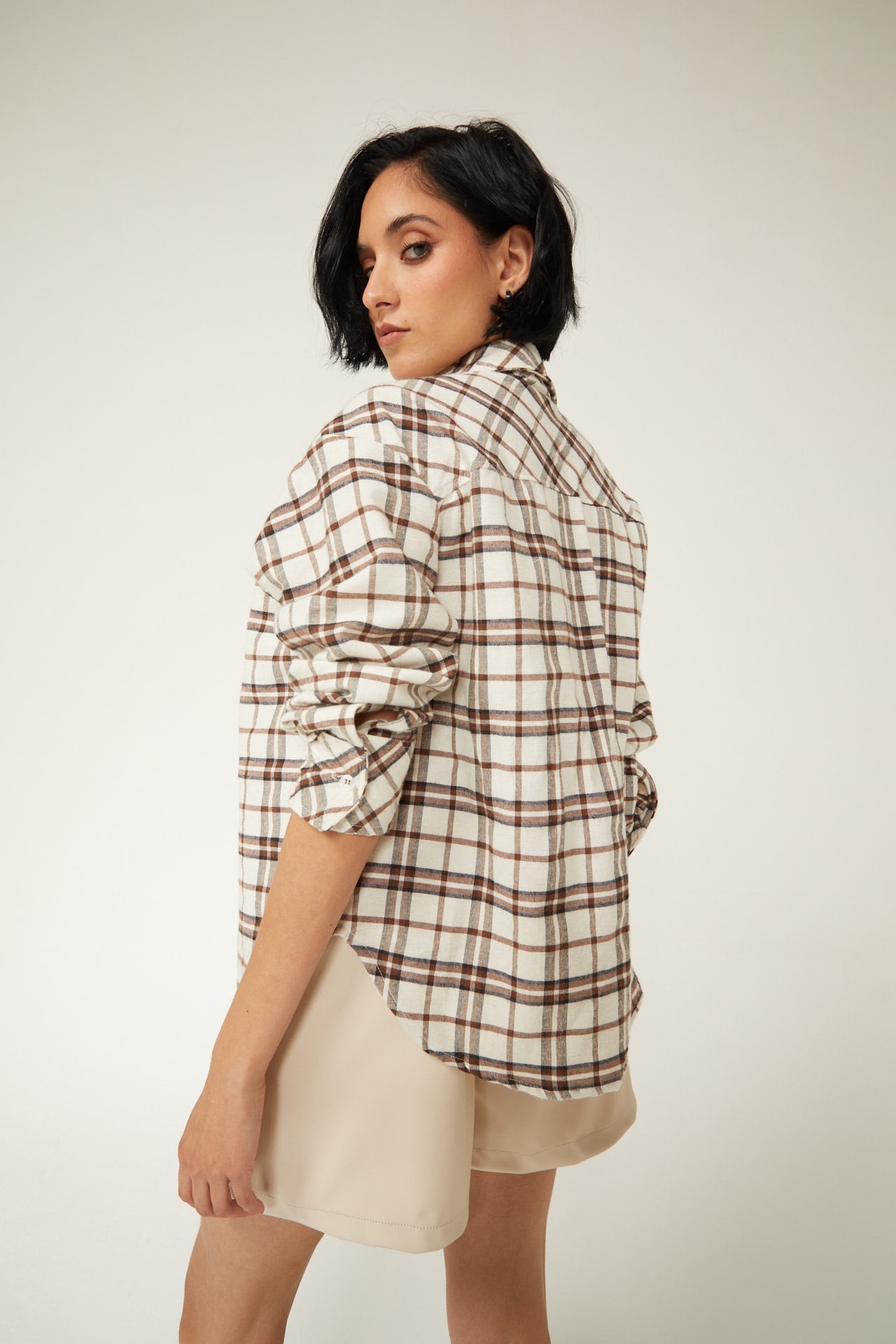 Camisa clásica de viyela cuadrillé, con botones al tono en frente y puño.