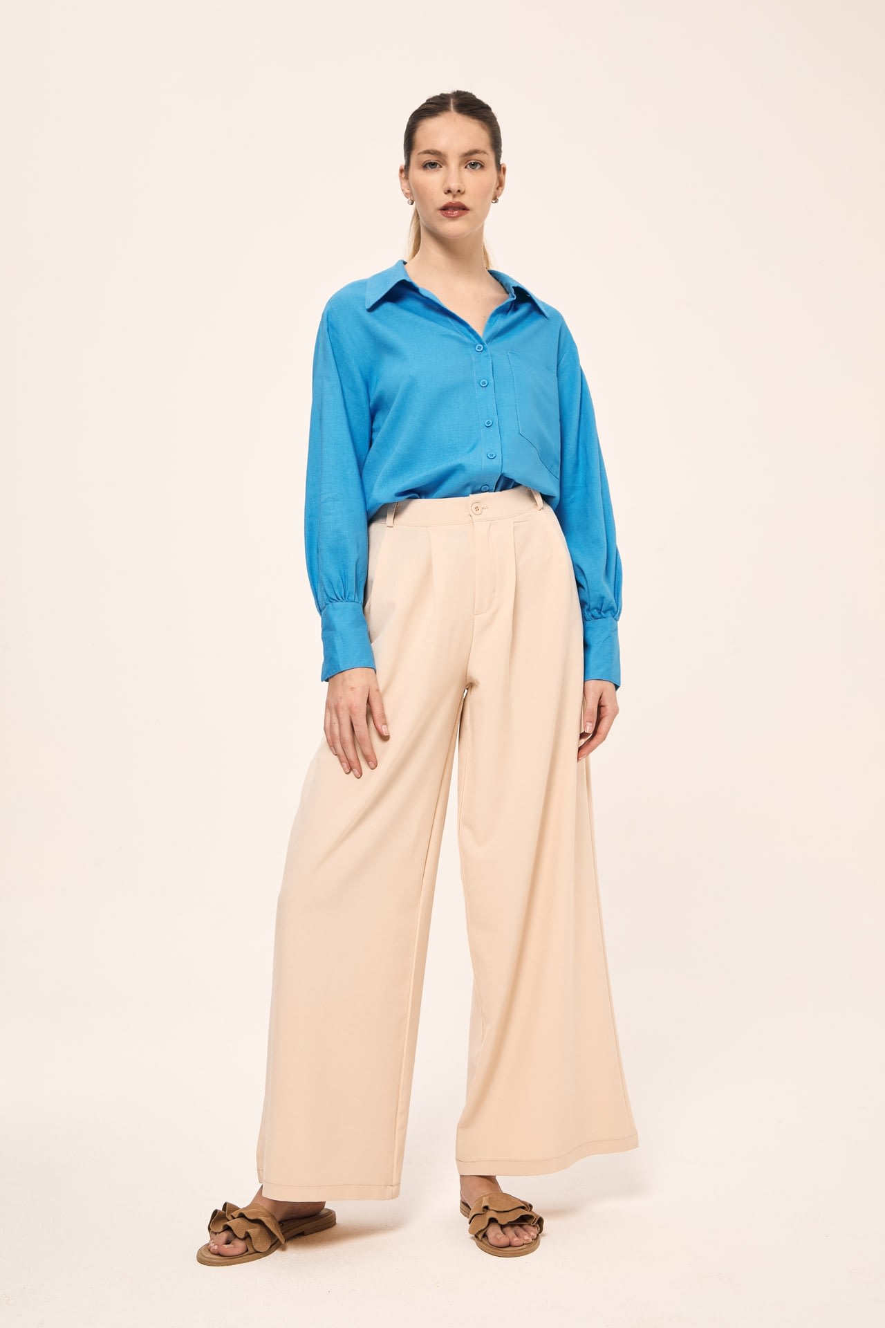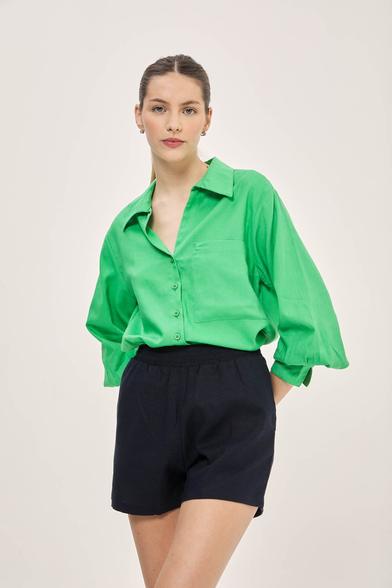Camisa de lino con mangas aglobadas y doble boton en puño. Contiene 55% de lino real y 45% de viscosa.
