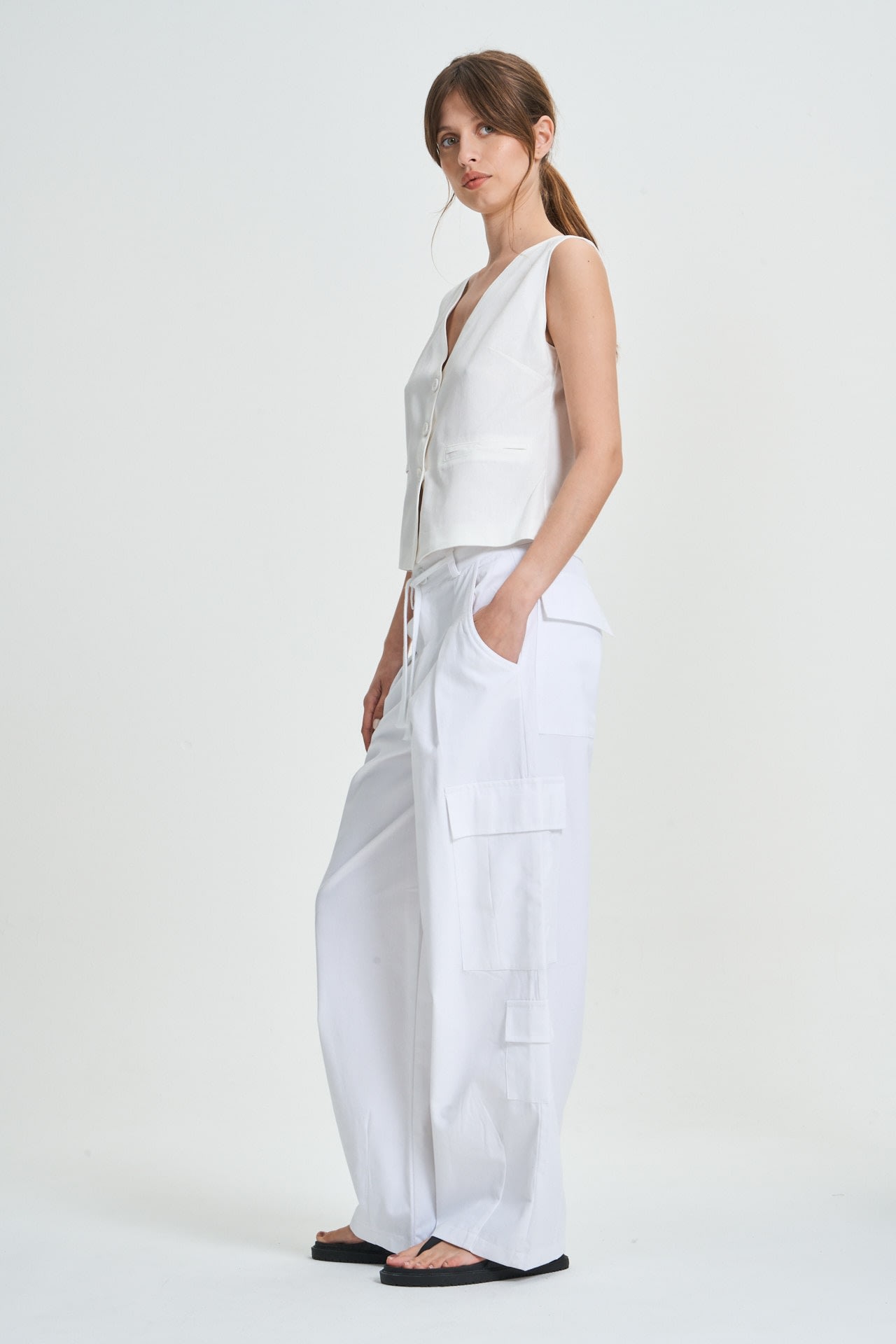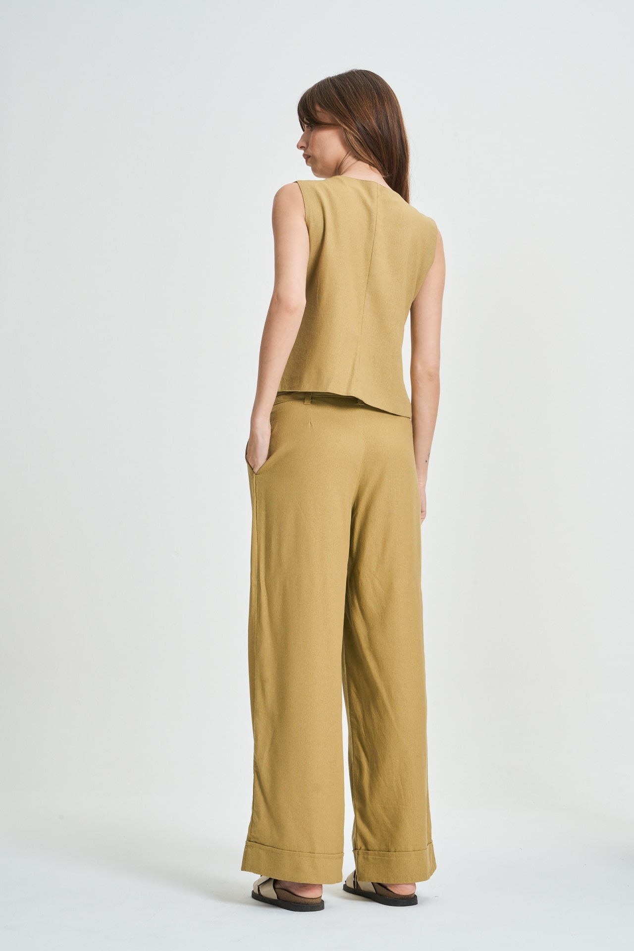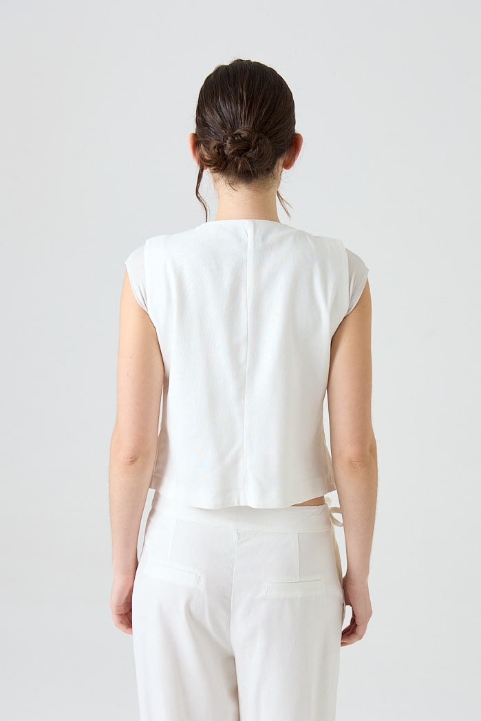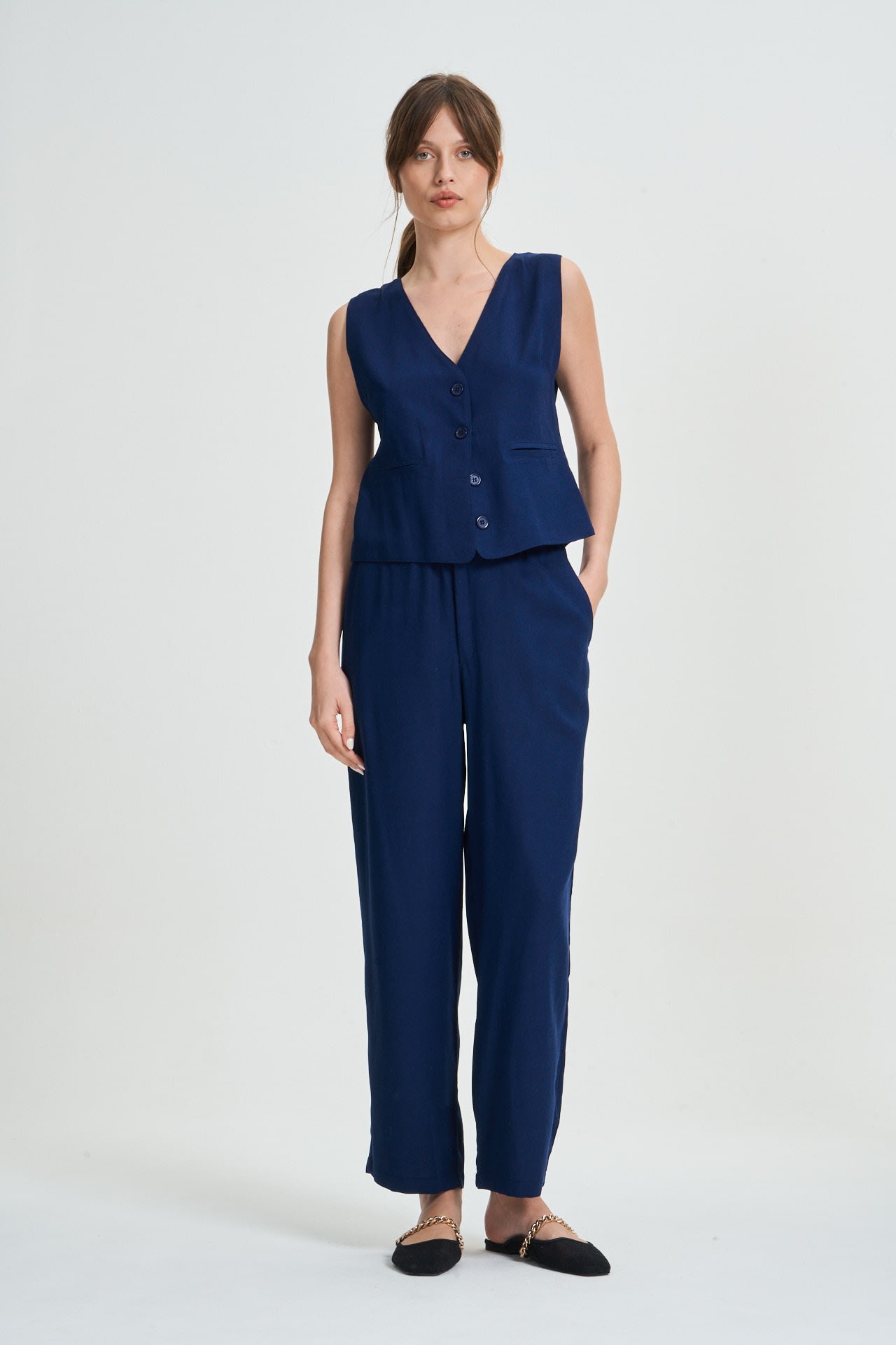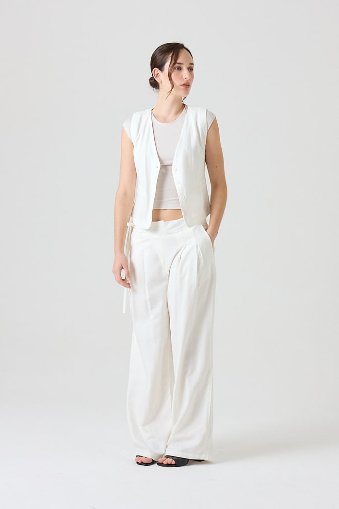 Chaleco de lino SIN FORRAR modelo corto y entallado. Con bolsillos falsos.