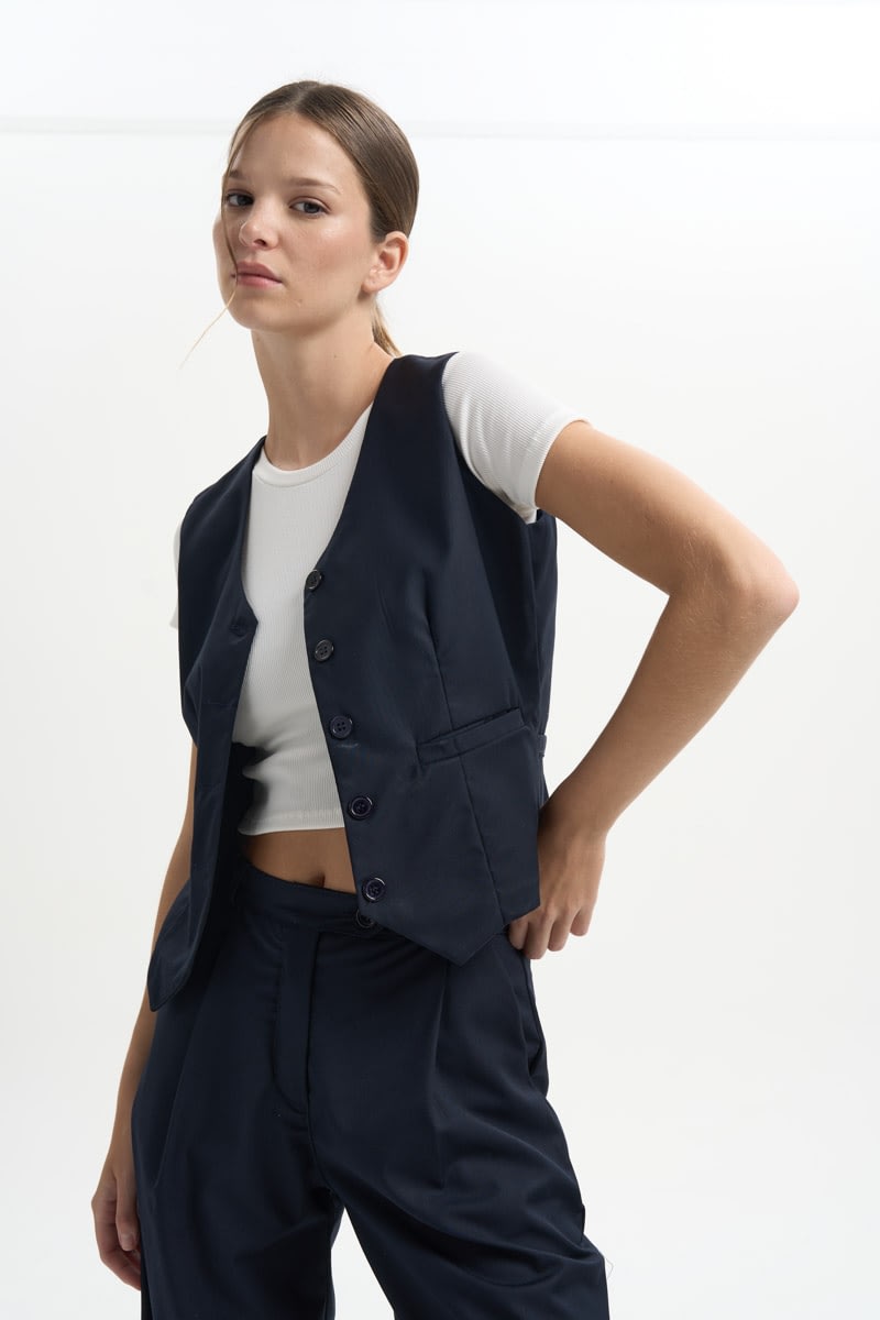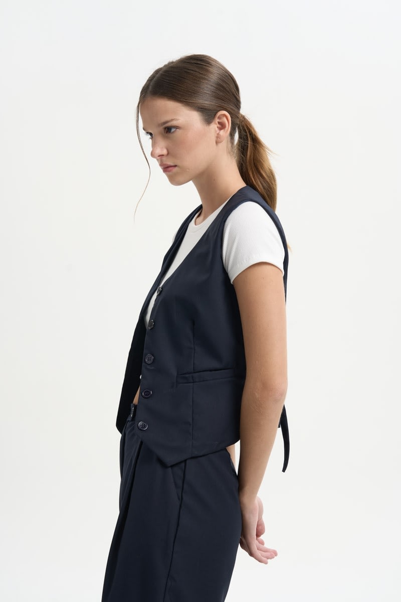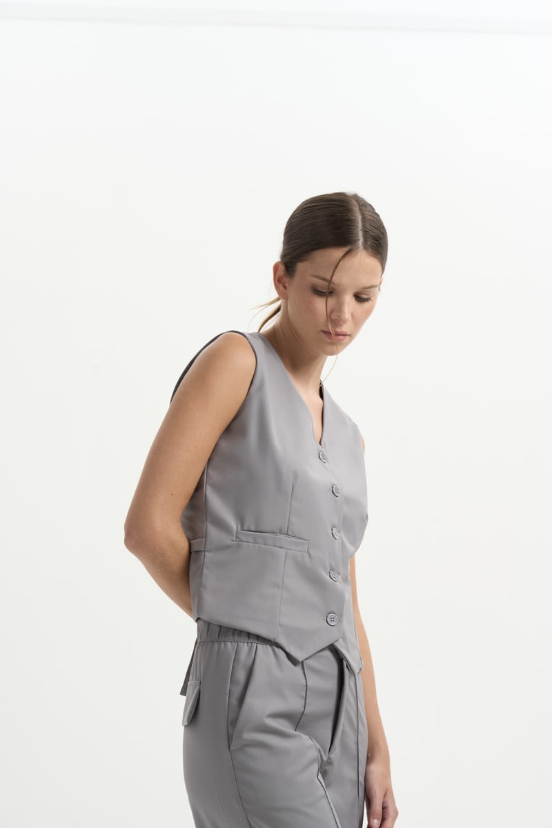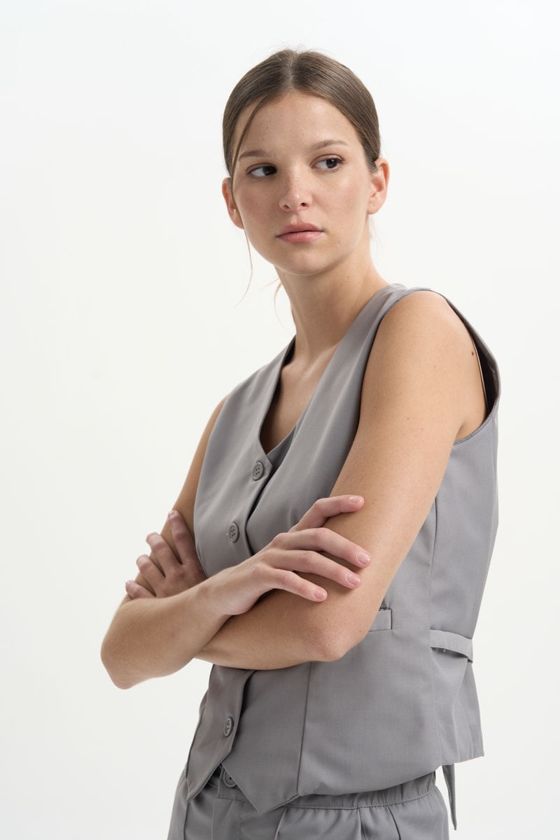 Chaleco entallado con hebilla en la parte trasera