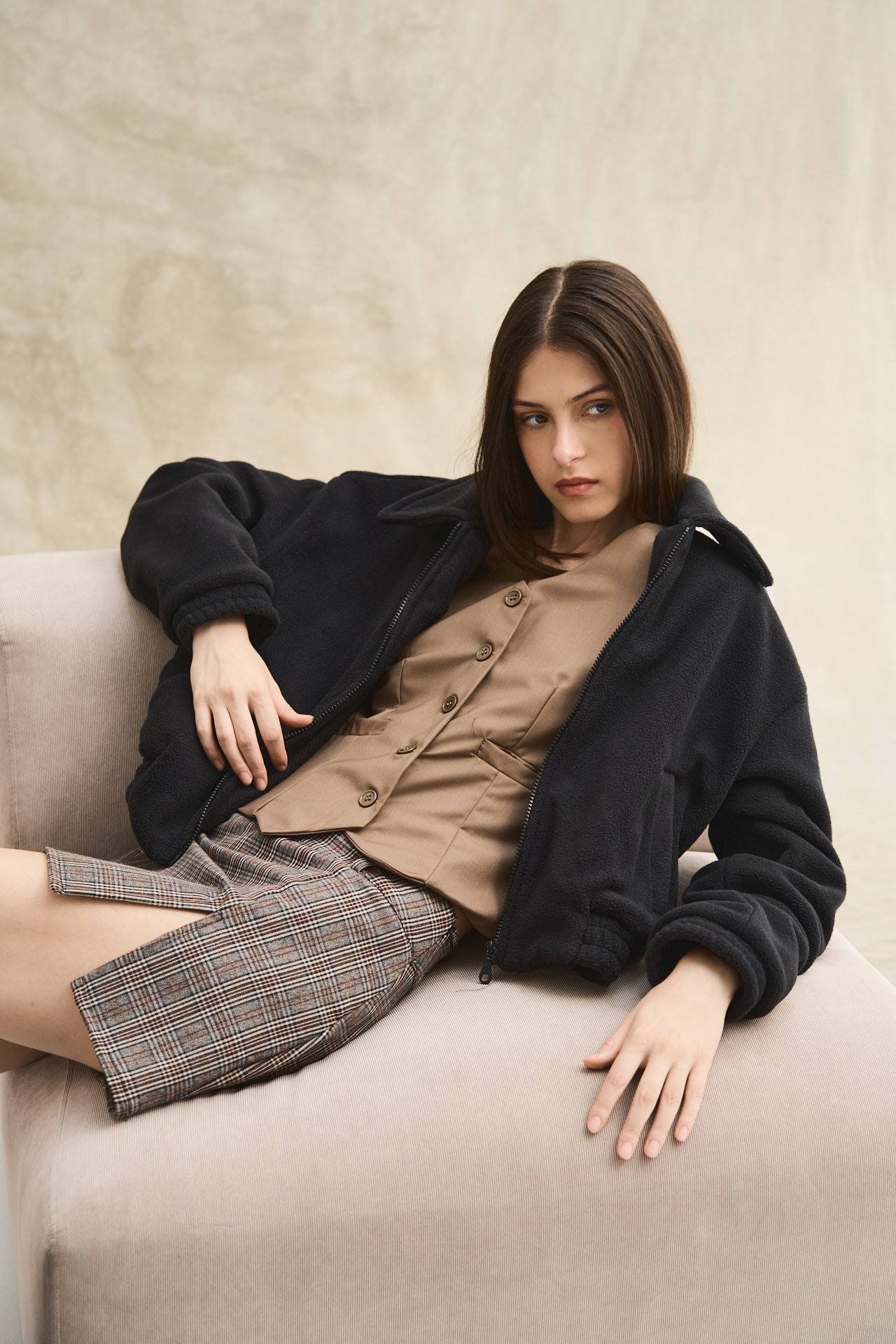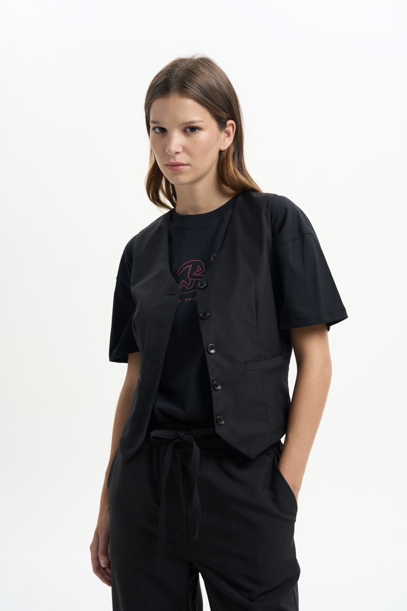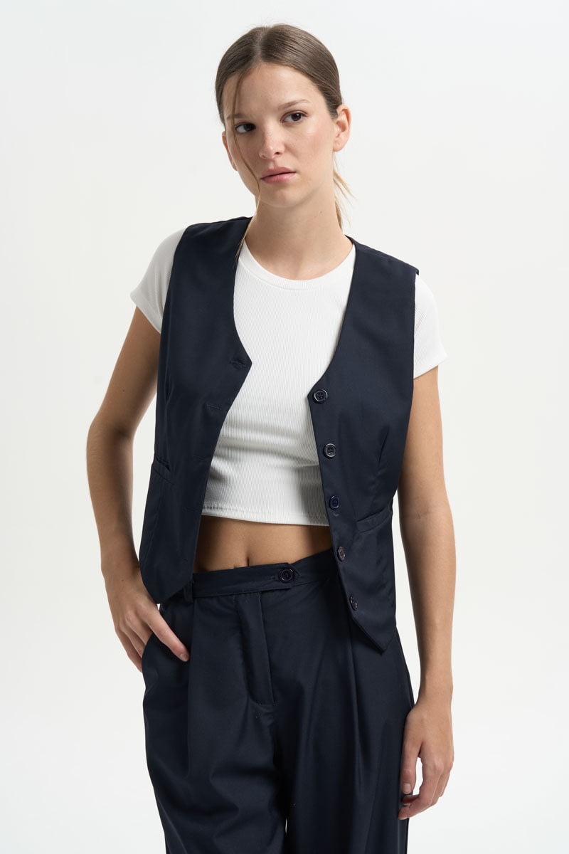 Chaleco entallado con hebilla en la parte trasera