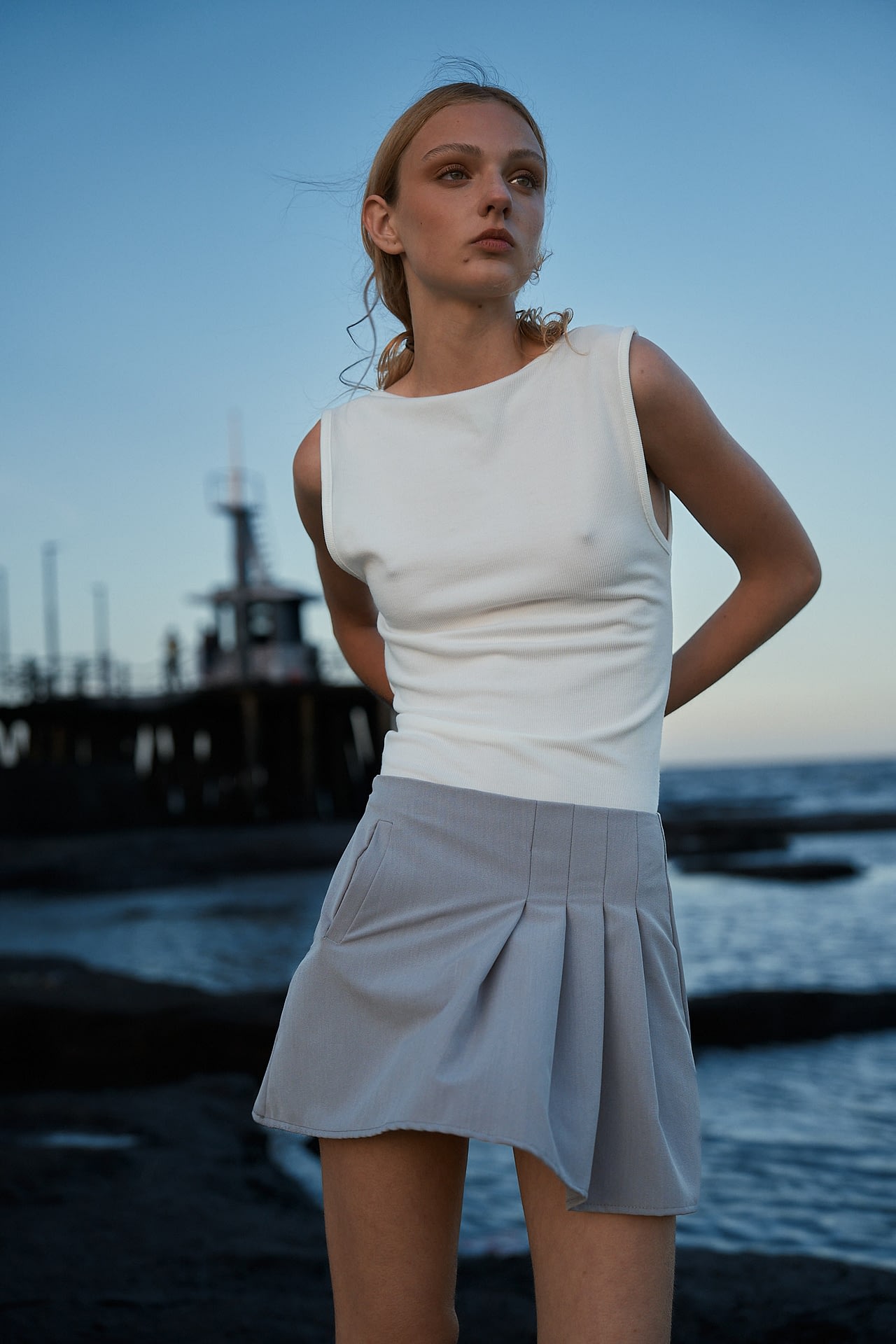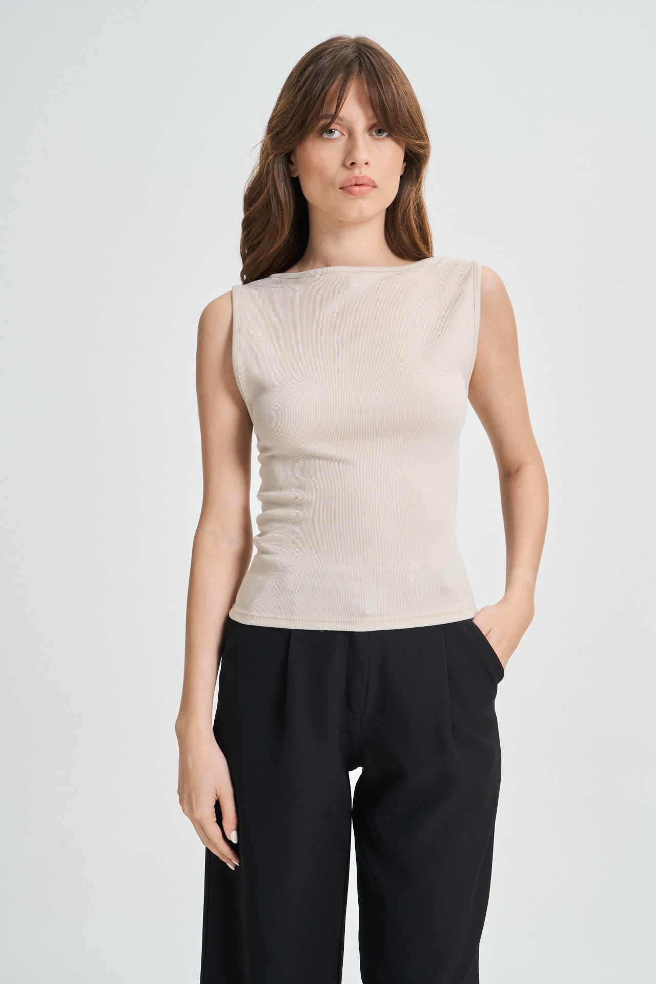 Confeccionada en morley, presenta un escote recto al frente y profundo en la espalda, aportando un toque elegante y moderno. Sus tirantes anchos brindan sujeción y comodidad, mientras que las terminaciones prolijas realzan su calidad