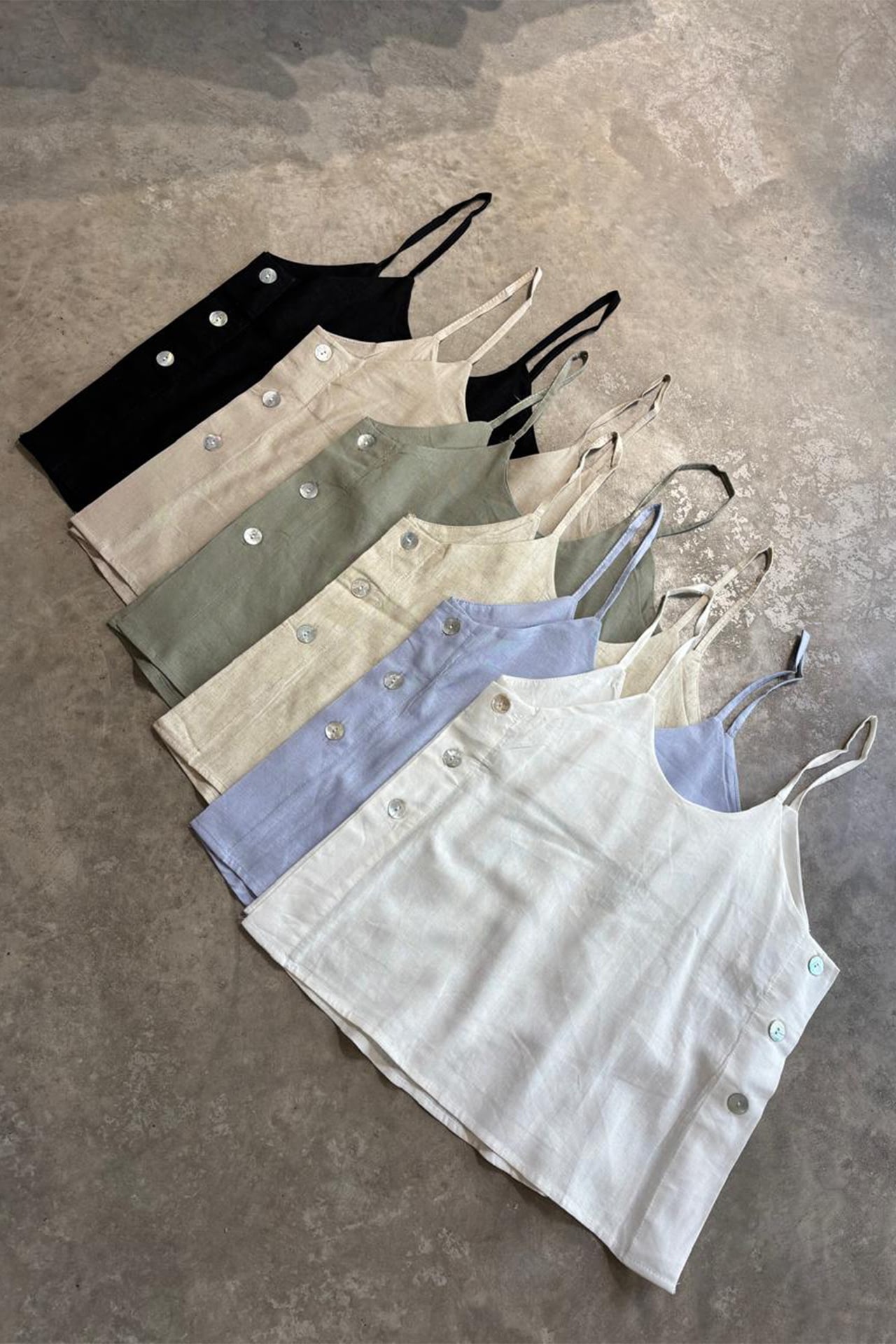Musculosa de lino italiano con botones nacarados en los laterales