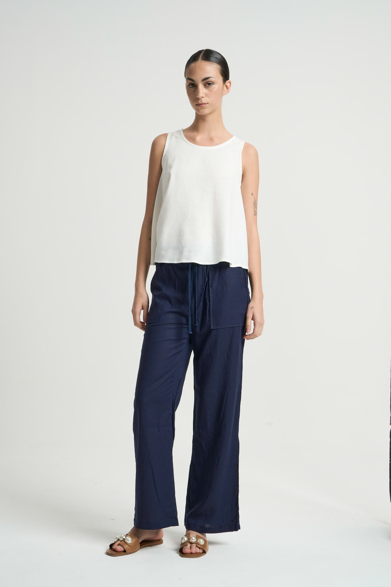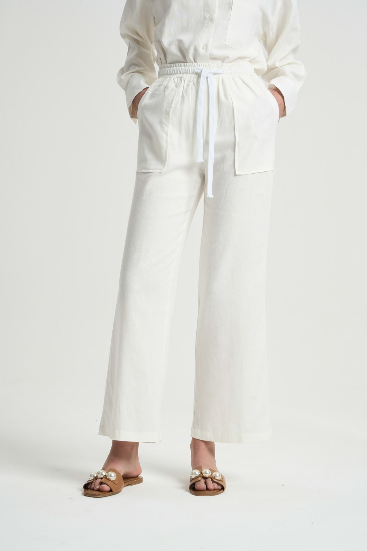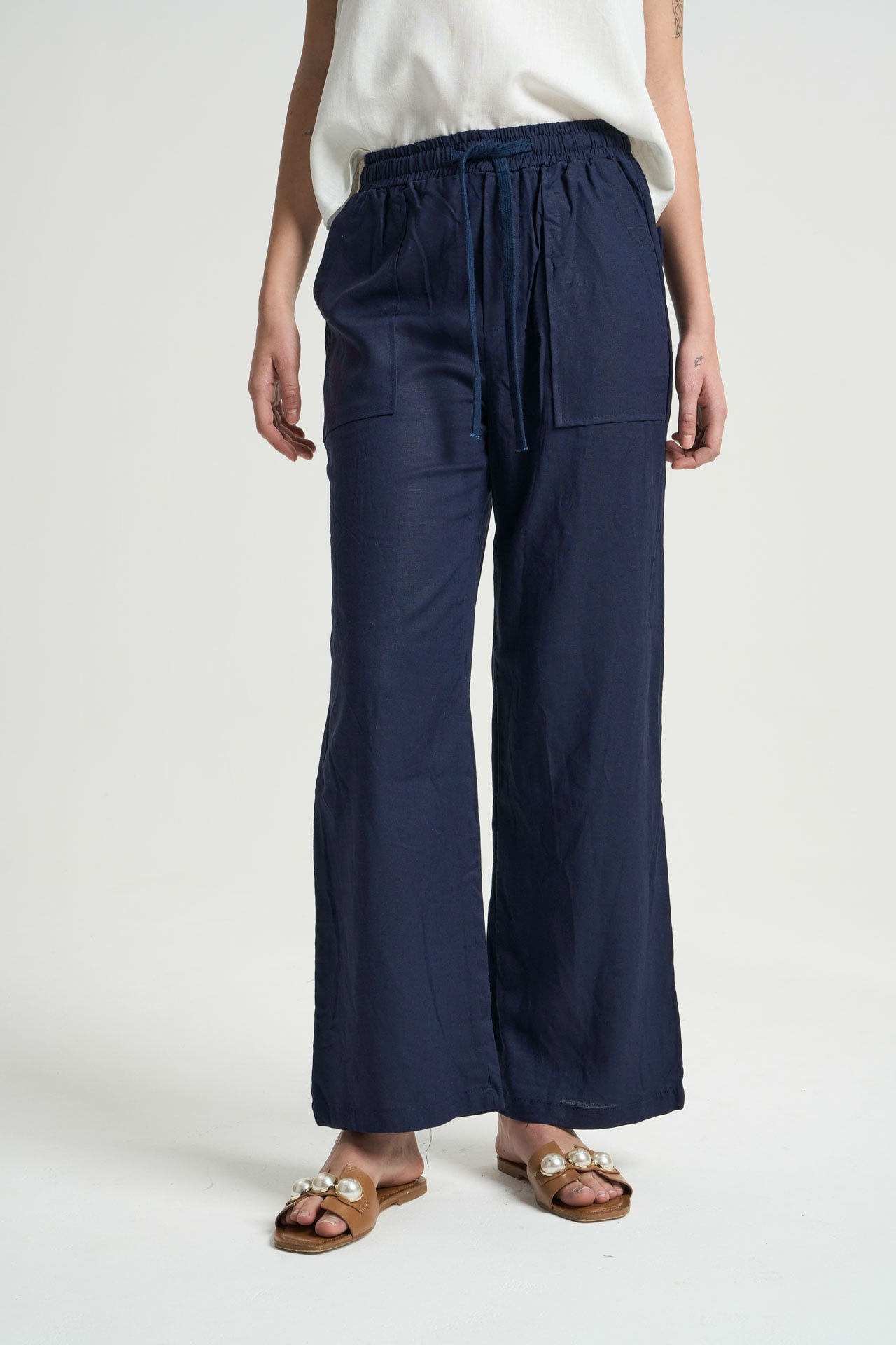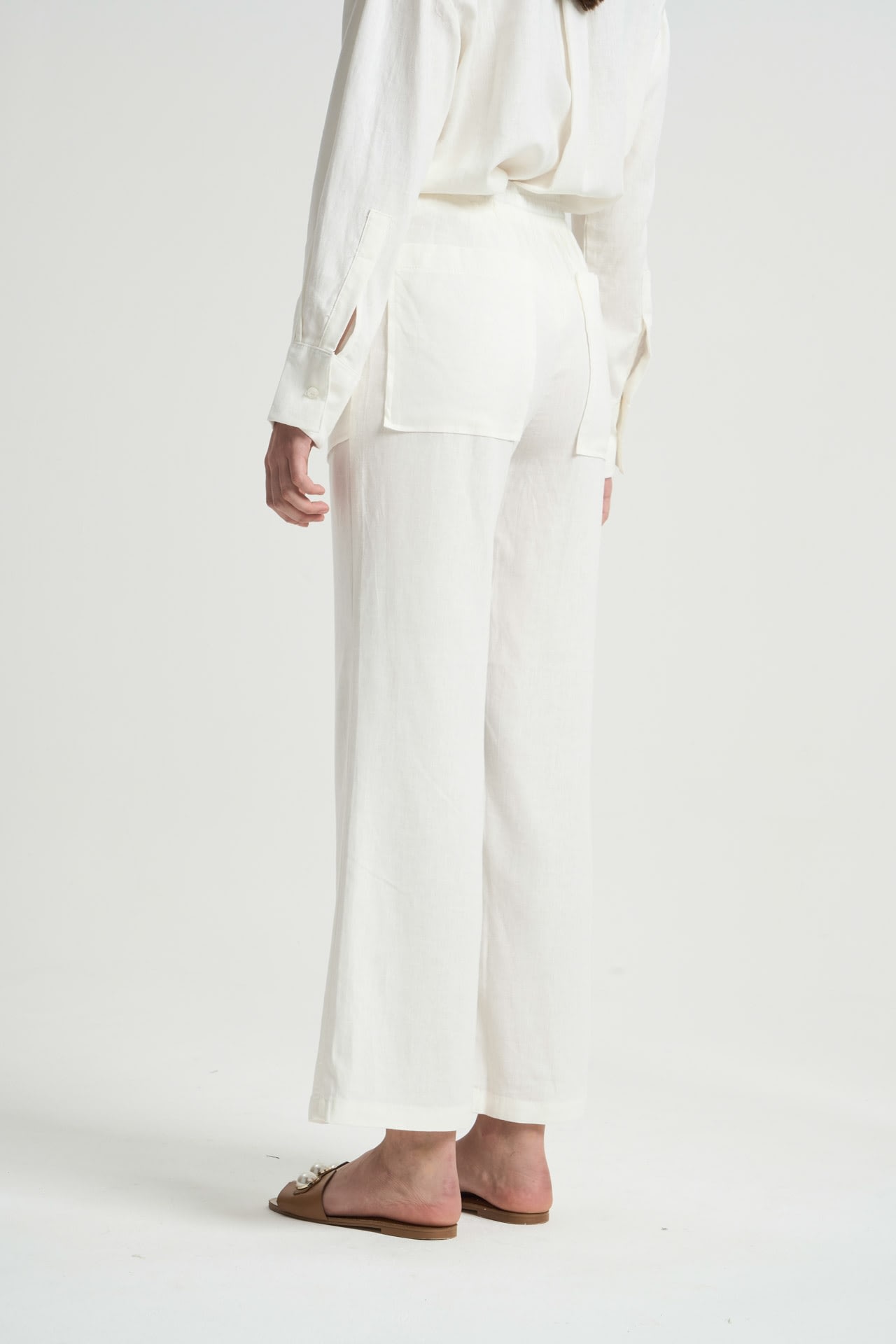 Pantalon de lino sastrero con elástico en la cintura, cordón ajustable y bolsillos en los laterales