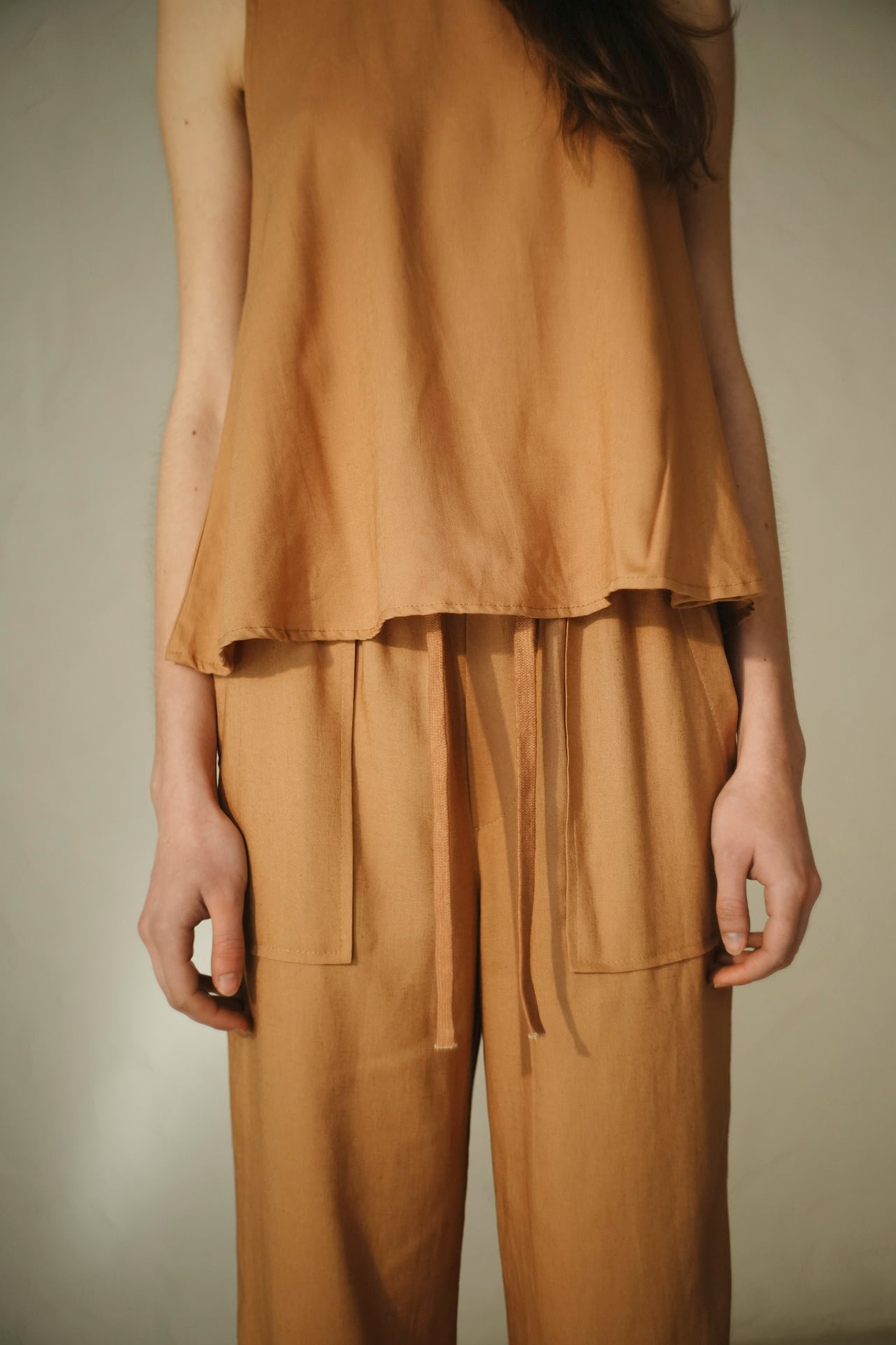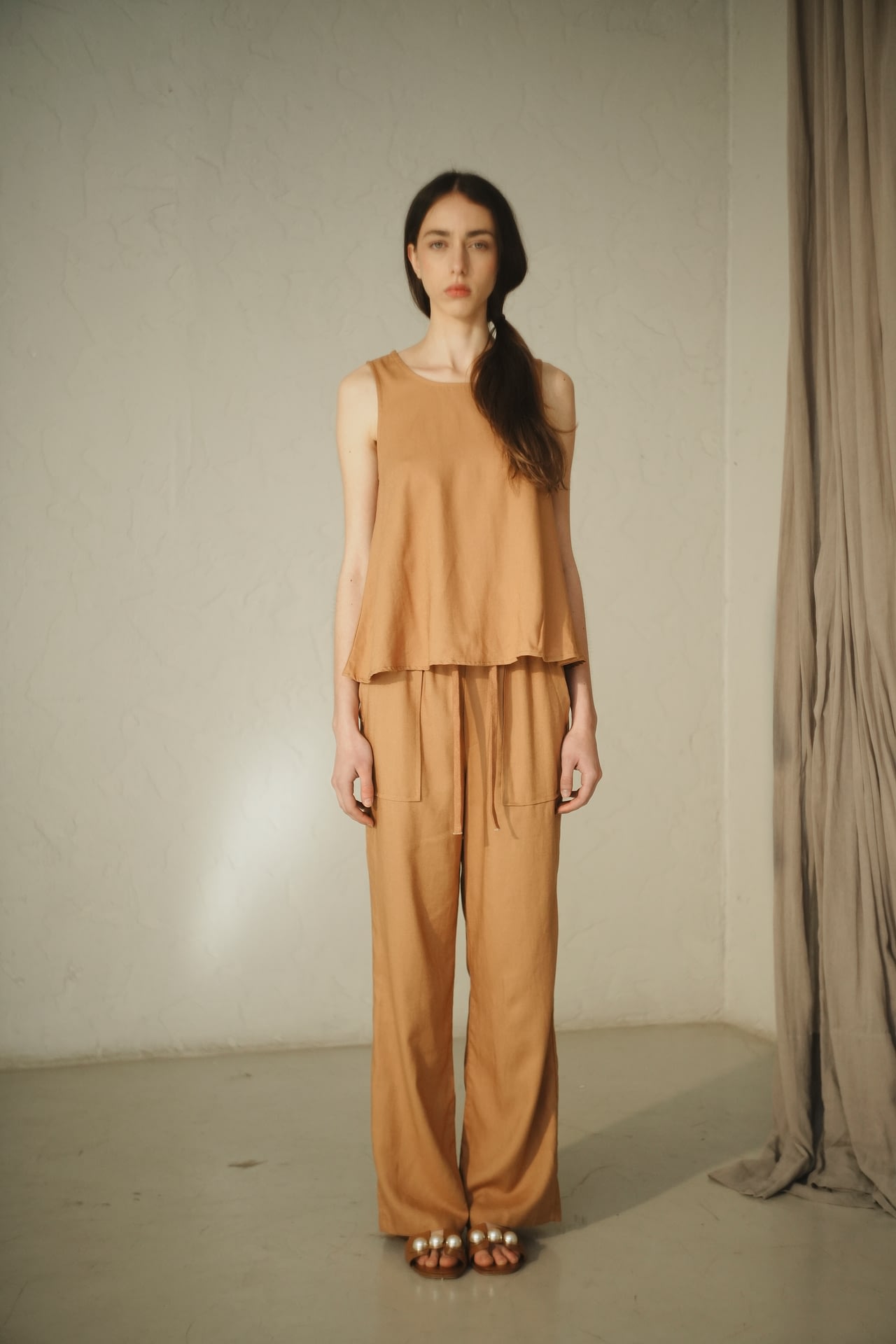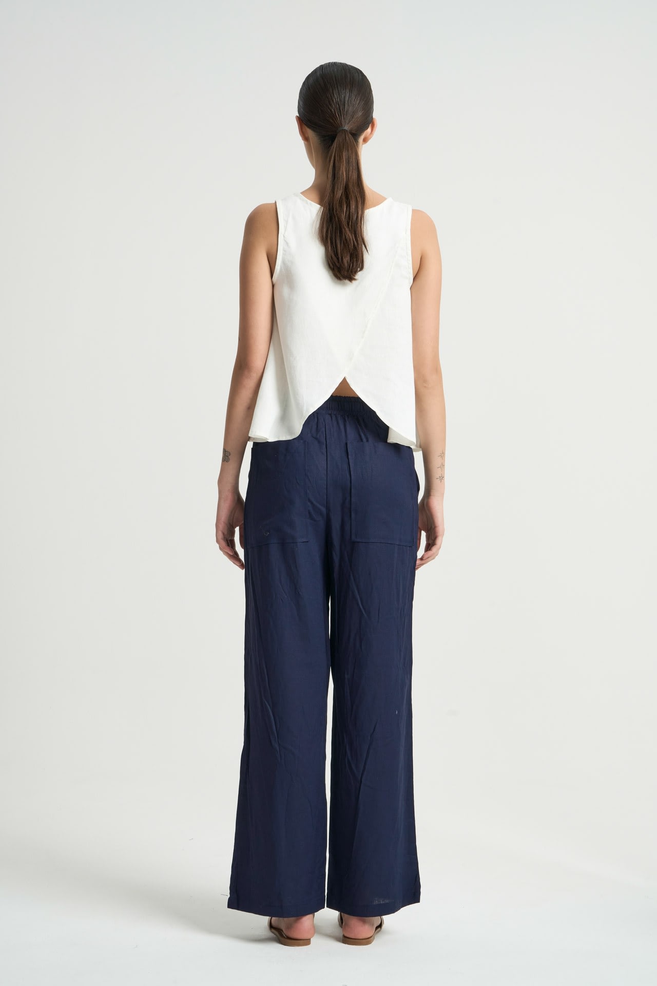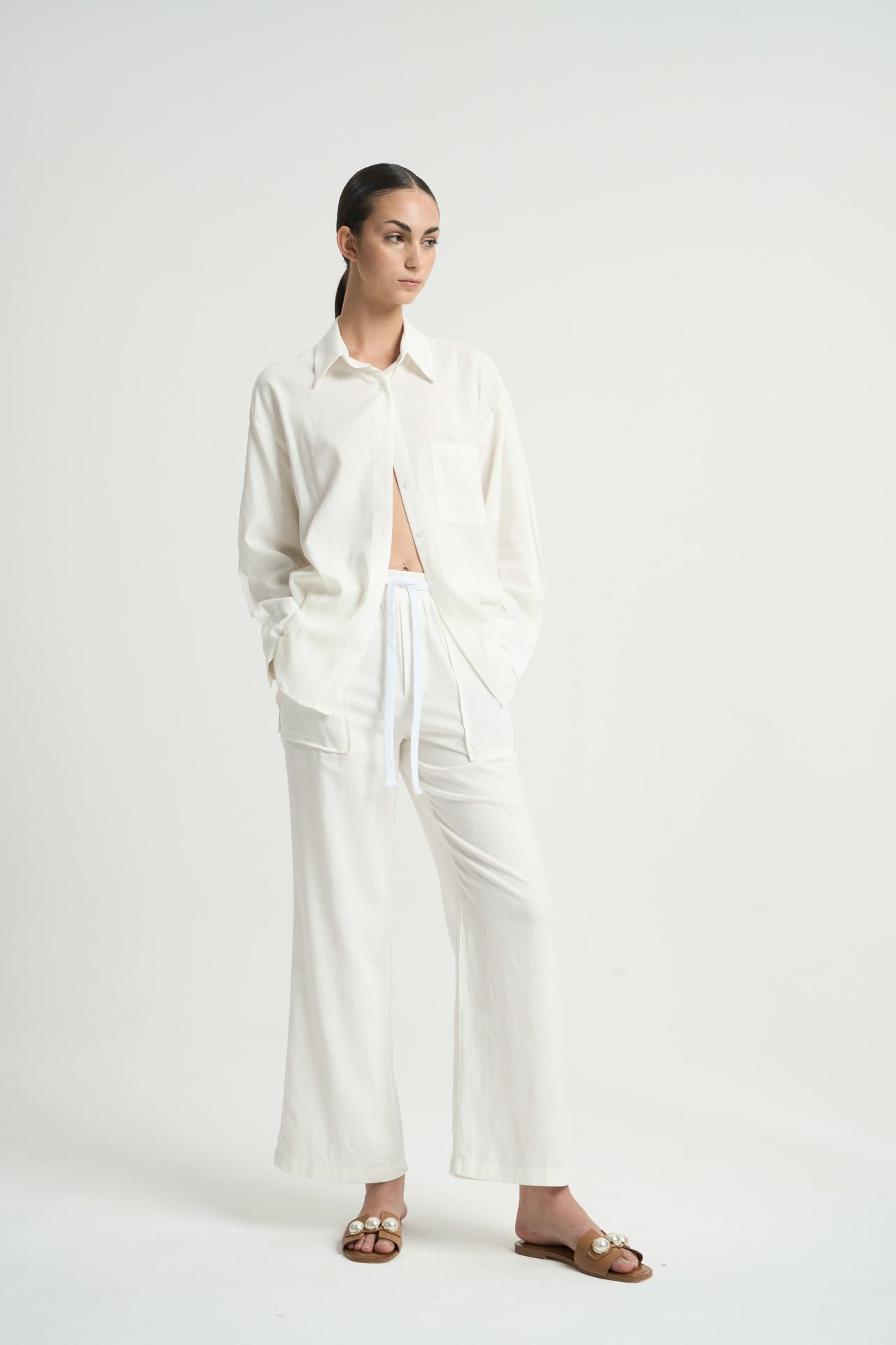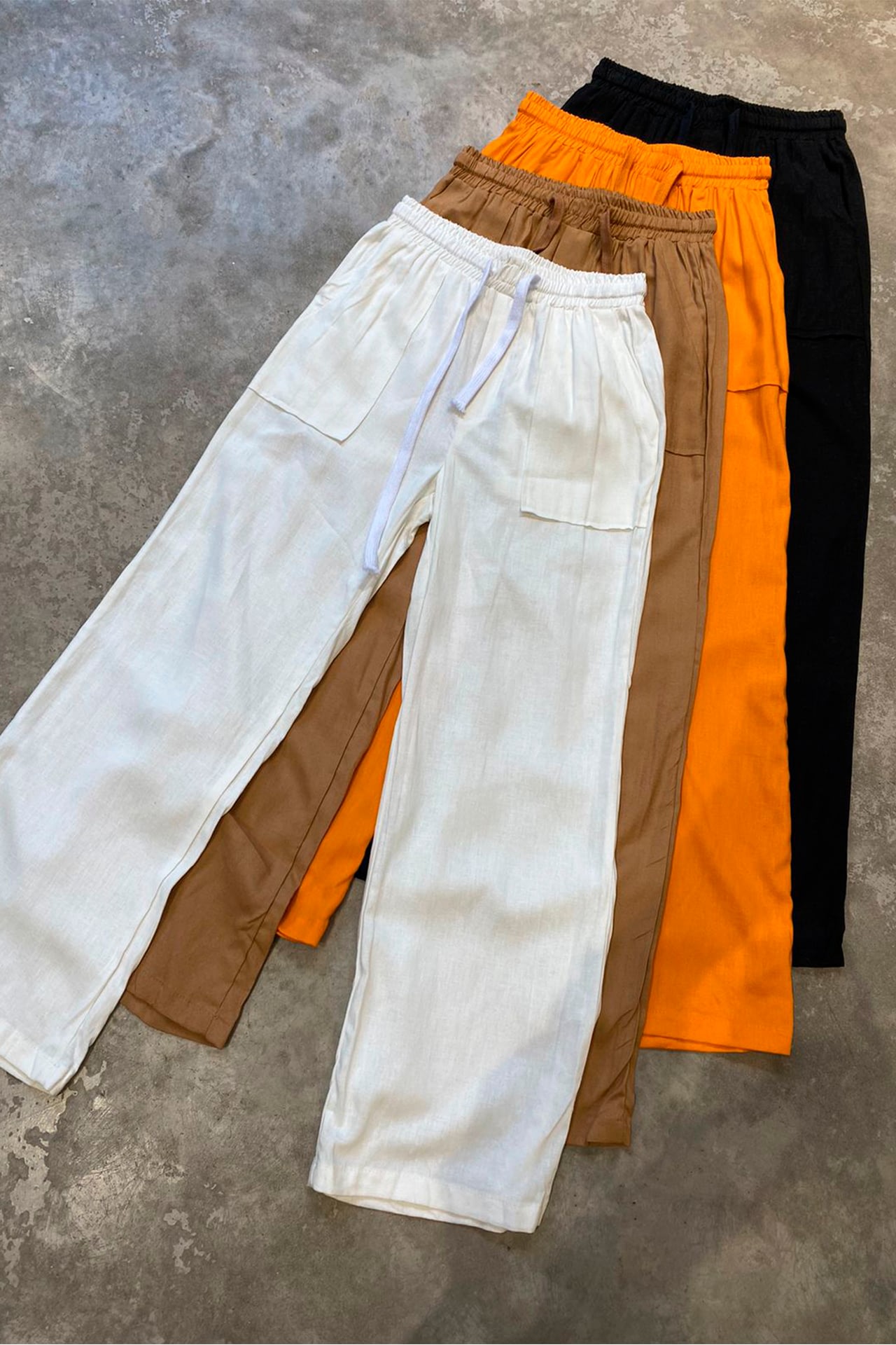 Pantalon de lino sastrero con elástico en la cintura, cordón ajustable y bolsillos en los laterales