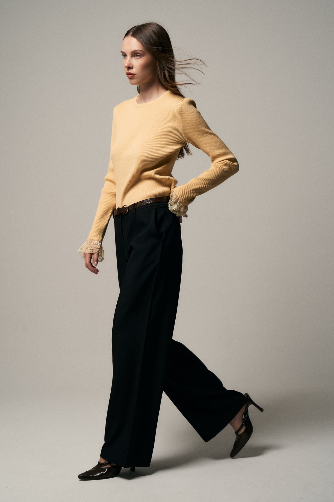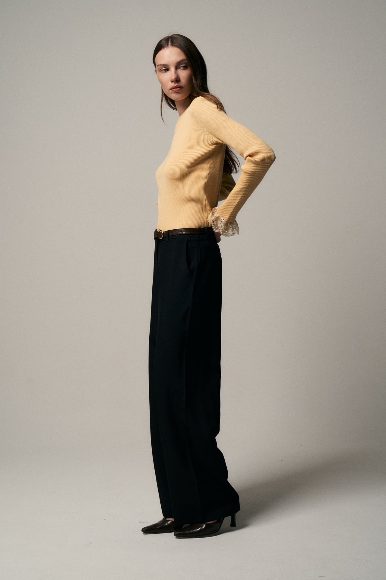 Pantalon sastrero (96% polister y 4% elastano) tiro medio. Con bolsillos laterales reales y bolsillos chinos traseros. Con cierre, boton y gancho delanteros. Incluye cinto con textura de cocodrilo.
