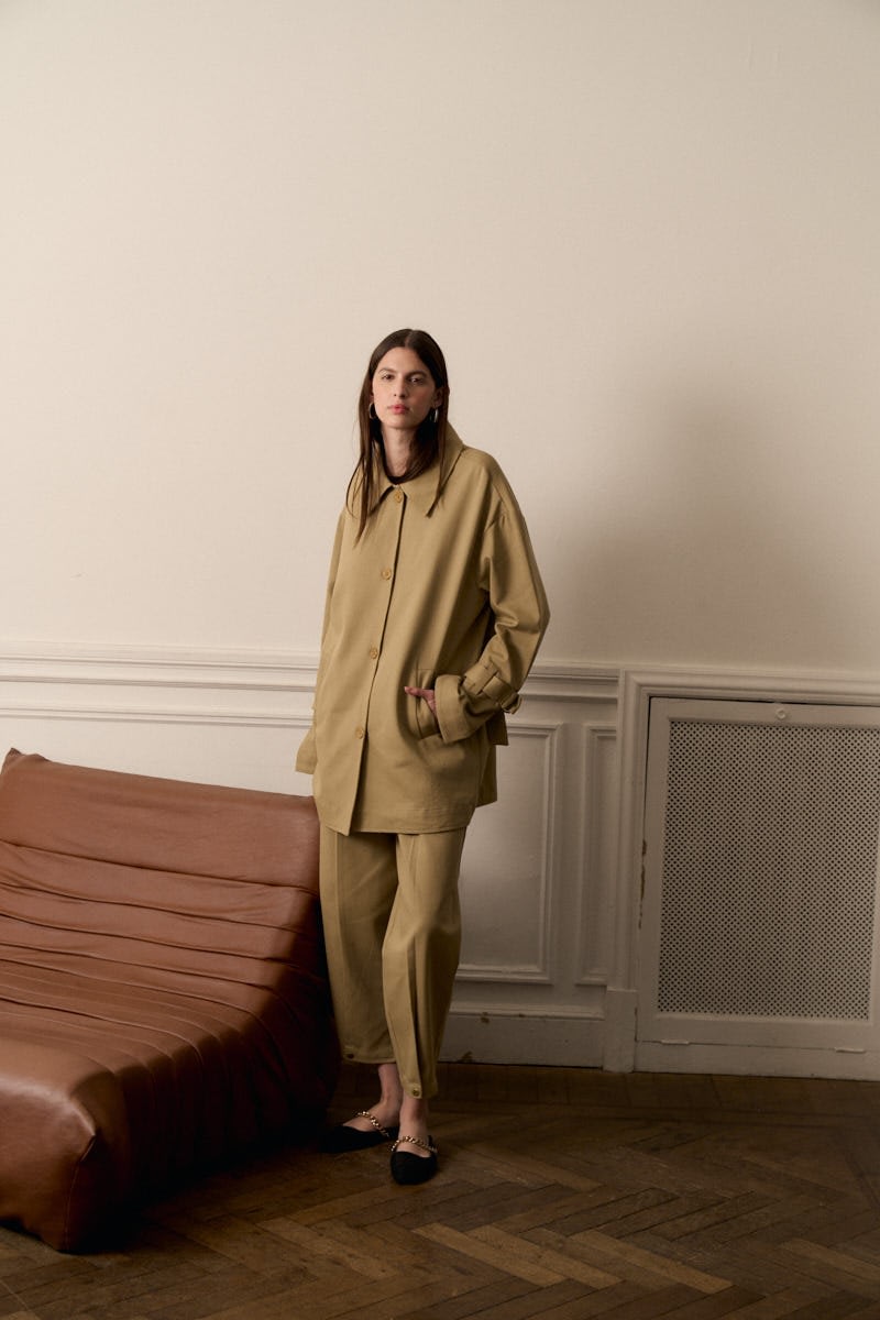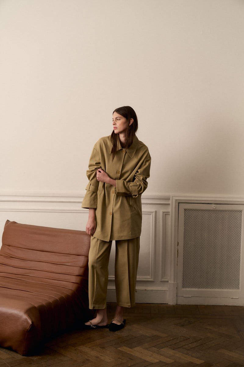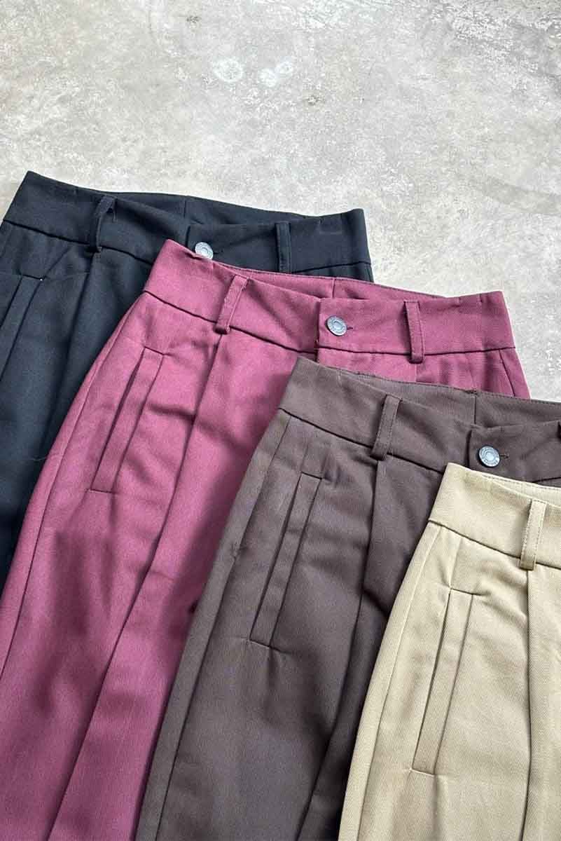 Pantalon de gabardina estilo recto con boton de broche