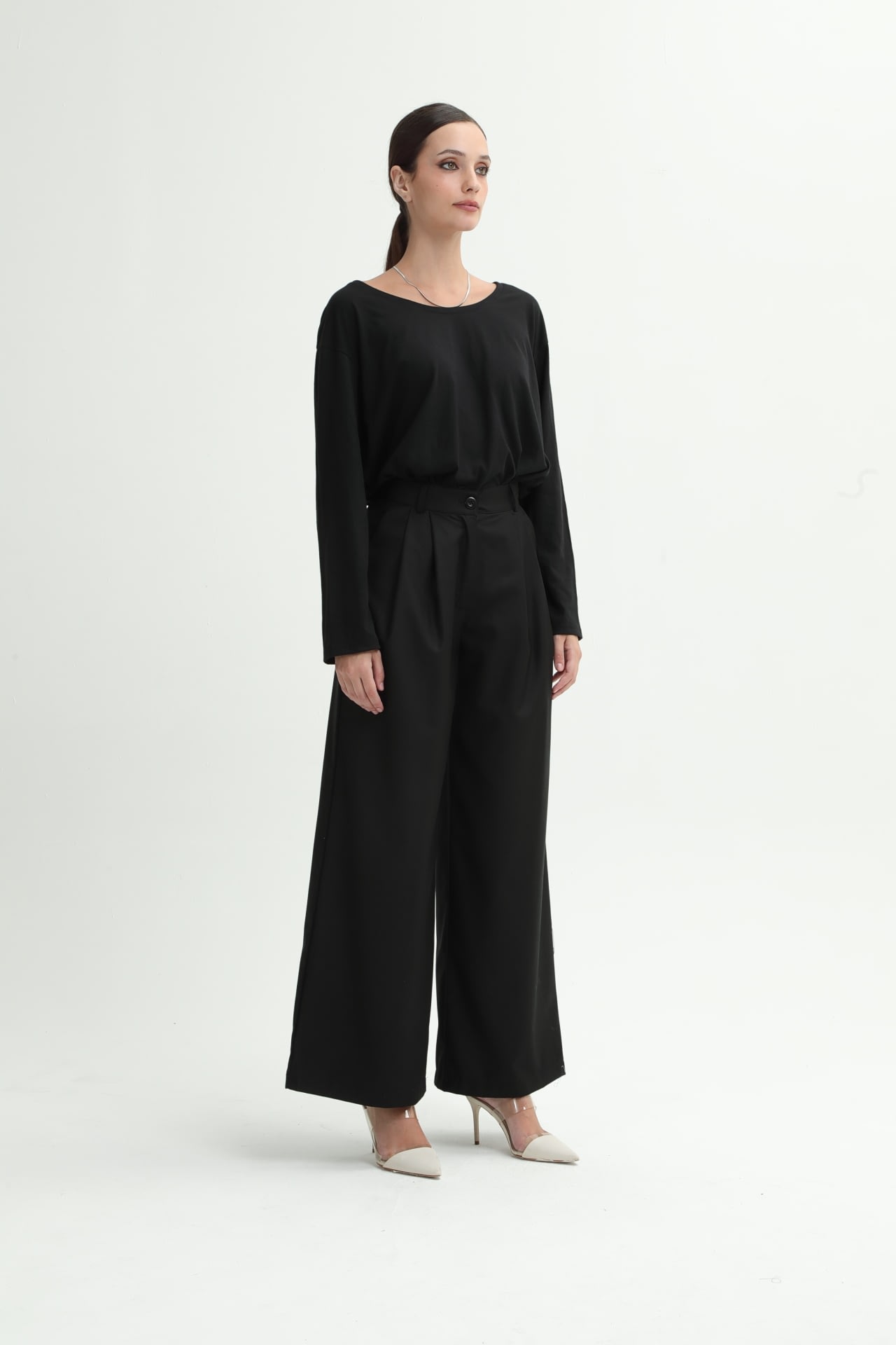 Pantalón sastrero pesado premium texturizado wide leg con bolsillos traseros falsos. *Combina con el chaleco y blazer Roger.