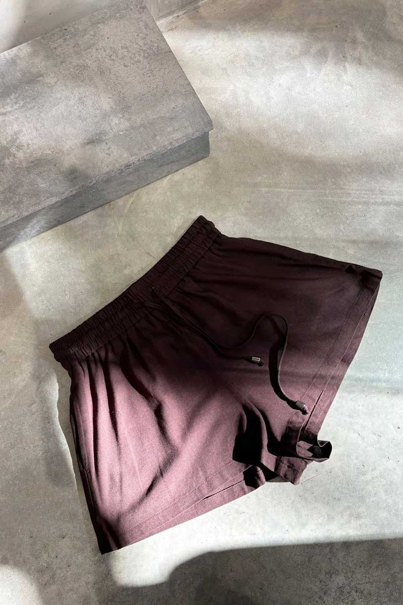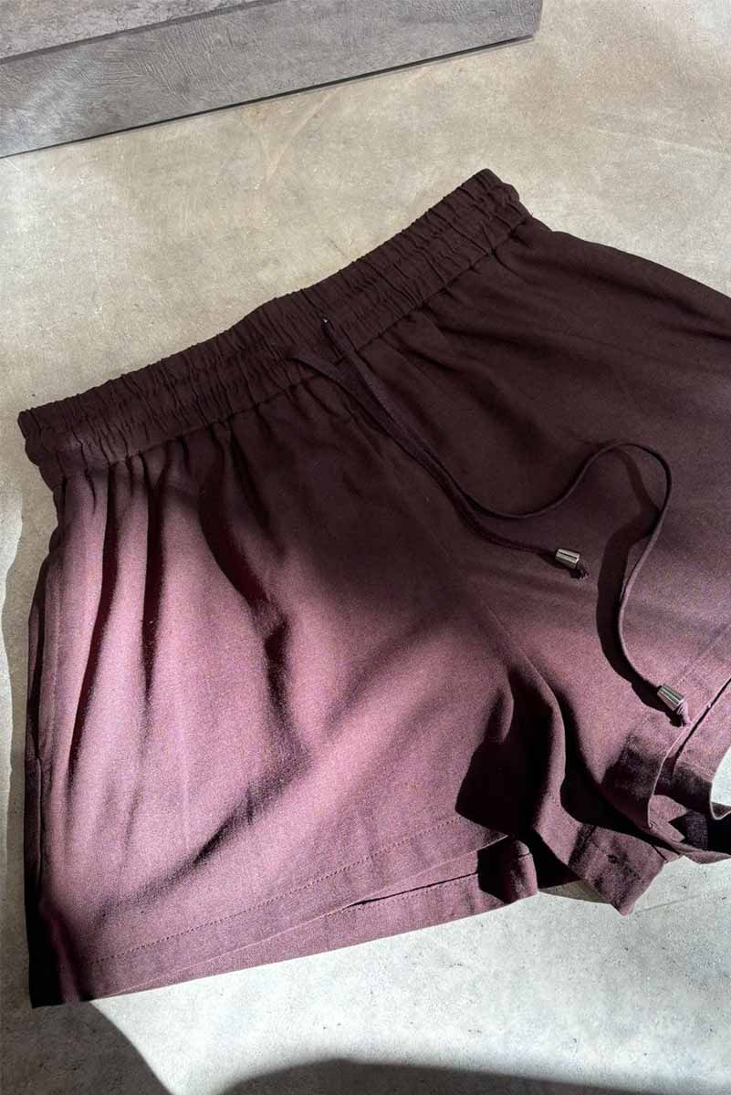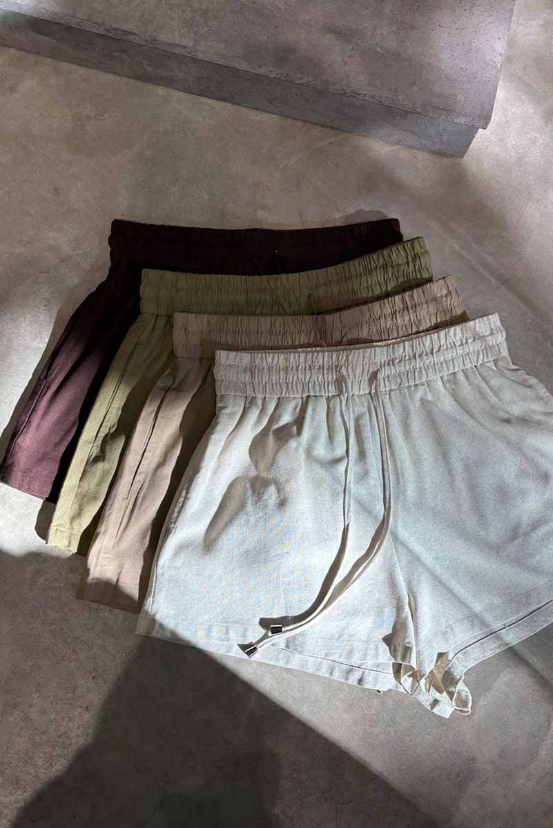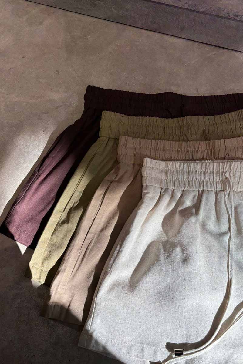 Short de lino con cintura elastizada y cordón ajustable. 70% Viscosa 30% Lino